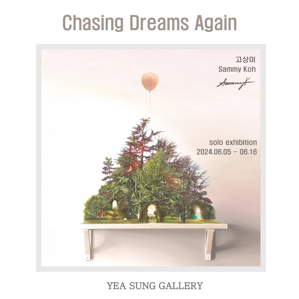 전시 개요 OVERVIEW 예성화랑에서는 [2024.06.05 – 06.17] 고상미작가의 한국 첫 개인전을 개최한다. 미국에서 거주하고 있는 고상미 작가는 머나먼 타국에서의 삶을 살아가면서 캘리포니아의 아름다운 풍경을 찾기 시작하였다. 그곳에서 찾아낸 공간과 빛은 휴식이기도 하고 꿈을 향해 달려나가는 원동력이 되기도 한다. 자연에서의 심비로움을 작품에 고스란히 담아주었고 그 풍경들을 그려낸 작품은 어느 순간 작가의 마음속 공간을 대변해 준다. 마치 조물주가 된 것처럼, 어느 순간 그녀의 머릿속에서 그곳에 머물렀었던 기억을 떠올리며 자연과 미래의 긍정적인 희망이 담아 작품을 완성해 나간다. 이번 전시를 관람해주시는 모든 분들도 작품과 같이 희망에너지를 꺼내보시고 꿈을 회복하시는 시간이 되었으면 합니다.