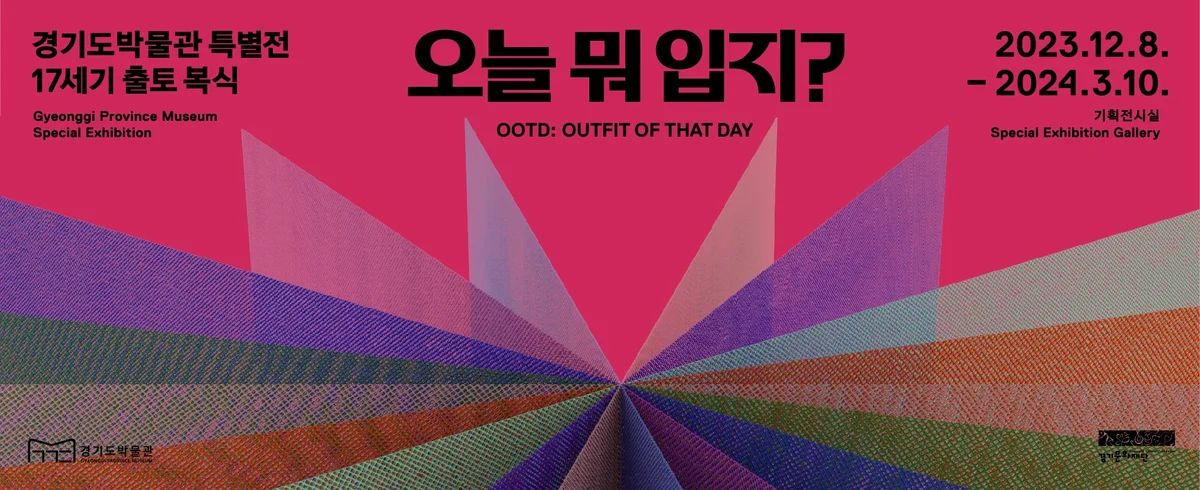 전시 특별전시 특별전시 출토 복식 특별전 《오늘 뭐 입지? OOTD: Outfit Of That Day》 기간 2023-12-08(금) ~ 2024-03-10(일) 장소 1F 기획전시실 기획 정윤회 주최주관 경기문화재단 경기도박물관 2023 경기도박물관 출토 복식 특별전 《오늘 뭐 입지? OOTD: Outfit Of That Day》 전시 기간: 2023. 12. 8. - 2024. 3. 10. 전시 장소: 경기도박물관 1층 기획전시실 일부(300㎡ 상당) 전시 유물: 심연 묘 출토 단령 등 30여 점 주최·주관: 경기문화재단 경기도박물관 수어 안내 옷을 고르는 것으로 하루를 시작합니다. 잠에서 깨어나면 밤사이 입었던 옷을 벗고 갈아입을 옷을 고릅니다. 내 취향과 오늘의 기분이 선택의 범위를 만들고, 사회적 규범과 현실적 제약이 그 폭을 좁혀줍니다. 오늘 날씨와 오늘 할 일, 만날 사람을 생각하고 오늘의 옷을 고릅니다. 하루를 시작하는 이 선택에는 ‘나’와 ‘오늘’ 그리고 ‘사회’가 담겨 있습니다. 이번 전시에서는 청송 심씨 사평공파 문중이 기증한 조선시대 복식을 소개합니다. 4백 년간 무덤에서 잠들어 있었던 2백여 점의 유물은 17세기 사대부가의 복식문화를 생생하게 보여줍니다. 조선시대 무덤 안에서 발견되는 옷은 죽은 이가 살았던 때 입던 것입니다. 간혹 배우자나 친척의 옷이 발견되는 경우가 있지만, 요즘처럼 따로 옷을 지어 입히지는 않았던 듯합니다. 그래서 무덤 속 옷가지 하나하나에는 한 사람이 살아온 길과 특별한 날의 기억이 고스란히 담겨 있습니다. 오랜 시간을 건너온 유물은 많은 이야기를 담고 있습니다. 바느질 방식을 바꿔가며 솜씨 좋게 모양을 낸 각종 옷에서는 정갈한 마음을 느낄 수 있습니다. 곱게 꼰 명주실을 가로세로 짜 맞추어 만든 무늬는 소박하다는 말로 단정할 수 없는 조선의 멋을 보여줍니다. 옛것을 익히고 그를 통해 새것을 아는 것이 배움의 시작이라고 말합니다. 이 옷들은 오늘날 복식의 바탕이면서, 동시에 앞으로 바뀌어 나갈 길을 보여주는 실마리이기도 합니다. 세상을 떠나는 날, 앞으로도 오랫동안 어둠 속에서 함께하려 골랐던 겹겹의 옷들은 아마도 삶에서 가장 중요한 ‘오늘의 옷’이었을 것입니다. 옷의 생김새와 문양은 낯설지만, 그 안에 담긴 생각과 삶의 흔적은 지금의 것과 다르지 않습니다. 빛바랜 옷은 삶과 세상의 이야기를 가득 담은 채로 익숙한 질문에 답합니다. ‘오늘 뭐 입지?’ <전시 전경> 진행중인 전시 보기 상설전시 실감영상실 《경기사대부 잔치로의 초대》 기간 2020-08-04(화) ~ 장소 1F 실감영상실 온라인전시 상설전시실 VR 온라인 전시 기간 2020-12-10(목) ~ 장소 B1 경기도박물관 상설전시실 상설전시 선사·고대실 기간 2020-08-04(화) ~ 장소 1F 선사·고대실 상설전시 고려·조선실 기간 2020-08-04(화) ~ 장소 2F 고려·조선실 온라인전시 의衣 문紋의 조선 #1 남녀의 덧옷, 배자(背子) 기간 2023-12-01(금) ~ 장소 B1 - 온라인전시 의衣 문紋의 조선 #4 공무용 예복, 흑색 단령(團領) 기간 2023-12-01(금) ~ 장소 - 특별전시 〈광복 80-합合〉 특별전 제3부 《오세창: 무궁화의 땅에서》 기간 2025-11-27(목) ~ 2026-03-08(일) 장소 1F 기획전시실 특별전시 〈광복 80-합合〉 특별전 제3부 《오세창: 무궁화의 땅에서》 기간 2025-11-27(목) ~ 2026-03-08(일) 장소 1F 기획전시실 특별전시 광복 80 · 한일국교정상화 60주년 기념 경기도박물관 특별전《동양지사 東洋志士, 안중근 安重根 – 통일이 독립이다》 기간 2025-12-20(토) ~ 2026-04-05(일) 장소 1F 경기도박물관 1층 기증실 특별전시 경기도박물관 개관 30주년 기념 특별전 《性坡禪藝 성파선예: 성파스님의 예술세계》 기간 2026-02-10(화) ~ 2026-05-31(일) 장소 야외전시장 전시마루(지하1층) 특별전시 경기도박물관 개관 30주년 기념 특별전 《性坡禪藝 성파선예: 성파스님의 예술세계》 기간 202