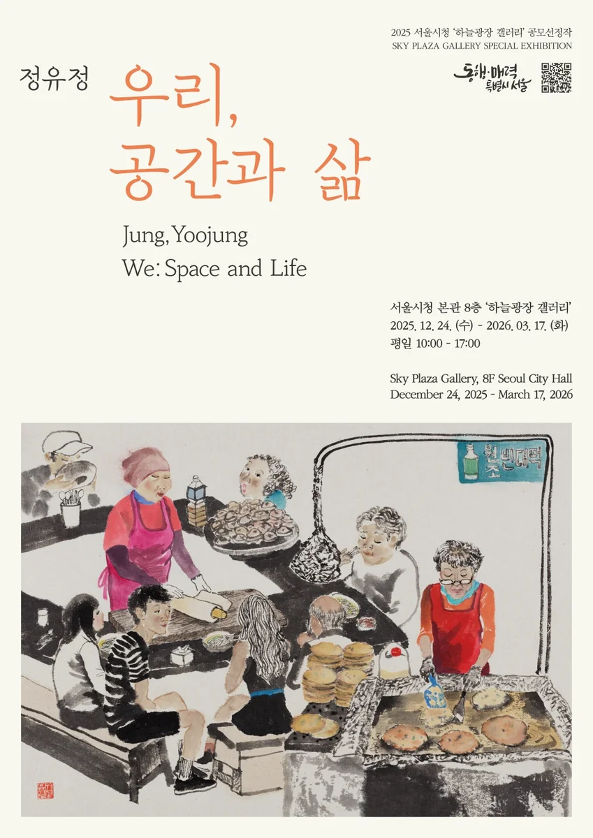 삶은 결코 가벼운 일이 아니지만, 그 안에는 언제나 웃음이 깃든다. 이번 전시는 사람이 살아가는 공간, 그리고 그 속에서 마주한 일상의 순간들로부터 비롯된 ‘즐거움(樂)’을 이야기한다. 정유정 작가에게 ‘즐거움’은 단순한 기쁨의 감정이 아니라, 마음이 자유로워지고 삶의 의미를 깨닫게 하는 깊은 체험이다. 이러한 생각은 그가 다양한 인물을 그려내는 작업 전반에 자연스레 스며들며, 인생에 대한 긍정적 시선과 유쾌한 온기의 바탕이 된다. 작가는 일상의 인물들을 통해 인간의 진솔함과 소박한 삶의 아름다움을 유쾌하게 그려낸다. 현실의 고단함 속에서도 미소를 잃지 않는 인물들의 표정은 삶을 지탱하는 긍정의 힘을 드러내며, 우리가 잊고 있던 삶의 본질을 일깨운다. 수묵담채의 단순한 선과 색으로 역동적인 움직임을 만들어내는 회화적 표현은 생에 대한 긍정적 태도와 고요한 마음가짐, 그리고 자연과 조화를 이루려는 순수한 의지에서 비롯된다. 인물의 표정과 동작에 담긴 ‘함께하는 즐거움’은 인간 존재의 진정한 아름다움이 어디에 있는지를 다시 생각하게 한다. 행복은 멀리 있는 것이 아니라, 이미 우리가 함께 살아가는 이 공간 속에 존재한다. 고단한 현실 속에서도 웃음을 잃지 않으려는 마음, 그것이야말로 인간 존재의 존엄이자 회복의 시작이다. 이번 전시는 그 웃음을 통해 삶의 본모습을 되찾고, 자연의 이치 속에서 스스로를 위로하는 ‘무한 긍정의 힘’을 발견하는 여정을 제안한다. *출처:서울시청