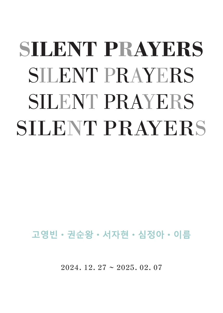 전시 개요 OVERVIEW 이번 “Silent Prayers” 전시는 기독교적 세계관을 바탕으로 한 다섯 작가의 신앙 고백을 담고 있습니다. 그들의 작품에는 넘어짐과 다시 일어섬, 슬픔 속에서 찾은 기쁨, 약함 속에서 발견한 강인함이 고스란히 드러나며, 모든 시선은 하나님의 사랑과 은혜로 향합니다. 이번 전시는 고영빈,권순왕, 서자현, 심정아, 이름(E Reum)등 다섯명의 작품들 속에 투영된 신앙 고백입니다. 언뜻 보기에 이들의 작품 세계의 공통점은 거의 없는 것처럼 보일 수도 있지만, 이들을 하나로 묶는 것은 기독교 세계관입니다. 2024년 12월, 은혜의 궁극적 선물인 예수 그리스도의 탄생을 묵상하며 생명의 풍요로움과 희망을 되새기는 경건한 예배와 찬양의 시간에 여러분을 초대합니다. 이 작품들이 전하는 고요한 기도와 깊은 묵상의 순간을 함께 나누시길 바랍니다. 고영빈 Cactus 116.8 x 80.3cm Acrylic on canvas 2020 권순왕 별 하나에 사랑과 60.6×72.7cm Acrylic on canvas 2024 서자현 When He Comes 61×72.7cm Mixed Media 2024 심정아 Snail-Eyewitness’s Shelter 300x300x145cm Mixed Media 천에 인두드로잉 2019 이름(E Reum) be ‘두 사람의 시선’ 100x67cm HDR Ultrachrome Archival pigment print on paper 2020