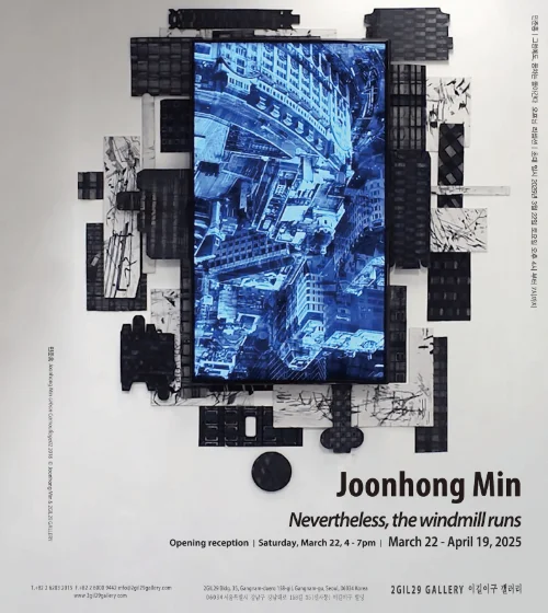 전시 개요 OVERVIEW Joonhong Min 민준홍 개인전 Nevertheless, the windmill runs | 그럼에도, 풍차는 돌아간다 March 22 – April 19, 2025 초대일시: 2025 년 3 월 22 일 오후 4시 전시기간 : 2025 년 3 월 22 일- 4 월 19 일 초대일시 : 2025 년 3 월 22일 토요일 오후 4 시 – 7 시 전시장소: 이길이구갤러리 2GIL29 GALLERY Exhibition location: 2GIL29 GALLERY 이길이구 갤러리 (Garosu-gil 35, Gangnam-daero 158gil, Gangnam-gu, Seoul) 서울특별시 강남구 강남대로 158 길 35 (신사동) 이길이구 빌딩 전시 대표문의: 02-6203-2015 민준홍 개인전 《Nevertheless, the windmill runs》: 그럼에도, 풍차는 돌아간다 이길이구 갤러리는 2025년 3월 22일부터 4월 19일까지 민준홍 개인전 《그럼에도, 풍차는 돌아간다》가 개최합니다. 이번 전시는 현대 도시의 불안과 미디어 소비의 역학을 탐구하는 자리로, 설치 작품, 평면 작업, 영상 등 다양한 매체를 통해 물리적 현실과 디지털 세계가 충돌하는 방식을 보여줍니다. 2014년 런던으로 이주한 이후, 민준홍 작가는 건축 자재, 공사 현장, 도시 풍경에서 영감을 받아, 도시에서의 불안감을 시각화하는 작업을 지속해 왔습니다. 점차 그의 관심은 가상과 현실이 교차하는 공간, 그리고 이를 통해 생성되는 왜곡된 시각적 경험으로 확장되었습니다. 전시 제목 《그럼에도, 풍차는 돌아간다》는 끊임없이 작동하는 현대 사회의 메커니즘을 은유합니다. 팬데믹 이후 더욱 가속화된 소셜 미디어, 광고, 알고리즘 기반 콘텐츠의 무한한 흐름은 민 작가의 작품 세계에 강한 영향을 주었으며, 디지털 시대의 정보 과부하 속에서 사실과 허구의 경계가 흐려지는 현상을 포착하는 계기가 되었습니다.민 작가는 이번 전시에서 건축 이미지를 파편화하고 왜곡하는 방식으로 사실주의에 도전하며, 다중 소실점과 과장된 변형을 활용해 익명의 인간과 물질적 요소가 결합된 하이브리드 풍경을 제시합니다. 이를 통해 기술과 미디어가 우리의 현실 인식을 어떻게 재구성하는지에 대한 질문을 던집니다. 전시에 등장하는 산발적인 배경과 무작위 형상들은 현대 사회의 과잉 생산과 소비 구조를 반영하며, 전통적 재료와 디지털 이미지가 충돌하는 작품들은 소비주의 문화의 모순을 드러냅니다. 민 작가는 독일 철학자 한병철의 『피로사회』에서 깊은 영향을 받았으며, 그의 작품 속에는 자본주의 사회의 신경증적 요소, 정보 과잉 속에서 마비된 비판적 사고와 피상성에 대한 통찰이 담겨 있습니다.특히 이번 전시에서는 디지털 왜곡과 물리적 텍스처를 결합한 조각, 설치, 영상 작업을 통해 빠르게 변화하는 디지털 트렌드와 지속적인 환경 문제 간의 긴장을 반영합니다. 작품 속에는 일회용 소비재, 보정된 셀카 이미지, 전쟁 보도 영상 등 현대적 시각 경험을 구성하는 다양한 요소들이 등장하며, 가상과 현실이 어떻게 얽혀 있는지 조명합니다. 이번 전시를 주목해야 하는 이유는 단순한 예술 감상을 넘어, 현대 사회가 기술과 결합하며 만들어낸 시각적 현실을 비판적으로 바라볼 기회를 제공하기 때문입니다. 관객들은 이 전시를 통해 디지털과 물리적 세계가 중첩되는 현대적 환경을 새로운 시각으로 경험하고, 우리가 일상에서 마주하는 시각적 정보와 현실의 관계를 성찰할 수 있는 계기를 갖게 될 것입니다. 이길이구 갤러리에서 열리는 《그럼에도, 풍차는 돌아간다》는 현대 사회의 혼돈과 역설적 조화를 반영하는 중요한 시각적 기록으로서, 동시대 문화와 기술이 만들어낸 새로운 풍경을 만들어내는 기회를 제공합니다. Joonhong Min 민준홍 Defaced Vitrine 2024 Acrylic and Pen Drawing on Wood panel 91.5 x 61 cm 작가 소개 민준홍 (B.1984) 작가소개 서울에서 태어난 민준홍(1984년생)은 서울대학교 미술