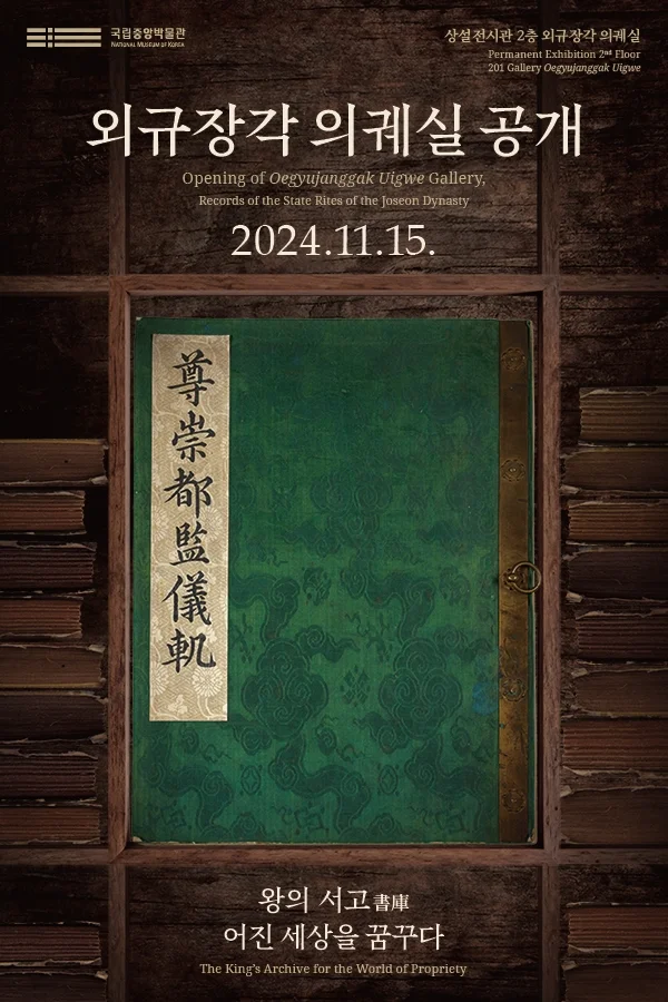 1866년 강화도를 침량한 프랑스 군대가 가져갔다가 2011년 돌아온 외규장각 의궤를 전시하는 공간이다. 외규장각은 정조正祖(재위 1776-1800)의 명으로 강화도에 설치되었던 왕실의 중요 기록물을 보관하던 장소이며, 의궤는 왕실의 중요 행사를 세세하게 기록한 책이다. 외규장각 의궤는 대부분 왕이 보던 ‘어람御覽’용 의궤이고, 세상에 단 1부밖에 전하지 않는 유일본 의궤가 29책이 포함되어 있다. 전시실은 마치 외규장각에 있는 듯 ‘왕의 서고’를 재현하고, 외규장각 의궤의 아름다운 외형뿐 아니라 촘촘한 기록으로 조선 왕실의 중요 의례를 이해할 수 있도록 구성했다. 또한 어려운 의궤 속 내용을 지금의 언어로 더욱 친숙하게 접할 수 있는 ‘디지털 서고書庫’가 마련되어 있다. 외규장각 의궤실은 3개월에 한 번씩 전시품을 교체한다.