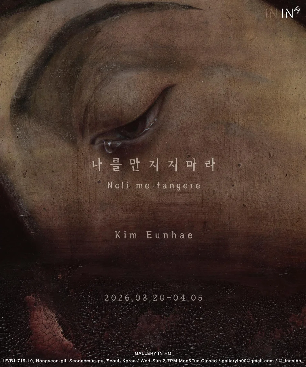작업실 계단을 오르내리다 죽은 채 놓여 있던 잠자리 한 마리를 보게 된 경험은, 남겨진 물질과 기억을 오래 쥐어 보게 했다. 전시는 장 뤽 낭시의 『나를 만지지 마라』에서 언급되는 장면을 사유의 단서로 삼아, 붙잡을 수 없음과 바라봄 사이에서 생겨나는 관계의 긴장을 그려낸다. 얇은 순지 위에 타고 남은 재와 안료를 쌓고 균열을 일으키며, 흔들리지만 이어지는 믿음의 성질 속에서 인간이 만들어내는 ‘허술한 신성함’을 드러낸다. *‘나를 만지지 마라(Noli me tangere)’는 부활한 예수가 막달라 마리아에게 건넨 말이다. 낭시는 이 장면을 접촉의 거부가 아니라, 부재 속에서도 지속되는 관계의 가능성으로 읽어낸다. 참여작가: 김은혜 출처: 갤러리인
