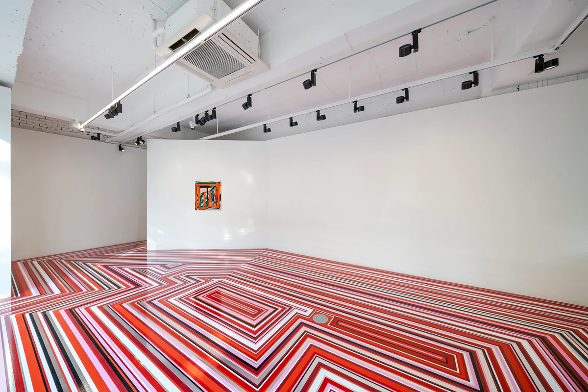 전시 개요 OVERVIEW 갤러리바톤은 국제적 명성의 다양한 장르의 작가들로 기획한 그룹전, 《Off the Beaten Track(당신이 가보지 못했던 길)》을 2022년 5월 18일부터 6월 18일까지 개최한다. 유행은 다양한 사회 문화적, 그리고 경제적 요인과 맞물려 있다. 계절과 지역에 따라 특정한 시기에 발생하는 해풍과 조류가 초창기 대륙 간 무역을 가능하게 한 원동력이었듯이, 한 시기를 풍미하고 소멸되는 유행의 존재는 우리 각자의 취향을 발견하게 하고, 경제에 활력을 불어 넣으며, 특히 항상 새로움을 추구하는 인간의 본성에 부합한다. 기술과 IT 문화의 발달로 전지구가 점점 동일 생활권에 가까워진 현재에는 그 유행의 주기가 점점 짧아지는 것을 목격할 수 있다. 아니, 어떤 면에서는 더 이상 지배적인 유행이 없다고 해도 과언이 아닐 것이다. 더 이상 모든 사람들이 동시에 나팔바지를 입거나, 디스코에 심취하거나, 화려한 캐스팅의 할리우드 대작에 현혹되지 않는 시대이다. 로버트 프로스트는 자신의 유명한 시 〈가지 않은 길(The Road Not Taken)〉에서 산책하면서 느낀 감상에 대해 담담히 이야기한다. 고백록과도 같은 전원풍의 시는 그 평이한 어조와 달리 매일의 삶에서 마주하는 선택과 그것이 가져다주는 인생의 향로에 관한 심오한 주제와 맞닿아 있다. 낯선 도시를 여행할 때 제한된 시간 안에서 방문지를 선택해야 함은 동시에 다른 공간을 포기해야 함을 뜻한다. 이와 같이 결국 한 사람의 인생은 그 사람이 취해 온 선택의 합이라고도 할 수 있고 비가역적인 시간의 성질은 이러한 선택의 결과를 되돌릴 수 없기에, 유행의 존재는 선택을 강요받은 우리에게 퇴로와 안도감을 주며 후회의 가능성을 경감해 준다. 반면, 유행과 취향은 대척점에 놓여 있다. 미술 감상이란 시각적으로 표현되는 다양한 작가의 목소리에 귀를 기울이고 내재화시키는 과정이기에, 다양성이 존중받아야 하는 미술계에서 유행이란 그다지 달가운 존재는 아니다. 특히, 패션, 디자인 등 다른 영역과의 컨버전스가 일상화된 상황에서는 매체를 통해 침투하는 특정한 사조와 경향의 영향을 쉽게 받아들이게 된다. 결국, “큐레이팅”이라는 진부하게 들리지만 전시에 있어 가장 중시되어야 하는 행위에 다시 주목할 수밖에 없다. 한 작가와 작품이 왜 소개되어야 하고 그것이 커뮤니티에 어떠한 의미가 있는지에 대한 깊은 성찰은 전시에 깊이를 더하고 작가와 관람자 모두를 존중하는 중요한 행위이다. 이번 전시에서 소개하는 여섯 명의 작가들은 바톤이 오랫동안 주의 깊게 살펴보며 그 행보에 집중해 왔던 작가들이다. 페인팅, 설치, 비디오 등 다양한 장르의 작가들은 그 독창성과 작품을 통해 발현되는 메시지와 심미성으로 서구의 평단과 대중으로부터 높은 평가를 받아왔고, 이번 전시를 위해 특별히 준비한 신작으로 참여한다. 바톤의 이정표를 따라 뜻하지 않게 들어선 길에서, 새로운 작가와 작품을 맞이하는 설렘과 차원 높은 고양의 감흥을 누리기를 바란다. 사선으로 캔버스를 가로지르는 패턴과 이웃한 다양한 색면들을 배경으로 두툼한 주황색 선들이 부유하듯 채색되어 있는 맷 코너스(b. 1973, USA)의 〈Ardent Partner〉(2022)는 기하학적인 형식과 감각적인 분위기를 구현한다. 적층 구조로 발현된 색들이 창조하는 공간감과 색 선들이 교차하며 캔버스에 부여하는 형식미는, 순수 추상의 영역에 창의적으로 접목한 미니멀한 구성에 대한 작가의 의도를 음미하게 한다. 마치, 색유리와 다양한 철골 구조로 여러 겹 중첩된 외부의 정경을 내다보는 듯한 느낌은 입체적으로 표현된 흩뿌려진 점들과 결합하여 캔버스 전반에 생동감 넘치는 역동성을 가져온다. 아르누보 시대의 광고나 디자인 이미지를 차용하여 새로운 맥락을 창조하는 알렉스 도르도이(b. 1985, UK)는 이번 전시를 통해 색감과 구도에 따라 상반된 분위기를 자아내는 신작 두 점을 선보인다. 〈The Instinct of Flight〉(2022)는 먹구름이 낀 하늘을 배경으로 티 테이블이 놓인 창가를 멜랑콜리적이고 낭만적으로 묘사한다.