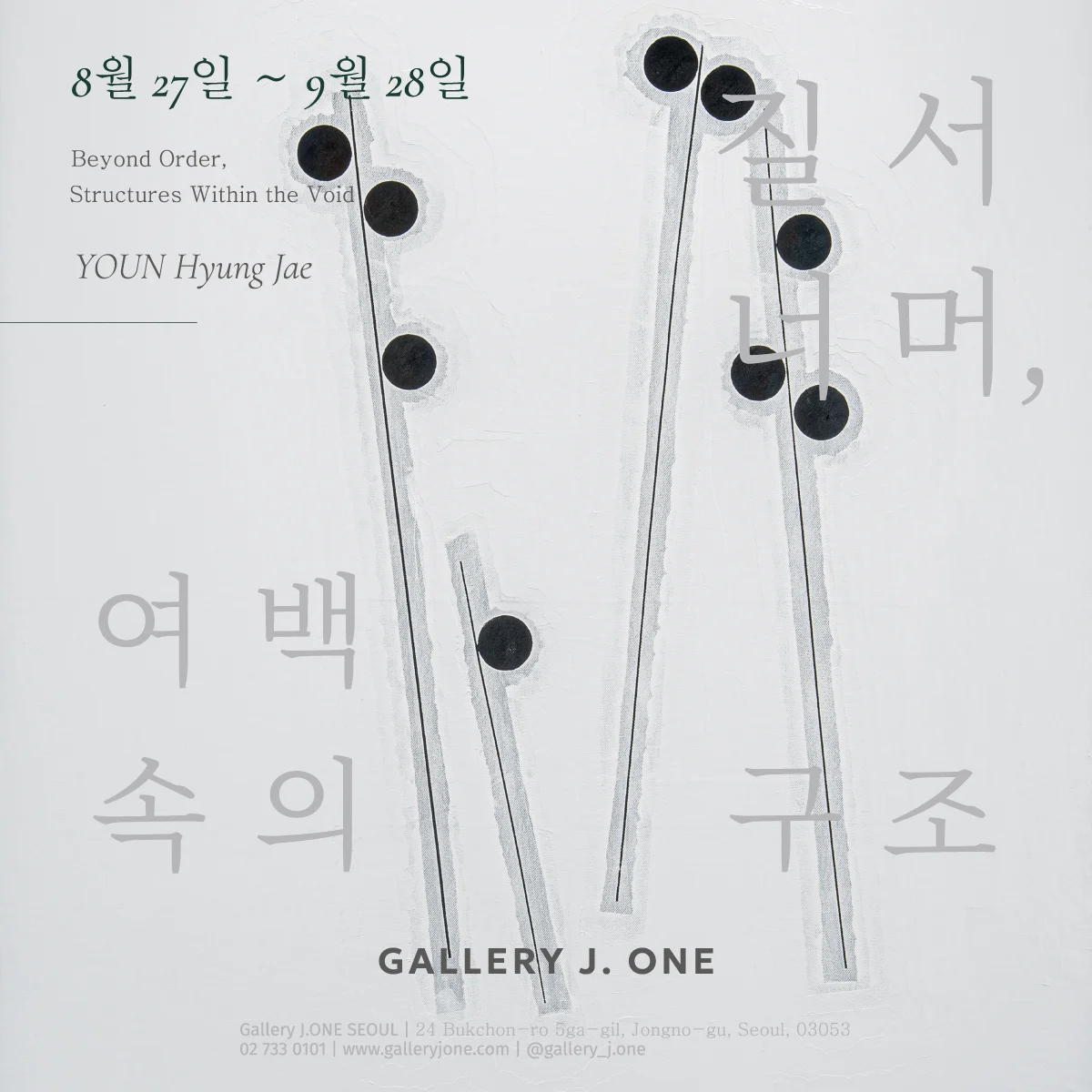 전시 개요 OVERVIEW | SEOUL | 서울 종로구 북촌로 5가길 24 | 02-733-0101 갤러리 제이원은 2008년 개관 이후 17년간 동시대 작가들을 발굴하고 다양한 전시를 이어오며 한국 현대미술의 흐름을 확장해왔습니다. 2025년, 서울 북촌에 새로운 공간을 열며 세계 미술의 흐름과 연결되는 글로벌 플랫폼으로서의 역할을 한층 더 강화하고자 합니다. 앞으로 더욱 폭넓은 전시를 선보이며 더 많은 작가와 관객을 만나는 여정을 시작합니다. 개관전시 《질서 너머, 여백 속의 구조》는 윤형재 작가의 초대전으로, 점·선·면과 여백이 만들어내는 균형과 리듬을 탐구합니다. 그의 화면에는 음악처럼 흐르는 리듬과 보이지 않는 긴장이 담겨 있으며, 감상자는 ‘비어 있음’이 단순한 공백이 아니라 사유와 호흡을 불러오는 또 하나의 구조임을 경험하게 됩니다. 작가에게 여백은 멈춤이 아니라 새로운 관계가 태어나는 자리입니다. 점과 선은 박자를 새기는 기호가 되어 화면을 이끌고, 그 흐름 속에서 우리는 ‘보이는 것과 보이지 않는 것 사이’에 숨어 있는 이야기를 읽어내게 됩니다. 이번 전시는 초기의 백색 회화의 흔적부터 최근의 구조적 회화에 이르기까지 작가가 탐구해온 사유의 흐름을 엿볼 수 있는 자리입니다. 동양적 여백의 감수성과 근대적 미의 조화를 담은 그의 작품은, 화려한 과잉보다 본질을, 빠른 속도보다 깊은 호흡을 지향하는 갤러리 제이원의 예술 철학과 깊이 공명합니다. 직접 작품 앞에 서서, 여백 속에 스며 있는 울림과 리듬을 느껴보시길 바랍니다.