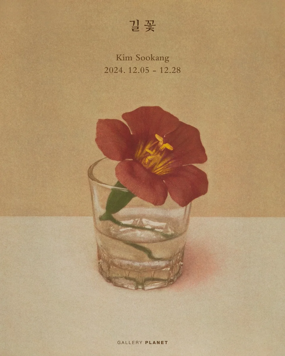 전시 개요 OVERVIEW 갤러리 플래닛은 오는 12월 5일부터 12월 28일까지 사진작가 김수강의 개인전 <길 꽃>을 개최합니다. 이번 전시는 매일 스쳐 지나치는 사소한 풍경과 사물 속에서 발견한 작은 존재들의 고유한 아름다움을 조명하며, 들꽃을 통해 생명의 흐름과 자연의 깊이를 탐구한 작가의 독특한 시선을 담고 있습니다. 특히 이번 전시는 김수강의 작품집 <그것다운>(난다출판사, 2024)의 출판을 기념하여 열리는 특별한 자리로, 책 속에 실린 들꽃 사진과 그 작업의 과정을 가까이 만날 수 있는 기회를 제공합니다. 김수강 작가는 19세기 전통 인화 기법인 ‘검 바이크로매트 프린트(Gum Bichromate Print)’를 통해 사진에 회화적 질감을 더한 작품을 선보입니다. 이 기법은 고무액과 수채화 물감을 혼합해 감광과 씻어내기를 반복하며 작품을 완성하는 노동집약적인 방식으로, 종이에 스며든 물감이 부드럽고 따뜻한 질감을 더합니다. 이러한 과정을 통해 완성된 사진은 회화적인 톤과 독특한 질감을 지니며, 디지털 인화 방식으로는 구현할 수 없는 깊이와 감성을 선사합니다. <길 꽃> 시리즈는 작가가 매일 오가는 길 위에서 피고 지는 들꽃들을 관찰하며 시작되었습니다. 소리 없이 피어나고 사라지는 들꽃들은 화려하지 않지만, 그 자체로 생명력과 고유한 존재감을 지닙니다. 김수강은 이러한 들꽃들을 느리게, 오래 들여다보며 작업에 담아내었고, 이번 전시는 그 성찰의 결과를 오롯이 선보이는 자리입니다. 그는 “작업은 작은 사물들을 느리게, 깊이 들여다보는 일”이라고 이야기하며, 관객들에게 일상의 순간을 새롭게 발견할 기회를 제공합니다. 이번 <길 꽃> 전시는 김수강의 작품집 그것다운의 출판을 기념하는 동시에, 자연 속 사소한 존재들의 의미를 다시금 돌아보는 특별한 시간이 될 것입니다. 관객들은 이번 전시를 통해 일상의 사소한 풍경과 자연이 지닌 고유의 아름다움을 발견하며, 그 속에 담긴 따뜻한 성찰과 감동을 느낄 수 있을 것입니다.
