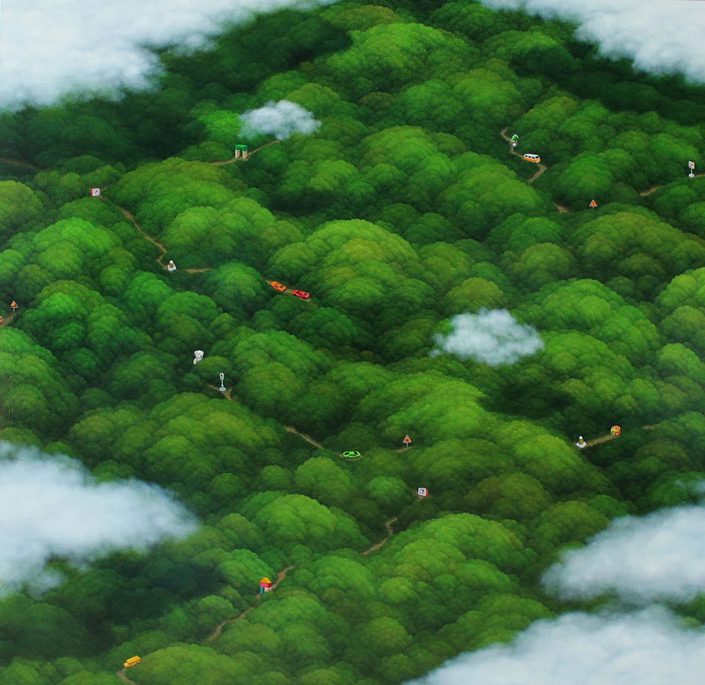 전시 개요 OVERVIEW 노혜영 작가는 ‘숲’이라는 공간을 한가지의 색을 통해 단계별로 표현하는데 집중하고, 추억과 경험에 대한 영감을 재해석하며 캔버스에 담아낸다. 작품에서 ‘FOREST(숲)’은 단순한 자연의 공간이 아니라, 작가 마음속에 자리 잡은 이상향이다. 작가의 숲은 매순간마다 떠오르는 이미지들과 조화롭게 구성되어 있으며, 작은 점들로 이루어진 그곳은 작가의 일상의 흔적들을 담아내고 있다. 작가의 작품을 눈으로 즐기다보면 위로와 치유를 받는 듯한 느낌을 갖게 된다. 그것은 작가가 어린 시절 힘들고 지칠 때 숲에서 마음을 달래며, 즐겁고 편안한 마음을 되찾게 되던 작가의 경험을 캔버스에 담아 관객에게 심리적 안정감을 고스란히 전해주기 때문이다. 또한 작품 속 등장하는 다양한 이동수단의 오브제는 현실의 괴로움과 고단함, 근심 걱정을 잊게 하고 어딘 가에 존재할 이상향을 찾아 떠나게 해주는 수단의 역할을 한다. 그것은 작가의 작은 소망이자 꿈으로 이어지는 연결고리로 표현되고 있고, 관객은 작가가 경험했던 감정을 공유할 수 있게 된다. 노혜영 작가는 “나의 작품이 독자들에게 각자의 마음속에서 위로와 치유를 찾는 시간이 되기를 소망한다. 또한 각자의 마음속에서 다시 행복한 마음을 느낄 수 있기를 바란다”고 전했다.