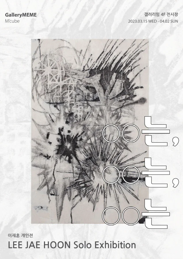 전시 개요 OVERVIEW 이재훈 Lee Jaehoon 이재훈은 2003년 중앙대학교 예술대학 한국화학과 졸업 동 대학원 한국화전공 졸업했다. 주요 개인전은 2008년 금호미술관 금호영아티스트 《UNMONUMENT》 전시를 시작으로 2017년 갤러리 아트사이드 《초원의 결투를 위해》, 2018년 스페이스 캔 《아!금수강산(禽獸江山)》, 2020년 아트센터 화이트블럭《이상한 정원 □ 희한한 동네》 등이 있고 단체전은 2019 금천예술공장 》, 금호미술관 《 금호영아티스트:16번의 태양과 69개의 눈》, 2018 전남국제수묵비엔날레, 2008 젊은모색2008-I AM AN ARTIST(국립현대미술관) 등에 참여했다. 레지던시는 2009 고양창작스튜디오 7기2010년 난지창작스튜디오 5기, 2019년 금천예술공장 10기 등에 참여했다. 수상은 2021 종근당 예술지상 수상, 2008 송은미술대상전 장려상, 2004 동아미술제 동아미술상을 수상하였다. 학력 2008 중앙대학교 일반대학원 한국화학과 졸업 2002 중앙대학교 예술대학 한국화학과 졸업 개인전 2023 ○○는,○○는,○○는, 갤러리밈, 서울 2022 조원술연습(造園術練習)(아트센터 화이트블럭 천안창작촌, 천안) 2021 조원술연습(造園術練習)-초식편(招式篇) (수애뇨339, 서울) 2020 이상한 정원 □ 희한한 동네 (아트센터 화이트블럭, 경기) 2018 아!금수강산(禽獸江山) (스페이스 캔, 서울) 2017 초원의 결투를 위해 (갤러리 아트사이드, 서울) 2013 ARTIFICIAL (갤러리 아트사이드, 서울) UNMONUMENT (Space Cottenseed, 싱가폴) 2009 NOBLE SAVAGE (인터알리아 아트 컴퍼니,서울) 2008 UNMONUMENT (금호미술관 금호영아티스트, 서울) 2006 FACE TO FACE (아트포럼뉴게이트, 서울) 외 2회 수상 2021 종근당 예술지상 수상 2021 서울문화재단 예술창작활동지원 선정 2020 경기예술창작지원 시각예술 개인전 선정 2019 경기문화재단 경기문예진흥공모사업 우수작가 창작지원 선정 2018 서울문화재단 시각예술부문 기금선정 2017 서울문화재단 시각예술부문 기금선정 2013 서울문화재단 시각예술부문 기금선정 2008 국립현대미술관 젊은모색2008 선정 제8회 송은미술대상전 장려상 인사미술공간 아카이브 포트폴리오 선정 2007 금호영아티스트 선정 2004 동아미술제 동아미술상 소장처 부산시립미술관, 서울시립미술관, 사비나미술관, 금호미술관, 국립현대미술관 미술은행, 대웅 제약, 한국야쿠르트, 프로 파워콤(주), 델(Dell)코리아, 한글과컴퓨터, 중외제약, 진서문화재단 전시개요 이재훈 작가는 전시를 기점으로 인간이 만들어온 사회, 제도와 그 속에 사회화를 통해 유지되는 질서에 대한 의문을 제기하는 작업을 지속해왔다. 이후 2019년부터 《이상한 정원 □ 희한한 동네(화이트블럭 아트센터, 2020)》, 《조원술연습 (造園術, Study for gardening), (수애뇨339, 2021)》 등을 통해 동서양의 차이를 넘어 컨템포러리 페인팅으로서의 한국화에 대한 고민과, 이를 글로벌 문맥 안에서 해독 가능한가라는 쉽지 않은 문제에 천착해오고 있다. 이처럼 권력의 지배논리를 교육환경에서 발견하고 문제 제기함으로써 사회적 개입을 시도했던 그의 이전 작업내용은 동양회화의 여러 조형원리의 분화와 유효성을 모색하고 연구하는 실천방식으로 선회해왔다. 개인전 《○○는,○○는,○○는(갤러리밈, 2023)》은 동양화의 선조(線條)의 원리를 새롭게 해석하여 그 대상성을 시간적 현상으로 연결하는 ‘재현된 추상’으로써의 방법론을 제시하고 있는 전시이다. 이는 현상의 감각을 물질성의 감각으로, 대상성을 물질로 전환하는 방식으로 추상에 접근하고 있다고 할 것이다. 이재훈은 이러한 추상에 접근하기 위해 벽화기법을 활용한 ‘재현된 추상’의 방식을 사용하고 있다. 기존의 벽화방식과 달리 무게의 한계를 벗어나면서 제일 빠르게 감각되는 물질감을 회화에 차용하기 위해 장지를 활용한 방식으로 활용하고 있다. 이
