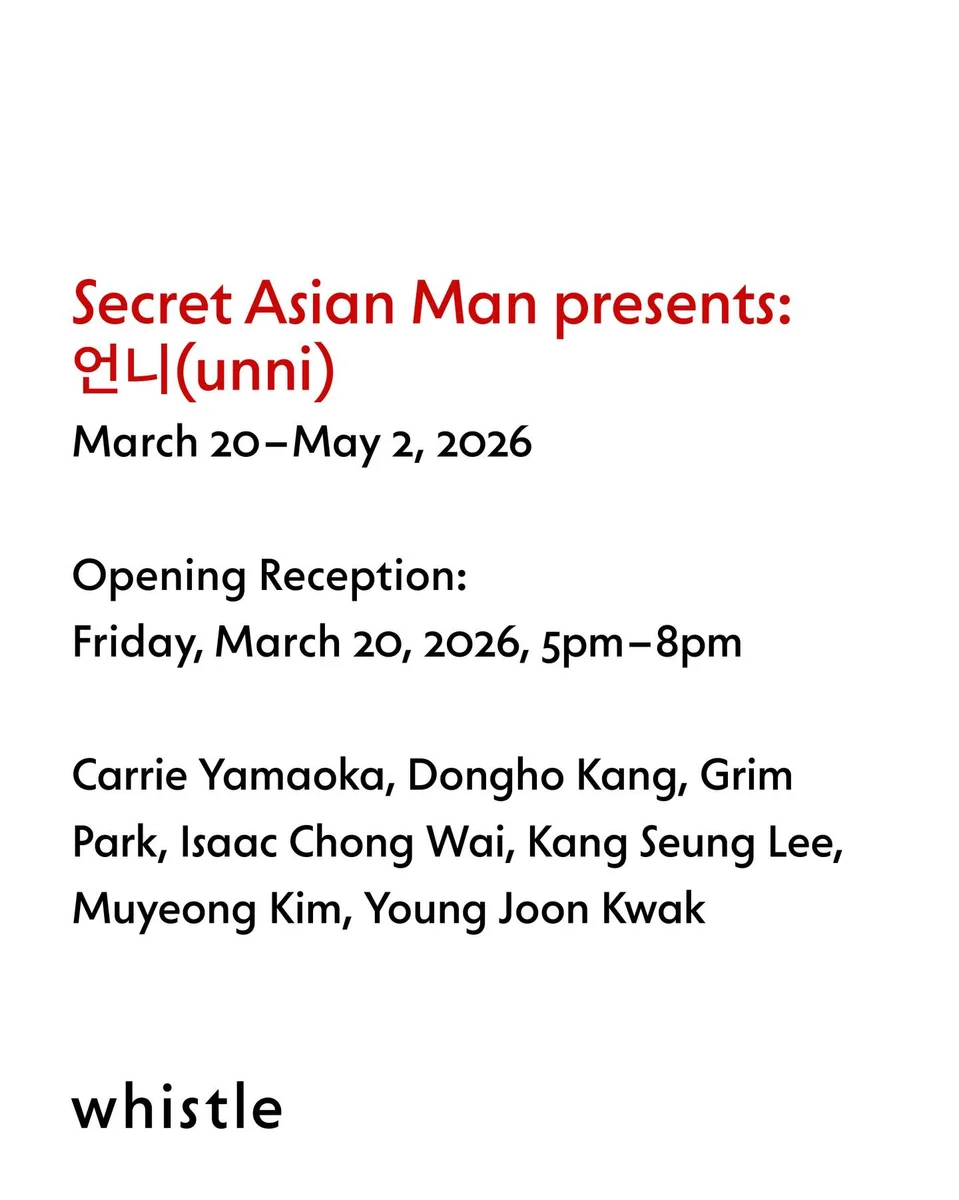 휘슬은 3월 20일(금)부터 5월 2일(토)까지 코먼웰스 앤 카운슬의 협업 전시 프로젝트 「Secret Asian Man presents: 언니(unni)」 1부를 개최한다. 본 프로젝트는 2025년부터 현재까지 LA 갤러리 내부의 문이라는 경계적 공간에 자리한 연속적인 전시 프로젝트로 전개되어 왔다. SAM의 회전하는 양면 벽은 앞/뒤, 안/밖, 여기/저기, 나/너, 우리/그들, 그리고 Asian/Agent 사이의 명확한 경계를 뒤섞고 흐리게 만든다. 휘슬에서 열리는 단체전 1부에는 야마오카 캐리, 강동호, 박그림, 아이작 총 와이, 이강승, 김무영, 곽영준 등 총 7명의 작가가 참여하며, 2부 전시는 오는 4월 코먼웰스 앤 카운슬에서 이어질 예정이다. 출처: 휘슬