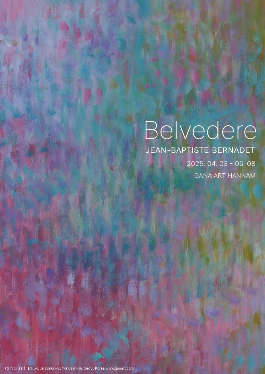 전시 개요 OVERVIEW 가나아트는 프랑스 파리에서 태어나 현재 벨기에 브뤼셀을 중심으로 활동 중인 작가 장 밥티스트 베르나데(Jean-Baptiste Bernadet, b.1978)의 개인전 《Belvedere》를 개최한다. 이번 전시는 국내에서 처음 선보이는 베르나데의 개인전으로 그의 대표 연작인 〈Fugue〉시리즈의 신작 16점과 드로잉 연작 〈Gray Matters〉를 선보인다. 여기서 작가는 ‘무엇을 그리는가?’보다 ‘어떻게 드러나는가?’에 집중한다. 그는 완성된 이미지나 서사를 그리는 대신, 회화라는 매체로 감각, 시간, 기억과 같은 경험을 가시화하고자 한다. 특히 베르나데는 캔버스의 물질성과 비가시적 요소 사이의 긴장과 대비에 깊은 관심을 두고 작업을 이어가고 있다. 이번 전시에 소개되는 〈Fugue〉 시리즈는 베르나데의 작업 세계를 집약적으로 보여주는 대표적인 연작으로, 그는 음악의 푸가처럼 유사한 구조를 반복하면서도 색과 붓질의 변주를 통해 화면에 밀도를 쌓아가는 방식을 차용해 화면을 채운다. 그는 유화 물감을 얇은 붓으로 빠르게 중첩해 화면을 고르게 채워 나가며, 그 과정 속에서 형상이나 제스처, 노동의 흔적이 드러나지 않도록 조율한다. 이러한 작업 방식은 작가가 화면에서 자신의 존재감을 최소화하려는 태도를 반영한다. 그가 겹겹이 쌓아 올린 붓질은 화면 위에서 질서와 우연이 교차하는 시각적 리듬을 만들어내며 각각의 작품은 독립적인 동시에 그의 전체적인 작업 세계를 이루는 한 조각이 된다. 그는 화면의 중심이나 강조점을 의도적으로 제거한 구성을 통해 관람자의 시선을 특정 지점에 고정하기보다 전체 화면을 유연하게 이동하도록 유도하는데 이러한 화면은 구체적인 형상을 제시하지 않으면서도 감각과 기억을 자극해 자연 풍경, 물결, 빛의 반사 같은 이미지를 자유롭게 연상하게 한다. 전시 제목 벨베데레(Belvedere)는 이탈리아어로 ‘아름다운 풍경’을 의미한다. 제목이 암시하듯, 그의 작업은 추상이면서도 어딘가 풍경을 떠올리게 하는 지각의 경계에 머문다. 이번 전시를 위해 제작된 〈Fugue〉연작은 모두 16:9 비율의 동일한 크기의 캔버스에 그려졌으며 나란히 배치된 작품들은 영화 속 스틸컷처럼 시퀀스를 이루며 시각적 흐름을 만들어낸다. 각 작품은 창문 너머 펼쳐지는 풍경처럼 전시 공간의 물리적 범위를 넘어 관람자의 기억과 감정, 그리고 감각의 열린 통로가 되어 새로운 시각적 여정을 제시한다. 전시장 입구에 설치된 〈Gray Matters〉시리즈는 작가가 작업 중 사용한 종이 팔레트를 바탕으로 제작된 드로잉 연작으로 일종의 시각적 일기이자 작업 과정의 기록물이라 할 수 있다. 무의식적인 손의 움직임과 물감의 얼룩이 쌓여 형성된 이 작품들은 단순한 부산물이 아니라 베르나데가 비가시적 감각을 회화적 언어로 변환하는 방식을 보여주는 단서이자 결과물이다. “내 작품이 하나의 선명한 소리처럼 명확하면서도, 동시에 사라지기 직전의 상태처럼 보이길 원한다”는 베르나데의 말처럼, 그의 화면은 회화적 경험을 개인의 내면적 체험으로 확장한다.
