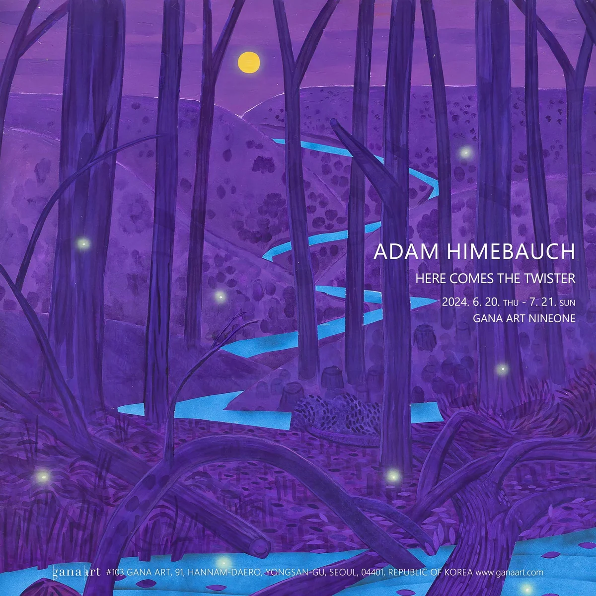 전시 개요 OVERVIEW 가나아트는 뉴욕 맨해튼을 기반으로 활동하는 아담 하임박(Adam Himebauch, b. 1983)의 개인전《HERE COMES THE TWISTER》를 개최한다. 2011년 미국 위스콘신에서 뉴욕 로어 이스트 사이드(LES, Lower East Side)로 이주한 하임박은 쎄송&베네티에(Ceysson & Bénétièr, 뉴욕, 코에리히, 파리, 리옹, 제네바, 생테티엔), 알버츠 벤다(Albertz Benda, 뉴욕, 로스앤젤레스), 데이비드 즈위너(David Zwirner, 뉴욕, 로스앤젤레스, 런던, 홍콩, 파리)와 같은 다수의 기관에서 개인전 및 단체전을 통해 작품을 선보여 왔다. 이 외에도 그의 작품과 행보는 2023년 뉴욕타임스(The New York Times)와 2015년 롤링 스톤(Rolling Stone Magazine)에서 특집 기사로 다뤄졌으며, 꼼 데 가르송(Comme des Gar ons) 및 나이키(Nike)와 예술 협업을 통해서도 소개된 바 있다. 본 전시는 아시아에서 최초로 선보이는 하임박의 개인전으로, 작가의 유년 시절 기억에서 비롯된 내면의 세계를 그려낸 8점의 신작을 조명하는 자리가 될 것이다. 하임박은 ‘토네이도의 골목(Tornado Alley)’이라 불리는 미국 중부 지역에서 어린 시절을 보냈다. 잦은 토네이도 경보와 위협, 그리고 폭풍이 불기 시작하면 지하실로 피신하곤 했던 어린 날의 기억은 작가에게 안전에 대한 트라우마를 남겼다. 그의 트라우마를 담은 작품에서 가장 눈에 띄는 부분은 단연 창틀처럼 보이는 수직선들과, 휘몰아치는 바람 속 혼란스러운 마을의 풍경이다. 붉은빛 하늘, 휘날리는 나뭇잎들은 토네이도가 들이닥치고 있음을 암시하며, 불길한 분위기를 고조시킨다. 실제 창틀과 비슷한 크기인 2미터가 넘는 대형 캔버스는 관람자로 하여금 창밖으로 다가오는 토네이도를 보고 있는 것과 같은 화면으로 몰입도를 높인다. 본 전시의 출품작들은 토네이도가 지나간 진행 상황을 시간순으로 보여주며, 마지막 순서에는 모든 재난이 끝나고 평화를 되찾은 풍경을 기록했다. “이 주제에 맞춰 작업하는 것은 내가 자라면서 겪었던 혼란스러운 상황들과 그 트라우마를 소화하는 방식입니다.”라는 작가의 말처럼, 그의 작업은 예술을 창조해 내는 창작 활동을 넘어선 자기 치유의 과정이다. [오프닝 행사 및 퍼포먼스 공연] 《HERE COMES THE TWISTER》전 오프닝 행사로 작가의 퍼포먼스가 진행됩니다. 퍼포먼스는 6월 20일(목) 오후 4시부터 진행되며, 행사는 6시까지 진행됩니다. 많은 참석과 관심 부탁드립니다.