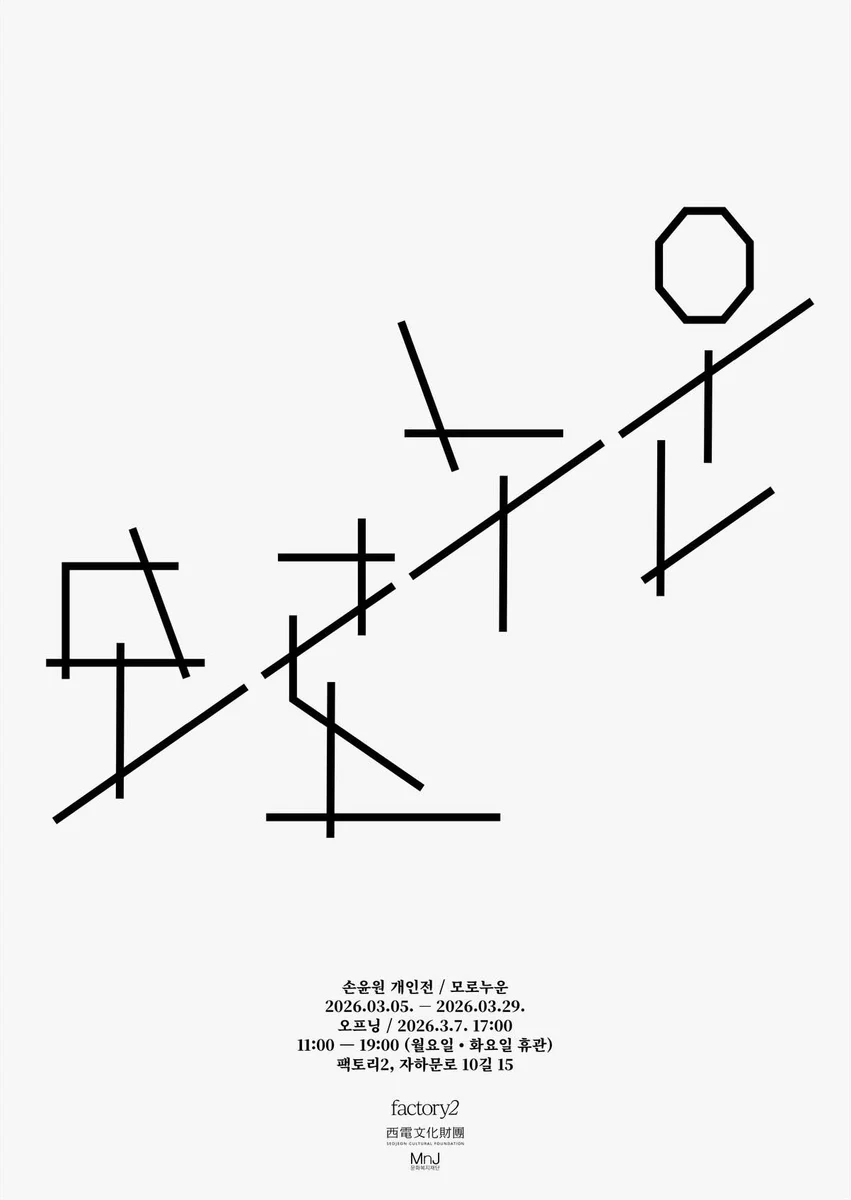 이번 전시는 우리가 익숙하게 머물던 공간을 낯선 형태로 마주했을 때 느끼는 반가움에서 출발했다. 언젠가는 떠나야 할 장소라는 조건 속에서, 매일의 생활이 반복되며 흔적을 남긴 거실 바닥을 마치 쪽지처럼 접어 다른 장소로 가져가 펼쳐보는 방식을 실험했다. 이는 특정한 기억을 보존하려는 시도보다, 우리가 머물렀던 공간이 어떻게 다른 형태로 번역될 수 있는지 묻는 과정에 가깝다. 시작은 숫자와 얼굴이 그려진 종이 한 장이었다. 딸이 두세 살 되던 무렵, 친정엄마가 아이에게 숫자와 이름을 가르쳐주며 그린 낙서를 액자에 넣어 집 안에서 가장 자주 오가는 벽 한쪽에 걸어두었다. 그리고 그 액자와 액자가 걸려 있던 장소를 전시장으로 옮겨보았다. 크고 작은 장난감이 밀물과 썰물처럼 오가던 거실 바닥을 50x50cm 크기의 얇은 알루미늄 판으로 나누고 93개의 판에 경첩을 달아 접고 펼 수 있는 구조로 바꾸었다. 늘 단단히 고정되어 있다고 믿어온 바닥이 기울어지고, 평평하게 펼쳐져 있던 평면이 접히는 순간, 공간은 더 이상 단순한 배경이 아니라 손에 잡히는 구조가 된다. 거실에 모로 누워 몸을 틀고 잠시 바닥에 머물 때, 공간은 더 이상 배경에 머물지 않고 우리가 취하는 하나의 태도가 된다. 손윤원 Younwon Sohn 손윤원은 바닥(floor)과 환대(hospitality)에 대한 관심으로 조각, 설치, 사운드 등을 통해 풍경 공유에 주목한다. 접었다 펼칠 수 있는 바닥 조각을 만들어 스스로 발 딛고 있는 장소와 위치에 대해 고민하고, 만질 수 없는 장면을 기록하고자 소리를 녹음하고 편집한다. 환대의 모순적이면서도 양가적인, 기대에 부응하지 못해 미끄러지는 감각 등을 조각적으로 탐구하고 있다. 서울과 암스테르담에서 공부하였고, 인사미술공간(KR), 아르코미술관(KR), Rong Wrong(NL), Neverneverland(NL), Tiefkeller(DE) 등에서 개인전과 그룹전에 참여했다. 전시 안내글: 김다은 그래픽 디자인: 정유경 공간 설치: 손윤원, 나메, 황효덕, 최서우, 김은정 주최・주관: factory2 후원: MnJ문화복지재단, 서전문화재단, factory2