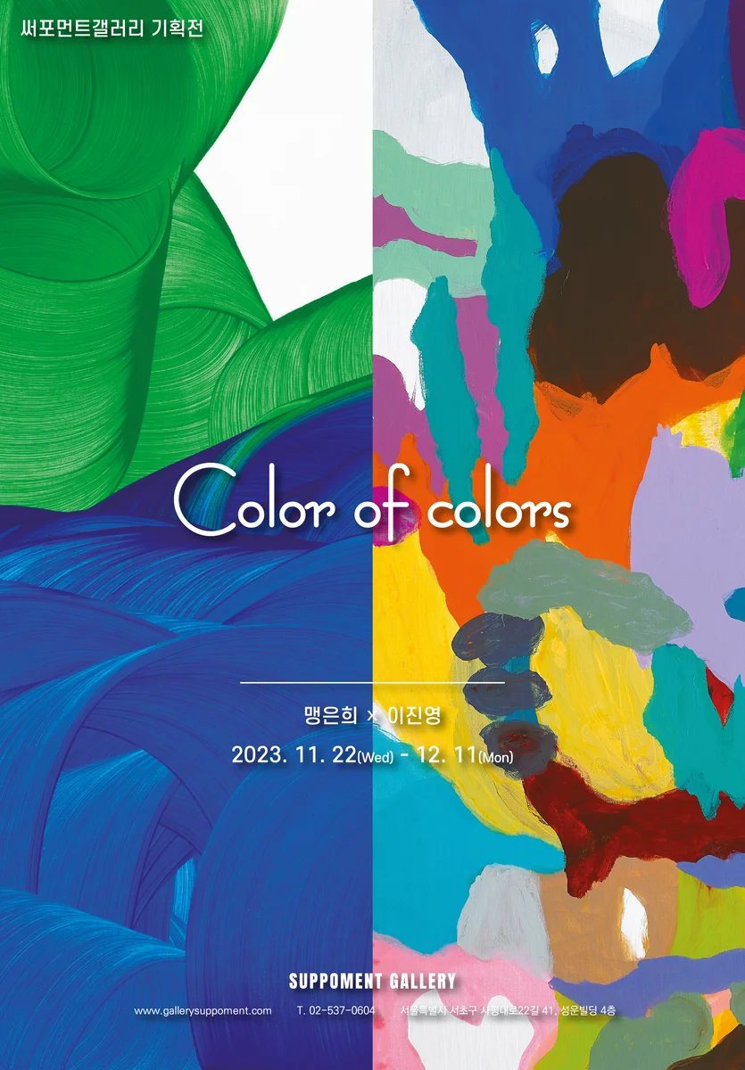 전시 개요 OVERVIEW 써포먼트갤러리, 맹은희 X 이진영 2인 초대전 <Color of colors> 개최 오는 11월 22일부터 12월 11일까지 서래마을에 위치한 써포먼트갤러리에서 맹은희 이진영 작가의 2인 초대전이 진행된다. 이번 전시는 맹은희 이진영 작가만의 특유의 색상이 돋보이는 작품들로 구성되어있으며 Color of colors 제목처럼 캔버스 위에 자유롭게 표현된 다양한 색 안에 또 다른 색들의 매력을 느낄 수 있을것이다. 맹은희 작가는 외형적 의미를 제거하고 직관적인 형식을 스스로 부과함으로써 재료들의 내재된 특성을 이용한 작업을 선보여왔다. 빠르게 건조되는 아크릴물감을 이용해 순간의 붓질, 그 찰나에 오로지 작품과 호흡하며 그 속에서 일어나는 물감의 충돌 현상과 반복되는 행위 자체를 강조하여 집중하는 그 시간 자체에 의미를 둔다. 이번 전시에서는 맹은희 작가의 시그니처인 블루와 녹색이 겸비된 작품을 선보이며, 그간 거대하고 묵직한 자연을 마주하며 느꼈던 웅장함과 울림을 작품에 담아내고자 하였다. 작가는 빈 캔버스와 물감이 닿는 순간 전달되는 감각이 마치 자연 앞에 섰을 때 느껴지는 울림과 같다고 이야기한다. 물감과 캔버스가 조우하는 그 순간, 작가는 직관에서 오는 붓의 흔적을 따라가면서 카타르시스를 느끼고 이로 인해 작업 자체에 더욱 빠져들며 동시에 또 다른 울림을 느끼게 되는 것이다. 때로는 말로 다 설명할 수 없는 느낌에 혼란스로울때도 있지만 작가는 그것 역시 직관을 따라가는 자신의 예술세계라고 말한다. 이진영 작가는 예술가가 되기 전에 피아노를 전공했고, 음악가로서의 오랜 경험은 그녀의 전반적인 예술적 작업 과정과 관련이 있으며, 그녀의 작품은 음악의 “오디오 감각”과 그림의 “시각 감각”이 함께 융합되어 표현된 동시성을 드러낸다.작가의 표현 방법은 음악의 다양한 본질적인 특징에서 파생되는데 음악이 대상을 구체적으로 묘사하지 않기 때문에 그녀의 작품은 추상적이며 특정한 대상을 재현하지 않고 다양한 색상을 사용하여 빠르고 자발적인 붓 놀림으로 그림을 그려서 그 바탕에 깔린 음악적 영감을 극대화하려고 노력한다. 이진영 작가의 “오늘날의 감성” 시리즈는 장르 간의 통합. 감성 간의 통합, 시대마다 다른 시기에 걸쳐 다양한 일들이 동시에 발생하는 동시성을 나타낸다. 이진영 작가는 2008년부터 다양한 아트 프로젝트에 참여했으며 독일 뮌헨에 있는 전속갤러리인 칼트갤러리와 함께 정기적으로 전시회에 출품하기도 했다. 또한 33회의 개인전과 한국, 유럽, 미국, 아시아에서 열리는 다양한 아트페어 100여회에 참가했다. 맹은희 이진영 2인 초대전 <Color of colors>전시는 12월 11일까지 서래마을에 위치한 써포먼트갤러리에서 진행된다.