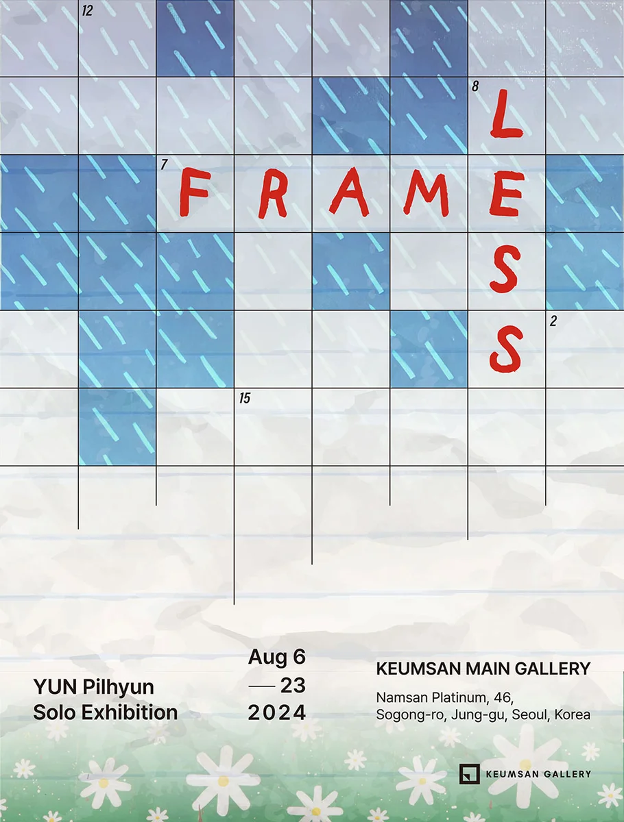 전시 개요 OVERVIEW 금산갤러리에서는 오는 2024년 8월 6일(화)부터 8월 23일(금)까지 간결하지만 섬세하고도 유머러스하게 작업하는 윤필현 작가의 개인전 <FRAMELESS>를 개최한다. 이번 전시에서는 작가가 일상에서 나눈 대화와 뉴스에 나오는 토픽들을 옴니버스형식으로 위트 있으면서도 키치하게 그려냈으며 생동감 넘치는 최신작을 발견할 수 있는 황금 같은 기회가 될 예정이다.