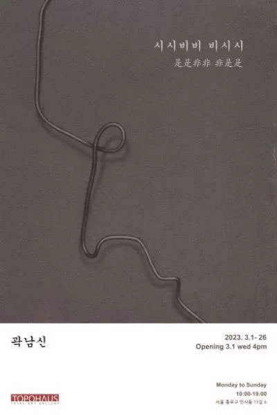전시 개요 OVERVIEW 곽남신은 홍익대학교와 동 대학원 서양화과, 파리 국립 장식미술학교를 졸업했다. 귀국 후에 홍익대학교 미술대학 교수를 거쳐 한국예술종합학교 미술원 교수를 역임하였다. 30여회의 개인전을 개최하였으며, 현재 곤지암에 정착하여 회화, 입체, 설치, 판화 등 다양한 분야의 작업을 시도하고 있다. 이번 전시는 대학 교수 정년퇴직 후에 2020년 뉴욕에 이은 한국에서의 첫 개인전으로 그의 변모한 모습을 볼 수 있다. 김삿갓의 시에서 따온 전시 제목인 “시시비비 비시시 (是是非非 非是是)”는 그가 세상을 바라보는 일관된 시각을 말해주는 것으로 온갖 시비거리만으로 날을 지새우는 인간사를 의미하는 것으로 우리 삶의 가치가 무엇인가 하는 의문을 던진다. 그는 1980년 희미한 나무그림자 작업으로 데뷔한 후 그림자와 실루엣을 모티브로 오랫동안 작업해왔다. 최근 들어서는 종이나 금속판을 오려 내서 실루엣이나 그림자 형상을 만들고 그것들을 그림으로 재조합해서 표현하는 방식으로 변모하고 있다. 근래의 그림들은 이러한 그림자와 실루엣 형상, 몇 가지 재질의 선의 표현, 네거티브와 포지티브의 하드보드 이미지로 이루어져 있고 그것들이 뒤엉켜 서로 다른 차원 간의 엉뚱한 관계를 맺기도 한다. 예를 들면 그림자가 그것이 드리워진 평면위에 놓인 낡은 철사와 이상한 관계를 맺기도 하고 하드보드지 실루엣 형상이 자신이 오려져 나온 나머지 판지의 반점을 바라보기도 한다. 또 네거티브와 포지티브 형상들이 소통이 불가능한 대화를 나누는 등 어찌 보면 엉뚱하고 초현실적 평면 공간을 탐닉하고 있다. 하지만 이러한 이미지들을 따르다 보면 결국은 모든 것이 다 공허한 허상에 불과한 것이라는 것을 알게 되고 이러한 장치들은 우리 삶의 부조리와 엉터리 소통방식, 위선 등을 드러내는 패러디와 유머의 도구로 쓰여지고 있다고도 볼 수 있겠다. 표현의 방법으로는 스프레이를 이용한 그림자, 색 면과 묘사적 표현은 아크릴 물감을 주로 사용하고 색연필로 세부를 완성하는 방식을 선호한다. 때로는 부분적으로 를 사용하기도 한다. 이번 전시회에는 층고가 높은 3전시실에는 100호~200호 사이의 대형 회화 19점을, 길에서도 보이는 제1전시실에는 드로잉, 회화, 입체 소품 8점을 전시한다. 또한 정년 이후에 쓴 에세이와 시를 모은 책 의 출판기념회도 한다. 평론 이렇듯, 세상을 바라보는 곽남신의 시선에는 냉소와 연민이, 거리두기와 끌어안기가 뒤섞여 있다. 곽남신의 입장이 열정과 신념의 자리가 아니라, 거리두기와 관조의 소산에 가까운 것은 물론이다. 확신에 찬 뜨거운 메시지나 몰입의 인식론은 그의 것이 아니다. 그렇더라도, 곽남신이 바라보는 세상의 중심에는 언제나 인간이 있다는 점을 간과해선 안 될 것이다. 곽남신의 회화가 자신 또한 그 연장인 다른 사람들의 삶을 초대하는 연찬의 장임도 부인하지 말기로 하자. 그들이 비록 실패하면서도 여전히 구애하고, 허망한 욕망의 덫에 연거푸 걸리고, 마케팅의 사냥감으로 전락하고 마는 초라한 성적표의 인간 군상에 지나지 않는다고 하더라도 말이다. 곽남신의 실루엣화 된, 질량을 박탈당한 사람들 앞에서 새삼 임마뉴엘 레비나스(Emmanuel Levinas)의 말이 떠오른다. ”참으로 사람다운 삶은…다른 사람에 눈뜨고 거듭 깨어나는 삶이다.“ – 심상용(서울대학교 미술대학 교수) 그의 작품은 드로잉에 기초하고 있다. 평면위에 나타나는 다양한 이미지들은 그리기에서 온 것이다. 곽남신 작품은 회화, 평면, 오브제, 조각 등을 폭넓게 다루지만, 이들은 모두 겉, 표면의 문제를 내포한다. 스토리텔러(story-teller)로서의 작가는 일상의 소소한 이미지 안에서 지극히 단순한 형식과 표현을 통해 대상뿐 아니라 그 안에 내포된 아이러니한 상황을 유추하듯 흥미로운 이미지들을 상상하게 만든다. 그가 오랫동안 다뤘던 그림자에는 생략과 함축이 존재하고, 실루엣으로 묘사된 형태도 마찬가지의 효과를 갖는데, 기호로서의 다의성을 갖춘 이미지들은 이야기의 파생력을 내포하고, 관객들에 따라 상이하고도 폭 넓게 경험될 수 있게 한다. 껍데기로