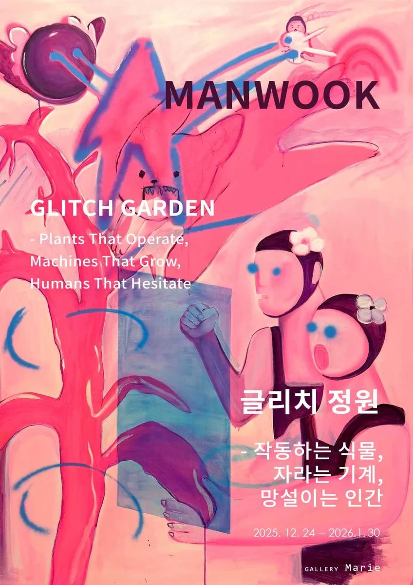 AI가 키우는 잡초와 예술, 만욱 개인전 《글리치 정원-작동하는 식물, 자라는 기계, 망설이는 인간》 세상에는 마음을 달래는 정원이 있고, 세상을 뒤흔드는 정원이 있습니다. 《글리치 정원》은 후자에 속합니다. 이 정원에서는 식물이 기계의 빛을 향해 뻗어가고, 기계가 인간의 존재를 감지해 미세한 떨림을 보이며, AI가 되돌려주는 이미지로 창작의 주체를 묻습니다. 만욱 작가는 오랫동안 인간의 기준에서 밀려난 존재들—잡초, 비인간 생명, 불완전한 기계—에 관심을 가져왔습니다. 이번 전시는 ‘비인간 생명’과 ‘기계-인간’의 연구가 직접적으로 만나는 자리입니다. 전시의 중심에는 단 하나의 질문이 놓여 있습니다. “누가 누구를 자라게 하는가?” 《글리치 정원》은 어떤 존재도 혼자 자라지 않는 시대의 새로운 생태를 제안합니다. 흔들림과 망설임 속에서 서로를 다시 자라게 하는 정원. 여러분을 그 정원으로 초대합니다. 오프닝 리셉션과 아티스트 토크에서도 작가가 직접 들려주는 ‘협업’, ‘자라남’, ‘망설임의 윤리’를 만나보시는 특별한 시간이 될 것입니다. *출처:갤러리마리