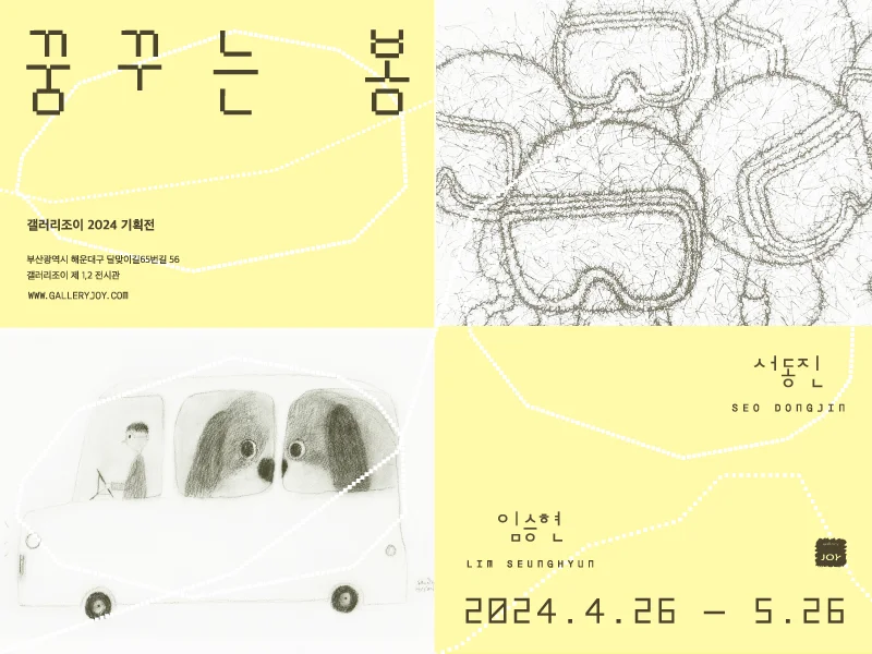 전시 개요 OVERVIEW ‘꿈꾸는 봄’ 임승현 · 서동진 동화 같은 순수함으로 일상의 이야기를 환상적으로 풀어내는, 평면의 임승현과 입체 서동진의 선善한 만남이 봄날 꿈꾸듯 다가왔다. 이들의 이야기는 우리의 잠자는 자아를 조용하고 편안히 깨운다. 임승현, 그의 미니멀한 화폭 속, 행복한 기억의 순간들은 우리에게 공감과 위로를 전한다. 그가 표현하는 화폭은 행복한 일상을 그대로 담아내어 긍정적인 에너지를 주며, 동시에 현대인을 대변하는 여러 캐릭터들은 감동적인 단막극을 보듯 신선한 주제로 우리의 감성을 자극한다. 서동진의 외유내강. 갈라지고 거친 손과 맑고 애잔한 눈동자가 빚어낸 그의 마음의 표정이 담긴 페르소나의 귀여운 외적 모습의 캐릭터들은 각각의 보호구안에 자신만의 내면의 자아를 품고 있다. 그의 보호구안의 상황들은 우리 모두의 현실이고, 또 꿈이다. 꿈을 꾸는 삶은 그 꿈을 이루기 위해 노력하고 희망을 품고 살아가는 것으로 자신의 이상을 향해 나아가는 여정에서 찾을 수 있는 소중한 삶의 가치이며, 그 자체로도 하나의 큰 보람이 된다. 일상의 소중함을 일깨우는 몽환적인 행복한 그림과 사랑스럽고 앙증맞은 귀여운 작품들이 내뿜는 내공과 함께 삶에 즐거운 변화를 주어 꿈속 같은 봄날을 만들어 보길 바란다.