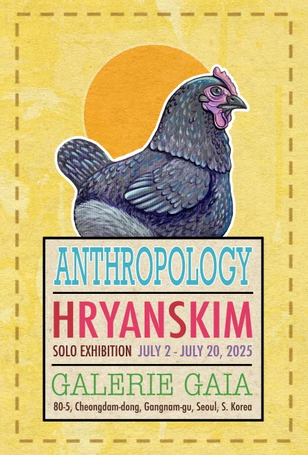전시 개요 OVERVIEW 갤러리 가이아는 7월 2일(수)부터 Hryanskim 작가의 두 번째 개인전 ‘Anthropology'(인류학)을 7월 20일까지 개최합니다. Hryanskim(라이언 킴)은 한국계 미국인 작가로 2017년 School of Visual Arts에서 일러스트레이션 학사학위를 취득하였고, 전통적 도구와 디지털 도구 및 기법을 접목시킨 작가이자 일러스트레이터로 활동하고 있습니다. 그의 작품은 동물과 식물의 의인화를 통해 표현된 내러티브에 중점을 두고 있으며, 각 작품에는 특정 동물의 행동 특성과 우리 사회에서 볼 수 있는 행동 특성 사이의 유사점, 대중 문화, 동물학, 역사 등 다양한 이야기가 숨겨져 있습니다. 이번 전시에서 라이언 킴 작가는 동물을 은유적 매개체로 삼아 인간 존재에 대한 탐구를 시도합니다. 각 작품은 하나의 독립적인 이야기를 담고 있으며, 동화 같은 상상력과 위트를 자아냅니다. 작업 방식 면에서는 이전 작품들에서 보였던 치밀한 묘사와 구성에서 벗어나, 보다 자유롭고 제스처 중심의 붓 터치를 선보입니다. 과거의 작업들이 치밀한 계획과 정교한 구성 아래 진행되었다면, 이번 시리즈는 즉흥적으로 모든 요소를 손으로 자유롭게 그리는 방식으로 제작되었습니다. 이러한 변화로 인해 작품들은 더욱 유쾌하고 장난스러운 분위기를 띠며, 각 회화 속에는 실현되지 않은 아이디어들이 은근히 겹겹이 숨어 있습니다. 이번 연작은 라이언 킴이 지난 개인전 ‘Metonymy’를 마친 뒤 거주하게 된 슬로베니아 류블랴나에서 완성된 것입니다. 작가는 여러 겹의 색상을 레이어링 하고, 유약을 바르고, 흘리고, 튀기는 페인팅을 통해 작업의 선명도와 깊이를 얻습니다. 이 과정은 여러 번 반복되며, 이러한 과정을 통해 엄격한 제어와 예측할 수 없는 카이오스가 동시에 존재합니다. 디지털 방식으로 작업할 때 그는 잉크와 연필 렌더링에 사용되는 기술을 연상시키는 선 그리기와 음영 처리를 결합하여, 전통적 표현 방식과 디지털 기술이 공존하는 작가만의 조형 언어를 구축하고 있습니다. 유망한 청년 작가 라이언 킴의 두 번째 개인전에 여러분을 기쁘게 초대합니다. Hryanskim’s second solo show at Galerie Gaia titled, Anthropology, will be held from July 2 to July 20, 2025. Anthropology explores the human condition through the depiction of animals which serve as metaphorical vessels. Each piece embodies a specific narrative and presents a fairytale-like whimsy. Stylistically, the painting technique shifts from the tight rendering of his previous pieces in favor of a looser and more gestural brush technique. Instead of the painstaking, planning stage required to create his previous bodies of work, this collection was created sporadically where every element was done freehand and in the moment. As a result of this new approach, the work appears more playful and many of the paintings hide layers of unrealized and abandoned ideas. Each piece was created while living in Ljubljana, Slovenia, where he moved following the end of his last show Metonymy. Laser Pointer_70x90cm_acrylic on canvas_20