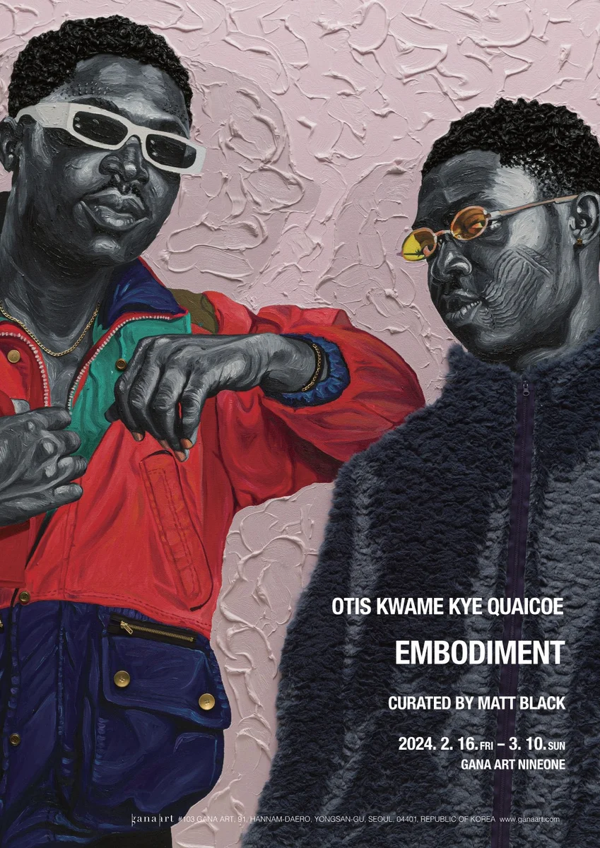 전시 개요 OVERVIEW 가나아트는 미국 오리건을 기반으로 활동하는 가나 출신의 작가, 오티스 콰메 계 퀘이코(Otis Kwame Kye Quaicoe, b. 1988-)의 개인전 《Embodiment》를 개최한다. 그의 작품은 2022년 틴 보그(Teen Vogue)와 월간지 베니티 페어(Vanity Fair) 표지로 실렸고, 반헤렌츠 아트 컬렉션(Vanhaerents Art Collection, 브뤼셀), 덴버 미술관(Denver Art Museum, 덴버), 페레즈 미술관(Pérez Art Museum, 마이애미) 등 유수 미술관에 소장되며 많은 주목을 받기도 했다. 사진작가였던 친구에게 사진을 배운 퀘이코는 직접 촬영한 다수의 인물사진을 캔버스에 옮기기 시작했다. 퀘이코의 작품은 두꺼운 임파스토가 돋보이는 화사한 단색의 배경 및 의상과 피사체의 어두운 피부가 자아내는 극적인 대비감이 특징적이다. 퀘이코의 관심사와 맞물려 스튜디오에서 촬영한 잡지 화보를 연상시키는 그의 초상화는 작가의 연출과 피사체의 당당한 태도를 통해 흑인들을 팝 아이콘의 지위에 올려놓았다. 이에 가나아트는 본 전시가 격동하는 미국 사회에서 흑인들의 개성과 내면을 예리하게 포착하는 오티스 콰메 계 퀘이코의 시선을 시각적으로 경험할 수 있는 뜻 깊은 자리가 될 것으로 기대한다.
