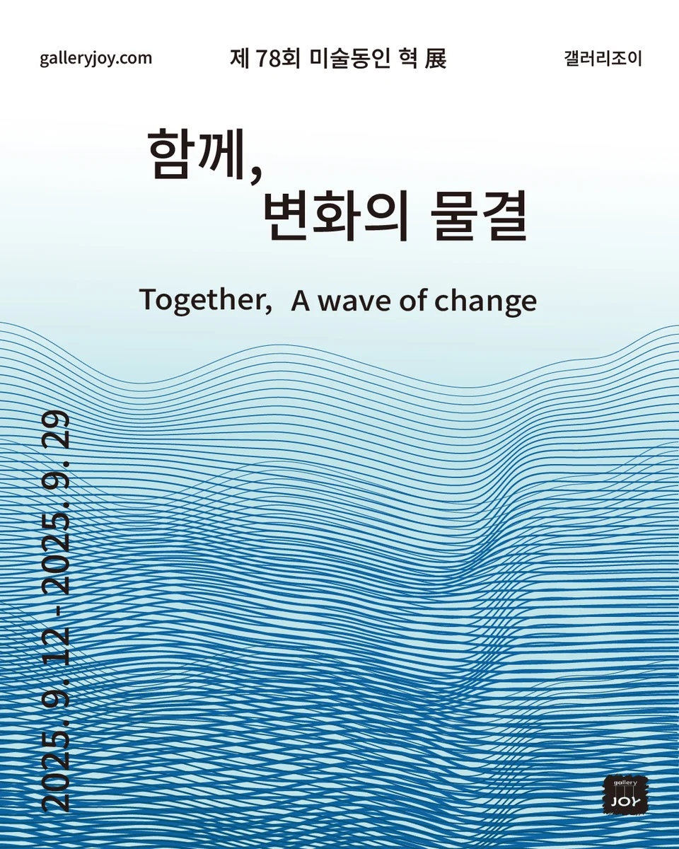 전시 개요 OVERVIEW 제 78회 미술동인 혁 展 – 함께, 변화의 물결 Together, A wave of change 2025.9.12 – 2024.9.29 1963년 창립해 올해 63주년을 맞은 미술동인 혁은 부산에서 탄생한 현대미술을 추구하는 실험정신이 강한 최장수 단체이다. 창조적 자유의지를 기본으로 현실에 안주하지 않고 새로운 변화를 추구하며, 어떠한 사조나 사상, 관념 등도 창조를 통해 넘어서는 힘을 갖고 있음을 보여주는 이번 78회 전시의 주제는 -함께 변화의 물결-이다. 역경과 난관의 시대 속에서도 희망을 꿈꾸며, 각자의 시선으로 세상과 소통하고 도약하여 변화의 시대를 예술로서 가치 있게 창조하고자 한다. 이러한 혁동인 작가들의 끊임없는 탐구와 잠재력 있는 다채로운 작품에 많은 관심과 공감이 이어져, 작가들의 창작에 큰 힘이 되길 바란다. 참여작가 강귀화, 강선보, 금 경, 김남주, 김미화, 김정희, 김주희 ,띠그란아코피얀, 박수진, 박순연, 박태홍, 석점덕 , 유순천, 유진재, 윤미희, 윤 슬, 이명호, 이상희, 이승현, 이연희, 이주영, 조연승, 지경희, 최영아, 최예원, 최창임, 하훈수, 허종하 부산광역시 해운대구 달맞이길 65번길 56(중동) CK빌딩 1F.갤러리조이 Tel:051.746.5030 Homepage:http://www.galleryjoy.com