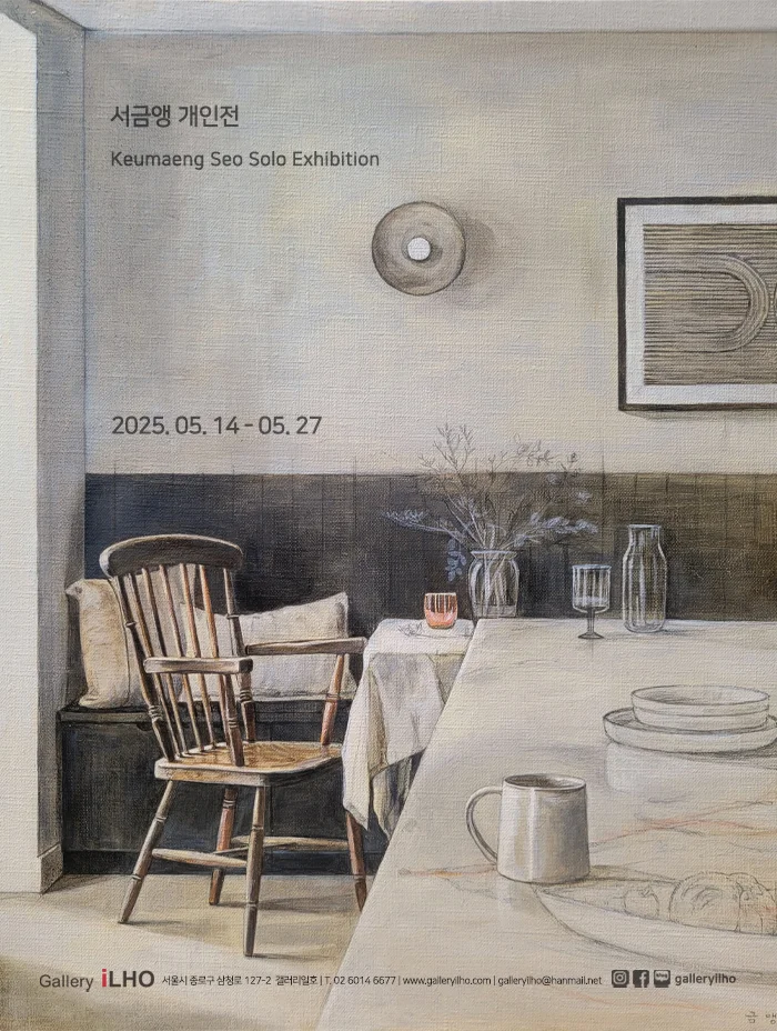 전시 개요 OVERVIEW 전시제목: 서금앵展 참여작가: 서금앵 전시기간: 2025. 05. 14 (수) – 05. 27 (화) 관람시간: 10:30 – 18:00 (월요일 휴관) 전시장소: 서울시 종로구 삼청로 127-2, 갤러리일호 작품목록: https://blog.naver.com/galleryilho/223858919974 특별해 보이지 않는 일상공간에 시선이 머물고, 주체가 머물렀던 그 공간을 누군가 멀리서 또는 가까이서 바라봄으로 이야기가 시작된다. 우리가 생활하고 있는 공간들은 우리의 삶에 있어 중요한 영향을 미치지만 이런 사실을 일상이 주는 익숙하고 평범한 느낌으로 인해 정확히 인식하지 못하기도 한다. 이러한 일상 공간이 예술작품으로 표현되었을 때 관객은 일상성이 주는 보편성으로 보다 쉽게 작품에 접근할 수 있고, 미술작품으로 인식한 공간을 일상으로 돌아가서는 그것이 가진 의미를 재인식할 수 있는 계기를 마련하게 된다. 실제 공간 속에서 물체는 선택 되어지고 놓여 지지만 존재의 흔적으로 그 의미를 획득한다. 이러한 과정을 통해 공간은 곧 인간의 흔적을 담는다는 사실을 인식하게 되고 그러한 흔적으로 존재에 대해 궁금증을 갖게 된다. 흔적은 그것을 남겨놓은 자의 의도와는 무관하게 남아 있다. 흔적을 지우는 행위는 그 자체로 또 다른 흔적을 남기기 때문에 흔적은 지울 수 없는 속성을 지닌다. 우리 주변의 일상적 공간들을 인식함으로 그 곳에서 의미를 찾고 존재의 흔적을 발견함으로 개인적인 공간에서 느껴지는 심리를 투영시키고자 한다. 나에게 있어 ‘내가 속한 공간’ 이라 함은 아주 친밀한 일상의 공간을 의미한다. 반복적인 일상생활 속에서 내가 속하게 되는 공간은 주체적인 색을 띠게 되며, 나를 기억해 내는 기능을 수행하게 된다. 이 공간들을 통해 보여 지는 광경은 내 삶 속에서 경험한 것들과 결부되는 감정들이 내재되어 있다. 반복되는 일상에 대한 의구심과 상상력은 지속적으로 이어지며, 평범한 일상 속에서 낯선 장면에의 포착이 이루어지기도 한다. 일상생활은 인간의 다양한 활동들로 이루어지며, 하루하루 반복 및 창조로 이루어지는 일련의 활동 과정 전체를 의미하며 그 자체가 우연적이고 즉흥적이지만 매우 자연스러워서 그것을 인식하기 전에 지나쳐 버리는 시간 혹은 사건이기도 하다. 그러므로 삶을 영위하고 있는 인간 역시 자신이 속해 있는 시간과 공간이 공존하는 그 일상이라는 것을 인식하고는 있지만, 그것을 특별한 의미로 받아들이기는 어렵다. 인간에게 있어 일상이란 모든 사람들이 주인공이 되는 현재 진행형의 무대라고 말 할 수 있다. 이러한 일상생활에서 경험하여 심리적으로 연출된 공간을 제작함으로써 그 공간 안에 놓이는 사물의 배치와 그것들이 보여 지는 다양한 방법적인 면을 통해 내가 경험한 일상 속의 공간을 표현하고자 하였다. 그림 속의 ‘공간’을 통해 그것이 나에게 어떠한 의미를 가지고 있는가를 재인식하고, 작품이 보여 지는 형식에서 관객과의 지속적인 소통을 시도하고자 하였다. 일상의 공간과 사물은 보는 이로 하여금 주관적인 의미가 부여된다는 것을 전제로 하였으며, 일상이 가지고 있는 다양한 의미를 함축한 공간을 연출함으로써 예술적 체험 외에도 일상적인 공간을 새롭게 인식하게 되는 계기를 마련하였다.