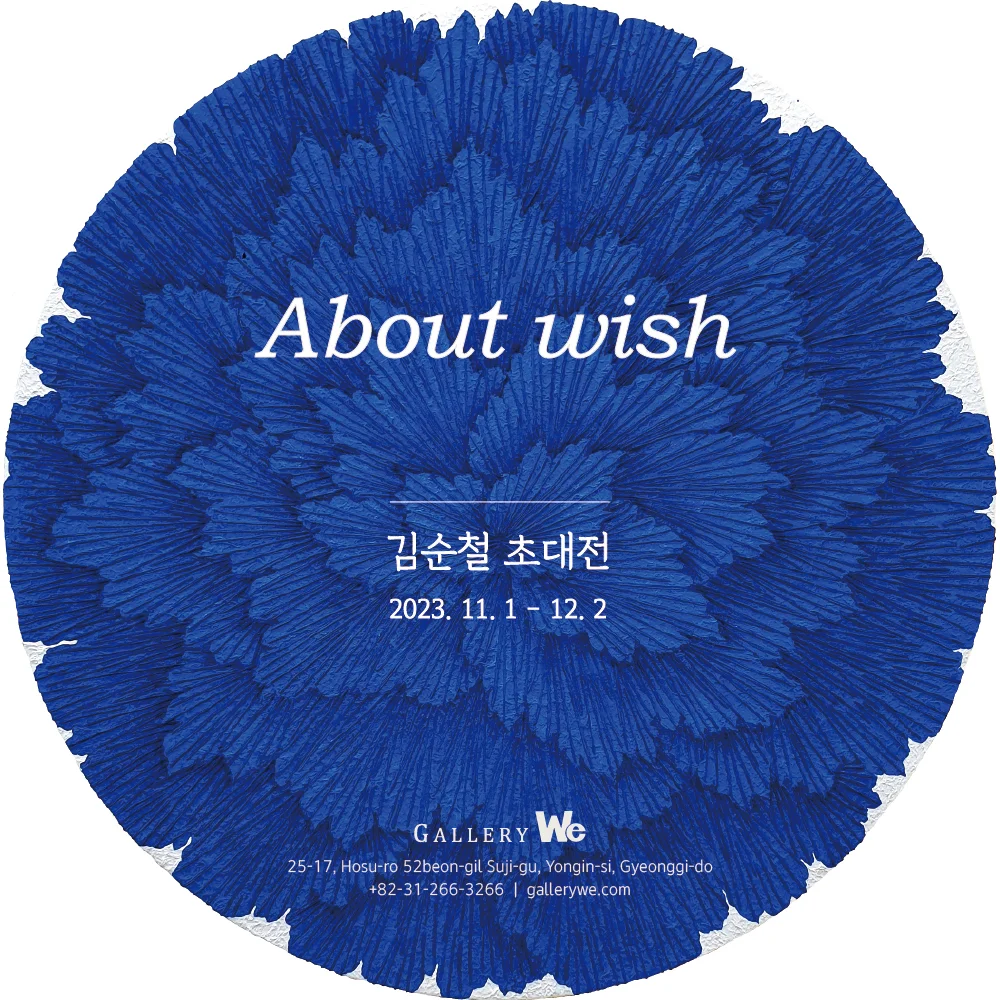 전시 개요 OVERVIEW 삶과 내면의 연결을 천착하는 바느질 수행으로 한국현대미술 안에 고유한 자리를 일구어 온 김순철 작가 초대전 ‘About wish’가 갤러리위에서 열린다. 홍익대학교 미술대학 및 동 대학원 동양화과를 졸업한 김순철 작가의 실(絲)작업은 80년대 말 평면인 한국화의 입체적 표현 모색에서 출발했다. 1997년 첫 개인전을 통해 발표한 바느질 작업이 긍정적 반향을 일으켰고, 2003년 독일 퀼른 아트페어에서는 실로 도톰하게 쌓아 올린 달항아리를 선보였다. 확산하는 바느질로 표현한 꽃의 형상에 이르기까지 재료의 연속성은 물론 미학적 깊이를 확보하며 계속 나아가고 있다. 현재의 김순철 작가를 대표하는 추상적 개념의 ‘꽃’은 수확을 마친 밭에 남겨진 배추에서 시작된 자화상이다. 혼신을 다해 이룬 자연의 결구(結球), 피어나려는 바람이 꽃의 모습으로 변모했다. 손으로 떠 요철감 있는 여러 겹의 한지에 면실로 바느질한다. 그 위에 채색하는데 깊게 스미는 여러 번의 과정에 색의 궤적들이 생겨난다. 퍼지는 바느질 땀과 풍성한 색의 등차로 생겨나는 강렬한 아우라가 홀연 내면에 깊이 파고든다. 이번 전시에는 꽃, 달항아리, 그릇 등 김순철 작가의 대표 시리즈 17점이 전시된다. 100호 7점을 비롯해 5호부터 50호까지 고른 사이즈의 작품을 만나볼 수 있다. 작가의 시선은 격렬한 현실에서 조금 떨어져 고요한 마음으로 내면을 비추어 보는 중이다. 마음이 투영되는 형상을 유영하며 묵묵히 수행하듯 안과 밖을 순환한다. 작품 속 실로 이은 수백의 연결은 자연과도 사람과도 인생과도 닮아있다. 완성된 바람(wish)들은 작품으로부터 흘러와 관람객의 내면에 자연스레 연결된다. 그 연결의 완성이 우리로 하여금 바람(wish)하는 곳으로 향하게 하는 표상이 되어줄 것이다. 김순철 KIM SOON CHEOL 1965년 서울출생 1987년 홍익대학교 미술대학 동양화과 졸업 1989년 홍익대학교 대학원 동양화과 졸업 개인전 37회 (서울, 부산, 제주, 중국, 독일 등) 국내외 아트페어 및 기획전 300여회 2021 천안문화재단 작품선정 2016, 2008, 2006 국립현대미술관 미술은행작품 선정 2010 소마미술관 등록작가선정 2009 한국전력 전시지원작가선정, 서울문화재단 전시지원작가 선정 2005 경향신문사 오늘의 작가상 수상 2005 북경예술박람회 은상 수상 2002 대한민국미술축제 특별상 수상 1994 제4회 MBC미술대전 수상 주요작품 소장처 국립현대미술관(미술은행) 이천시립월전미술관 삼성생명(주) 국립원자력병원 상명대학교박물관