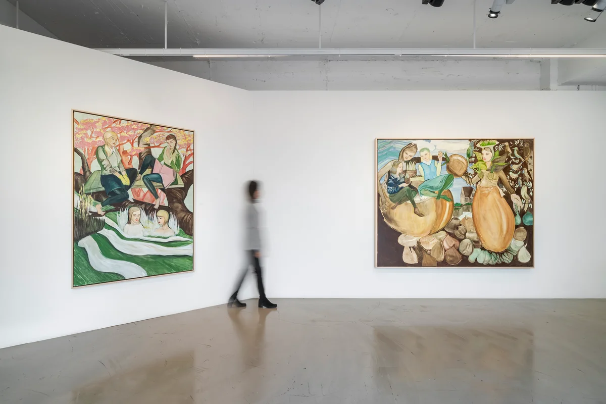 전시 개요 OVERVIEW 갤러리바톤은 로사 로이(Rosa Loy, b. 1958)의 세 번째 개인전, 《Lucky Days》를 11월 16일부터 12월 17일까지 개최한다. 페인터이자 남편이기도 한 네오 라우흐와 함께 ‘신 라이프치히 화파(NLS: New Leipzig School)’의 주축 작가이기도 한 로사는, 낭만적인 극적 요소가 부드럽게 화면 전체를 지배하는 가운데 등장인물 간의 신비스럽고 친밀한 교감이 한층 더 부각된 신작들을 선보인다. 라이프치히의 특색을 논할 때면 구 동독 시절 사회주의 미술(Socialist Realism)의 직간접적 영향이 우선적으로 거론되지만, 이 지역이 속한 작센 주는 19세기 독일 낭만주의 미술이 만개한 곳이기도 하다. 이러한 회화의 유구한 전통은 여러 면에서 로사의 작품 세계를 구축하는데 지대한 영향을 끼쳐왔다. 로사의 작품들은 처음엔 현란해 보일 수도 있으나 곧 지배적인 한두 개의 색조를 중심으로 화면 전체가 일정한 배색 패턴 하에 있다는 것을 감지할 수 있고, 이는 유럽 근대 회화의 특징적 요소이기도 하다. 원예사로 수년간 일했던 경험에서 나오는 꽃과 식물, 그리고 그것들이 함께 어우러진 풍경의 빈번한 등장과 비중 있는 묘사 또한 낭만주의 화가들이 줄곧 견지하던 자연에 대한 경외심과 닿아있다. 작품에서 관찰되는 등장인물이 속한 시공간과 몰두하고 있는 일에 대한 “모호함”은, 로사가 작업을 착상하고 화면에 옮기는 과정과 연관되어 있다. 사진을 찍거나 또는 여타의 인쇄물에서 이미지를 차용하지 않는 작가의 유일한 원천은 자신의 상상력과 잠재의식이다. 마치 꿈의 편린같이 불쑥 떠오른 이미지들은 작가에게 작품의 실마리를 제공하기도 하지만, 그 결과물을 마주한 작가에게 그 생각의 출처에 대한 궁금증 또한 선사한다. 이러한 몽환적인 분위기를 극대화하는 기법은 카제인을 함유한 물감 덕분이다. 카제인은 프레스코화에 주로 사용된 고전 매체로 현대에 이르러서는 아크릴과 유채의 발달로 인해 쓰임이 덜했다. 하지만 빠른 건조 시간 및 무광택 등의 장점은 작가를 매료시켰고, 첨가물 없는 순수한 색을 직접 만들어 자유자재로 활용하면서 지금의 신비로운 화풍을 탄생하게 했다. 로사가 묘사하는 대상은 여성이다. 작가는 어린 시절 라이프치히로 이주해 오면서 헤어진 또래 친구들 대신 만들었던 상상 속 가상의 친구들이 등장인물과 연관되어 있을 수 있다고 회상한다. 로사의 작품 속 여성들은 자아도취적 자신감에 가득 차 있거나 능동적인 행위의 중심에 있는 주체로써 묘사된다. 화면의 중심을 지배하며 화려한 색조의 의상과 확신에 찬 표정의 인물들은, 삶의 주체로서의 이상적인 사회를 위해 상조하는 여성에 대한 작가의 동경이기도 하다.