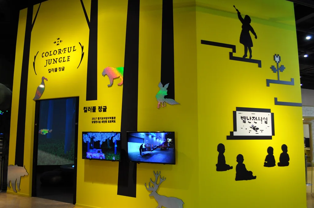 별난 전시실은 뉴미디어 기술을 토대로 서정적이고 창의적인 시각예술을 체험하는 신개념 예술체감 공간입니다. 멸종위기동물을 소재로 어린이들에게 환경과 생명의 소중함을 일깨워주는 미디어 체험전시 《컬러풀 정글》을 운영합니다. (주대상 : 유아~초등학생) 활동거리 1. 직접 그린 동물 그림으로 화면 속 정글 세계를 완성하고 자신의 행동에 따라 실시간 반응하는 미디어 정글 체험 2. 환경과 생명을 보호할 수 있는 미션 3종 수행 3. 경기도 내에서 보호하고 있는 야생 동식물 11종에 대해 알아보기 4. 컬러풀 정글에 살려낼 나만의 동물 그려보기 : 고슴도치, 도롱뇽, 집박쥐, 청호반새, 한국산개구리 등 경기도 보호 동물 5종 5. 《컬러풀 정글》이 만들어진 과정 영상 관람 교육적 효과 1. 전세계 멸종위기동물을 고찰하는 과정을 통해 자연환경과 생명의 소중함을 일깨울 수 있다. 2. 경기도 보호 야생동식물에 대해 알아보며 어린이들이 살고 있는 주변 지역에의 이해를 높인다. 3. 새로운 뉴미디어 예술체험을 통해 상상력을 고양하고 창의적 개입으로 상상의 미디어 정글을 함께 완성하며 협동심과 창의성을 개발한다. TAG #환경 # 생명 댓글[0] 저장 이전 목록 다음 콘텐츠 정보에 만족하십니까? 만족 보통 불만족 확인
