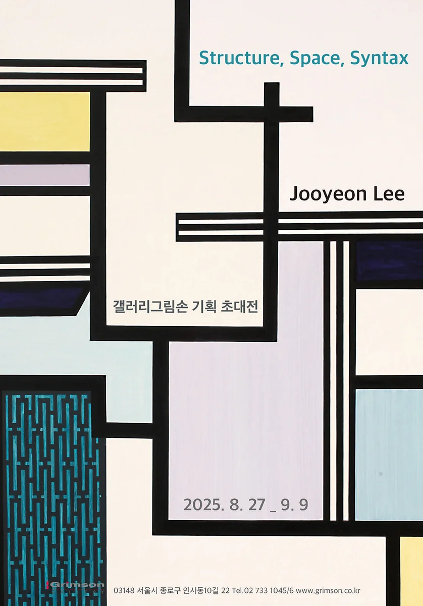 전시 개요 OVERVIEW 이주연 작가는 오랜전부터 전통문화의 이미지를 선과 면이라는 가장 기본적인 조형 요소를 통해 현대미술의 추상작업을 탐구해 왔습니다. 회화의 가장 기본인 점, 선, 면은 단순히 형식적인 요소가 아니라 작가의 세계가 담긴 출발점으로 회화의 근원이라 할 수 있습니다. 이러한 출발점으로 시작하는 작가의 작품에 끊임없이 나타나는 선과 면, 그것이 교차하고 반복, 연결되면서 생성되는 공간과 다층적 구조는 이주연 작가의 작품을 대표적으로 알 수 있는 조형적 이미지입니다. 작가는 평면을 입체로 확장시키거나 캔버스의 사각틀에서 벗어난 작품 또는 부조와 꼴라주 등 매번 새로운 작품스타일로 자신이 이야기하고자 하는 바를 다양하게 구현하였습니다. 선과 면의 결합은 전통 문양으로 면과 면의 연결은 새로운 공간 영역으로 나아가 새로운 영역은 건축적 구조로 전환되며 하나의 시각언어로 전달하기도 하였습니다.. 이러한 이미지는 구상적 이미지보다는 추상적 이미지로 표현되었습니다. 이번 갤러리그림손 전시 타이틀은 < Structure, Space, syntax >입니다. 타이틀에서도 알 수 있듯이 구조와 공간이 만나 작품의 형식적 문법을 만듭니다. 작가에게 구조는 선과 면이 이루고 있습니다. 이들의 관계는 공간이 생성되고, 그 공간들은 시각언어가 되어 새로운 질서를 만듭니다. 이러한 방식은 몬드리안이 가로·세로·색·면을 일정한 관계와 순서로 배열한 구성 원리와 맞닿아 있습니다. 작가의 작품을 보면 몬드리안의 구성과 한국 전통 책가도 구조를 연상할 수 있습니다. 이것은 이 모든 선과 면, 색, 문양이 어떤 관계와 구성으로 이미지화 되었는지 또한 어떤 의미를 가지고 우리에게 전달하고 있는지를 알 수 있게 그 역할을 하고 있습니다. 이러한 관계들이 어떻게 표현되었냐는 의미가 시각적 syntax(형식과 구성의 체계)인 것입니다. 작가는 2차원의 평면 위에 색과 문양을 더해 3차원의 공간을 창출하여 우리에게 새로운 공간감과 시각적 환영을 선사하고 있습니다. 마치 경계 너머의 아름다움, 미지와 무한의 영역을 암시하며, 그 선과 면의 관계속에서 다차원적 감각을 느끼게 합니다.