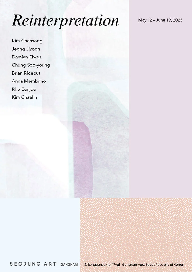 전시 개요 OVERVIEW 서정아트 상반기 기획전 Reinterpretation은 재구성이라는 큰 틀 안에서 파생한 네 가지의 테마로 엮은 전시로서, 시각적 현상과 내적 감각의 발현에 집중하여 이를 메타적으로 들여다보고자 국내, 외 작가 8인의 작업을 조명한다. 작업의 서사는 관객에게 닿는 일차적 관문인 공간뿐만 아니라 그곳을 점유하는 여러 요소들에 의해 늘 다르게 측정되고, 해석되어왔다. 구성적 기억(Constructive Memory)의 결과이기도 한 생각을 편집하고 각색하고 필요에 따라 미화도 멈추지 않는 작가들의 감각적 산물은 우리가 마주한 모든 것들이 결국 개인의 경험에 의해서 다르게 받아들여지고 재구성된다는 것을 인지하게 한다. 전시 주제인 ‘Reinterpretation’의 시작은 보이지 않는 사유와 가시적 시각물 사이의 균형과 호흡에 주안점을 두고 시작한다. 전시장 2층 Theme 1 – Space, Studio에서는 데미안 엘위스(Damian Elwes)와 정수영(Chung Sooyoung), 브라이언 라이더(Brian Rideout)를 소개한다. 데미안은 우리에게 익숙한 서양의 고전 화가들의 스튜디오를 재현하고, 재구성해서 사적인 공간을 공적 영역으로 치환한다. 그는 한 사람이 머물던 공간을 물리적 관점으로만 보지 않고 하나의 사조가 탄생한 최초의 시발점으로 여겨 신성한 출발 지점이라 여긴다. 또한, 개인의 사적 영역이 내밀하게 드러나는 정수영(Chung Sooyoung)의 작업은 정제된 구도와 틀을 벗어나 자연스러운 일상을 보여주며 새로운 의미를 생성한다. 정수영의 작품 속 각종 오브제들은 포토샵과 컴퓨터 프로그래밍을 통해 재배치되어 타인에게 자신의 내면을 내비치는 기능을 한다. 브라이언 라이더(Brian Rideout)는 온-오프라인 인쇄물에서 발췌한 각종 현대적 이미지들을 차용해 재구성하는 과정에서 전유(appropriation)의 한 방식을 택한다. 정적이고 평범해 보이는 작품 속 공간의 이미지는 불변하는 요소와 가변적인 요소가 공존하는 시대만의 전유물이기도 하다. Theme 2 – Scenery, Image는 자연물에서 얻은 심상이 직관적 형태를 떠나 완전한 추상의 형태로 이행하는 과정을 보여준다. 안나 멤브리노(Anna Membrino)의 작업은 자연에서 빌려온 소재에서 몇 가지 특징을 추출해 내적 시선이 전하는 아름다움을 캔버스에 담는다. 노은주(Rho Eunjoo)의 ‘Plant’ 연작 역시 스쳐 지나가는 도시의 한 장면을, 또 어느 한순간 특정 부분을 편집하는 방법으로 불완전한 기억에서 오는 모호한 감정을 상징적으로 묘사한다. 전시장 우측으로 이어지는 김채린의(Kim Chaelin)의 크고 작은 조각은 정적이고 고요한 심상을 깨뜨리며 현란한 색채로 물들어 곳곳에 놓여있다. 한정된 공간에서 할 수 있는 최대치의 유희(遊戲)를 유도하며 작품과 작품 사이의 거리를 확장하는 작은 조각들은 관람자로부터 스스로 놀이하기를 요구하기도 한다. Theme 3 – Movement’와 ‘Theme 4 – Expression 에서는 움직임을 지각하는 존재에 대한 고찰을 시도한다. 이 테마에서는 비언어적 감각을 깨우고 한발 더 나아가려는 김찬송(Kim Chansong)의 작업과 일상 속 풍경을 모노톤의 주조색으로 처리하여 색다른 시선으로 볼 것을 제안하는 정지윤(Jeong Jiyoon)의 작업을 볼 수 있다. 새롭고 낯선 시각으로 신체의 일부분을 확대한 김찬송의 화면은 물감 덩어리들이 맞닿아 겹침으로써 완성된 작가만의 신체적 언어이다. 이에 물감을 뿌리고 흘리는 드리핑 기법으로 회화의 고유한 물성과 특징을 드러낸 정지윤의 작업 또한 전시에서 궁극적으로 보여주고자 하는 재구성의 한 부분이다. 8인의 작업이 나타낸 재구성의 방식은 교란되어 나타나는 시각적 이미지 안에서 하나의 줄기를 찾아 꿰어가는 과정이라고 할 수 있다. 기억과 경험을 통해 얻은 결과물에 관객을 초대하여 페인팅과 조각, 추상과 구상, 또 과슈 작품이 어우러져 함께 호흡할 것을 기대한다.