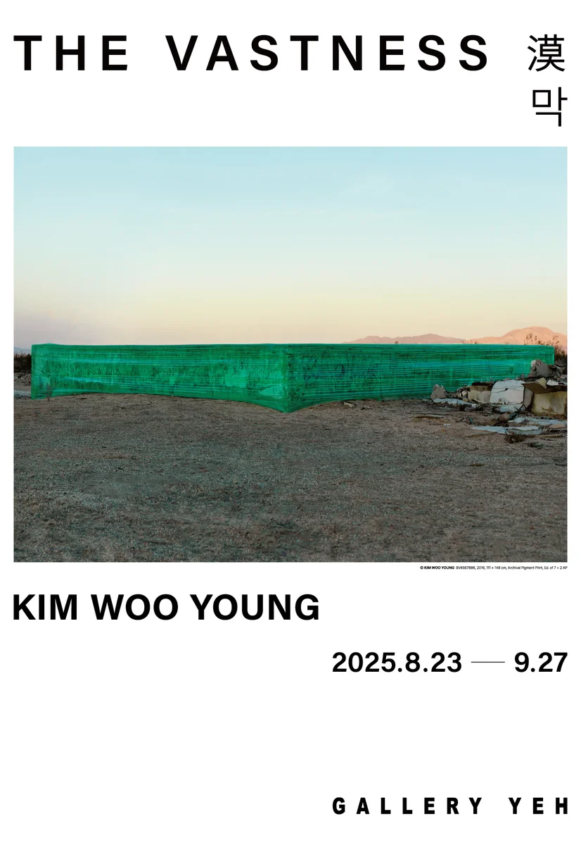 전시 개요 OVERVIEW DVL8084, 2015 111x148cm, Archival Pigment Print, Ed. of 7+2AP. / DVR8084, 2015 111x148cm, Archival Pigment Print, Ed. of 7+2AP. ©Kim Woo Young 풍경의 이야기들(The stories of landscape) 김우영은 최근 몇 년간 색채와 구도, 면으로 재해석한 미국 서부의 대로와 그 주변풍경을 어번 오딧세이(Urban Odyssey)시리즈로, 한옥의 주춧돌, 벽면과 기단의 고졸함을 고요의 시학(Poetics of Tranquility) 시리즈로 풀어냈다. 이번 전시에서 선보이는 사막(earth)과 래핑(wrapping), 빌보드(billboard) 시리즈는 앞선 작품들과 시간적으로 앞뒤하면서 영향을 주고받은 작품들이다. 미국 서부 모하비 사막을 통해 쓸쓸하면서도 숭고함의 풍경을, 버려진 가건물을 야광 테이프로 감싼 래핑 시리즈와 흔적이 고고학처럼 남은 빌보드를 통해 삶의 지층을 엿볼 수 있으니 모든 시리즈는 서로 얽혀있는 셈이다. 사막에 대한 소재로서의 흥미로움은 굳이 거론하지 않아도 될 터. 작가에게 사막은 ‘내밀한 은신처이자 인내를 배우는 깨우침의 장소, 영적인 위로와 안식의 집’(신혜경)이다. 그러나 무엇보다도 사막은 도시 삶과 환경에 극명하게 대비됨으로 인해 흥미롭다. 사막 안에서 우리는 머물러야하고 빛과 색채의 향연을 기다려야 한다. 이 머무름의 시간은 아도르노가 얘기했듯 예술 향유의 필요불가결한 시간 경험이다. 하지만 이는 예술 창작자에게도 대상을 향한 구원과 같은 시간이다. 머무름은 기다림과 다른데 이유는 머무름에는 어떤 결과와 미래의 대상을 기대하지 않기 때문이다. 무위의 산책자 같은 시간 경험인 것이다. 머무름을 사물의 증식에 반대하는 반자본주의적 행위로까지 해석하지만 무엇보다 머무름은 홀림, 어떤 대상에 경도하는 유일무이한 아름다움의 순간이다. 미적 황홀경을 잉태할 수 있는 시간이다. 김우영의 사막은 이러한 머무름의 순간, 영원한 찰나를 표준렌즈로 담았다 BV4567886, 2016 111x148cm, Archival Pigment Print, Ed. of 7+2AP. ©Kim Woo Young 도스토옙스키의 소설 속에는 삶을 대하는 태도에 대한 대사가 있다. 우리는 삶에서 늘 두 개의 심연을 동시에 관조해야 하는데 드높은 이상과 고귀함의 심연이 하나이고 가장 저열하고 악취 나는 타락의 심연이 다른 하나다. 이 대사는 김우영이 셔터를 누르기 위해 방랑을 자처하는 삶의 태도와 닮았다. 그가 지구의 속살인 사막을, 대로가 아닌 인적 없는 벌판과 그 위에 뼈처럼 서있는 빌보드와 가건물에 셔터를 누르는 건 유한과 무한, 세속과 영속의 두 심연을 오가는 행위처럼 해석된다. 그의 풍경 사진이 단순히 미적으로 아름다움에만 머물러 있지 않고 시간의 퇴적(사막), 삶의 흔적(빌보드), 빛(야광 테이프 래핑)을 염두하는 건 삶의 찬란과 비참을 동시에 사유한 결과일 것이다. NV2482, 2022 80x120cm, Archival Pigment Print, Ed. of 10+2AP. ©Kim Woo Young 신비, 꿈, 마법은 현실과 비현실, 자명한 사실과 불확실성, 즉 빛과 어둠의 동시적 긴장관계에서 생겨난다 -파트릭 모디아노, 『잠자는 추억들』 어떤 꿈이나 초현실이 삶과 연결되는 방식은 정확히 두 세계가 나누어지는데서 생기는 게 아니고 두 개가 어렴풋하게 겹쳐지는데서 생긴다. 그래서 꿈은 현실의 변형처럼 보이고 현실은 꿈을 속재료 삼아 발현되는 것이다. 풍경은 과거의 꿈과 삶이 뒤범벅된다. 가장 뜨겁고 환한 낮에 별이 보이지 않아도 안심하듯 파도 많은 밤에 섬이 보이지 않아도 순한 잠을 자듯. 절해처럼 그렇게. 풍경은 놓여 있고 삶은 계속된다