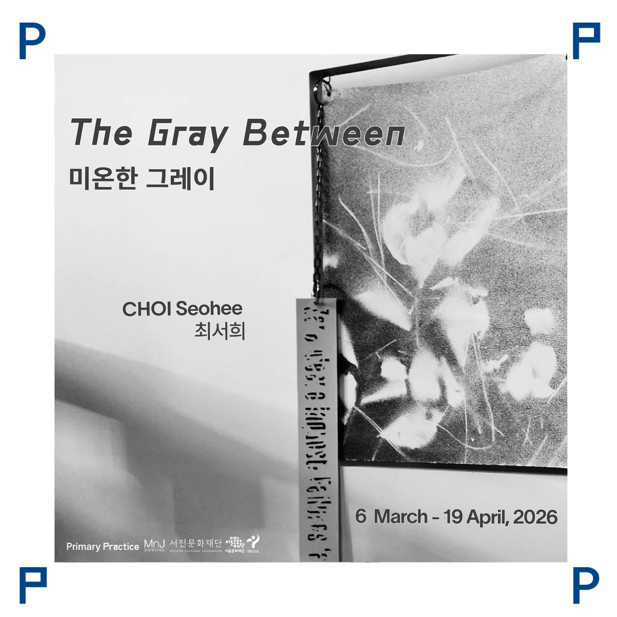 《미온한 그레이》는 과거 특정 사건에 관한 누군가의 ‘진술’이 가진 언어적 정보와 온전히 담아낼 수 없는 감정, 감각과 같은 비언어적 요소들을 양 축으로 한다. 최서희에게 진술은 편집된 기억과 과거의 감각이 교차하는 발화로서, 언어와 비언어의 경계에서 끊임없이 흔들리는 성질의 것이다. 전시에서 작가는 흑과 백, 양극의 거리와 긴장을 진술에 비유하고, 두 개의 항 사이 미묘한 경계를 공간적으로 조직한다. 그렇게 언어와 비언어의 엮임 속에서 듣지 못한 것과 전달되지 않은 것은 점차 감지된다. 참여작가: 최서희 기획: 프라이머리 프랙티스 (최희연) 사운드: 윤재민 공간 조성: 무진동사 사진: CJY ART STUDIO (조준용) 후원: 서울시특별시, 서울문화재단, MnJ 문화복지재단, 서전문화재단