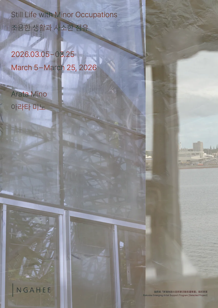 조용한 생활과 사소한 점유 — 사이의 상태를 바라보는 시선 아라타 미노의 개인전 《조용한 생활과 사소한 점유》(Still Life with Minor Occupations)는 도자기 인형 설치 작업 〈사소한 점유〉, 한국과 일본의 역사적 풍경을 담은 사진 시리즈 〈해안에서의 시선〉(Perspective on the Shore)과 〈온실로부터 바다에〉, 그리고 퍼포먼스 영상 〈숨을 이어가다〉(One Breath Followed by Another)를 함께 선보인다. 다양한 매체로 구성된 이 작업들은 하나의 전시 공간 안에서 교차하며, 물질과 신체, 그리고 시선의 층위를 통해 우리가 서 있는 세계의 구조를 드러낸다. 전시의 영문 제목은 ‘정물’을 뜻하는 회화 장르인 ’정물(Still Life)’를 연상시킨다. 그러나 여기서의 ‘정물’은 단순히 멈춘 사물의 묘사를 의미하지 않는다. 그것은 정지된 상태가 아니라, 복잡한 세계를 내포한 채 지속되는 삶의 형식에 가깝다. 거대한 역사와 정치적 사건 속에서도 일상은 멈추지 않는다. 오히려 그러한 역사적 구조 속에서 삶은 미세하게 흔들리며 계속 이어진다. 아라타 미노의 작업은 바로 이러한 ‘조용하지만 결코 고요하지 않은 상태’를 탐구한다. 겉으로는 평온하게 보이는 일상의 장면들 속에는 식민주의의 역사, 전후 국제 질서, 그리고 군사 동맹의 구조와 같은 거대한 역사적 힘이 미묘한 형태로 스며들어 있다. 작가는 이러한 구조를 직접적인 정치적 메시지로 드러내기보다, 사물과 풍경, 그리고 신체의 경험을 통해 서서히 드러나는 관계의 형태로 제시한다. 전시의 중심을 이루는 설치 작업 〈사소한 점유〉는 이러한 문제의식을 가장 직접적으로 드러낸다. 이 작품은 전후 점령기에 제작된 ‘미 점령기 일본제작(Made in Occupied Japan)’ 표기의 도자 인형을 주요 오브제로 삼는다. 이 표기는 제 2차 세계대전 이후 일본이 연합군의 점령 하에 있었던 시기(1945–1952)에 생산된 수출 공예품에 사용되었던 것으로, 전후 질서와 권력 관계의 흔적을 물질적 형태로 남긴다. 작가는 골동품 시장에서 수집한 이 인형들을 전시 공간 안에 배치하며, 점령기의 역사적 흔적을 현재의 시간 속으로 불러온다. 약 14~25cm 크기의 인형들은 전시 공간 속에서 하나의 작은 장면을 형성한다. 인형들은 천으로 감싸여 있으며, 그 주변에는 녹색 플라스틱 장난감 병사인 ‘그린 아미맨(green army men)’이 배치되어 있다. 어린이 장난감으로 널리 알려진 이 작은 병사들은 인형들을 둘러싸듯 포위한 형태를 이루며 배치된다. 이 장면은 전쟁과 점령이라는 거대한 역사적 사건을 직접적으로 재현하기보다는, 그것이 일상의 사물 속에 어떻게 스며들어 있는지를 암시한다. 여기서 ‘점유(occupation)’라는 개념은 단순한 군사적 의미에 한정되지 않는다. 그것은 공간과 존재, 기억과 시선이 서로를 점유하며 관계를 형성하는 상태를 가리킨다. 전후 점령기의 흔적을 지닌 작은 인형은 전시 공간 안에서 조용히 서 있지만, 그 내부에는 복잡한 역사적 시간과 권력의 구조가 내포되어 있다. 작가는 이러한 장면을 통해 거대한 역사적 사건이 어떻게 사소한 사물의 형태로 일상 속에 잔존하는지를 보여준다. 사진 작업 〈해안에서의 시선〉은 이러한 문제의식을 또 다른 방식으로 확장한다. 이 작업들은 비무장지대(DMZ), 진주만(Pearl Harbor), 그리고 부산-후쿠오카 해협과 같은 장소들을 병치하며, 동아시아와 태평양을 가로지르는 역사적 기억의 지형을 드러낸다. 서로 멀리 떨어져 있는 이 풍경들은 전시 공간 안에서 나란히 제시되며, 국가 간 관계와 역사적 기억의 층위를 드러낸다. 특히 이러한 풍경들은 단순한 풍경 사진이 아니라, 특정한 ‘위치(position)’에서 바라본 시선의 기록이기도 하다. 버스 창문, 페리의 갑판, 군함의 창문과 같은 장치들은 이 풍경들이 이동하는 신체의 경험 속에서 촬영된 이미지임을 암시한다. 이러한 장면들은 풍경 그 자체보다 어디에서, 어떤 위치에서 바라보고 있는가라는 질문을 관객에게 던진다. 이러한 문제의식은 퍼포먼스 영상 〈숨을 이어가다〉에서 신체의 차원으로 이어진다. 이 작업은 사무엘 베케트의 연극 「숨(Breath)」에서 영감을 받아, 인간 존재의 가장 기본적인 리듬인 ‘호흡’을 중심으로 구성된다. 한 번의 들숨과 날숨 사이에서 삶은 미세하게 흔들리면서도 계속 이어진다. 작가는 이러한 호흡의 리듬을 통해 인간 존재가 공간 속에 잠시 머무르는 일시적 존재(temporary existence)임을 드러낸다. 아라타 미노의 작업에서 물질, 풍경, 그리고 신체는 서로 분리된 요소가 아니다. 도자기 인형이라는 사물, 역사적 풍경을 기록한 사진, 그리고 숨을 쉬는 신체는 하나의 전시 공간 안에서 서로를 반사하며 새로운 관계를 형성한다. 이러한 관계 속에서 드러나는 것은 단순한 역사적 사건의 재현이 아니라, 서로 다른 시간과 장소가 교차하는 ‘사이의 상태(in-betweenness)’이다. 이번 전시는 이러한 사이의 상태를 탐구하는 과정이기도 하다. 일본 작가로서 작가는 한국과 일본, 그리고 미국 사이의 역사적 관계를 외부에서 관찰하는 위치에 서 있지 않다. 오히려 그는 그 역사적 구조 속에 이미 위치한 존재로서, 자신의 신체와 시선을 통해 이