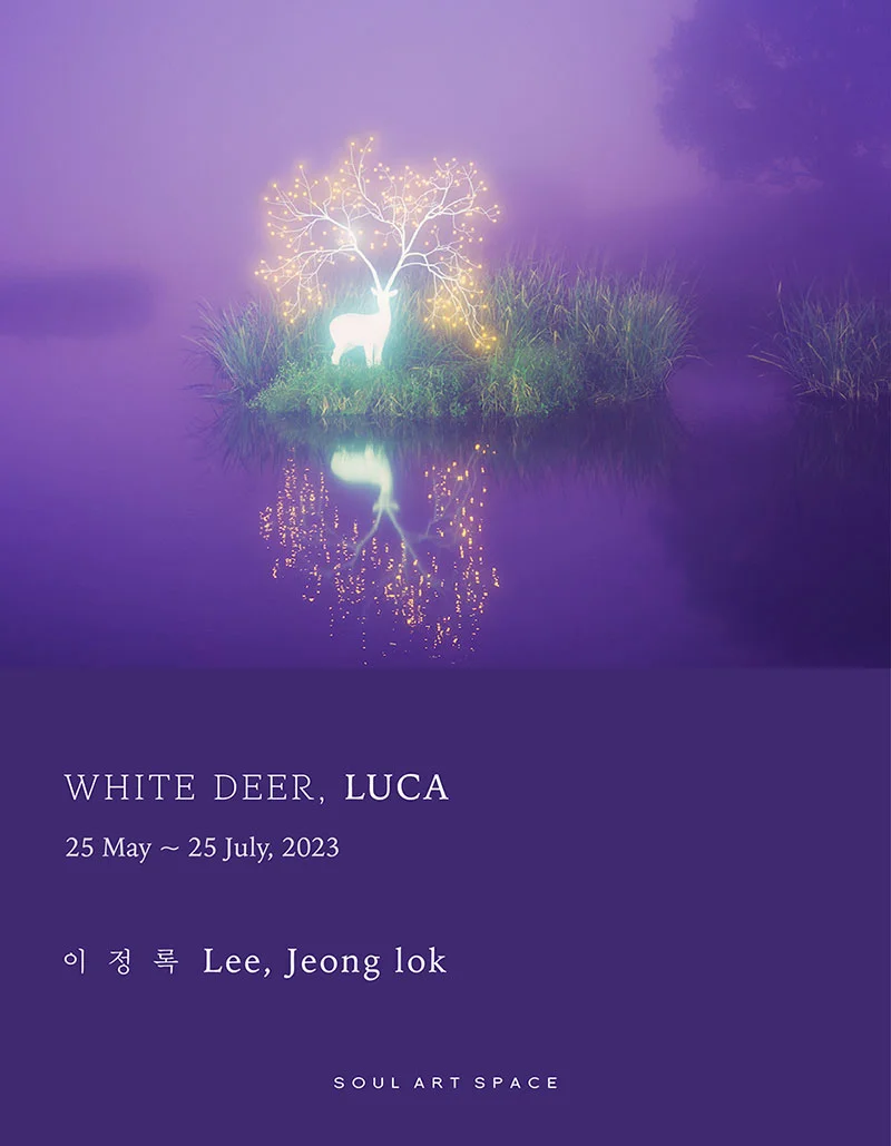 전시 개요 OVERVIEW 소울아트스페이스는 2023년 5월 25일(목)부터 7월 25일(화)까지 이정록의 展을 개최한다. 이정록은 존재하지만 보이지 않는 영적 세계를 가시화하기 위해 수많은 도전과 시행착오를 거치고, 다양한 실험과 연구를 통해 그만의 독창적인 작업방식을 구축해오고 있는 사진가이다. 국내는 물론, 세계 각지를 찾아다니며 사전답사와 테스트, 실제 촬영에 이르기까지 한 장의 사진을 위한 과정은 지난하다. 展에서는 남도의 풍경 속 무심코 지나치기 쉬운 익숙한 공간에 흰 사슴과 빛으로 경이로운 에너지를 형상화한 ‘LUCA(루카)’ 시리즈 신작 15점을 처음으로 공개한다.