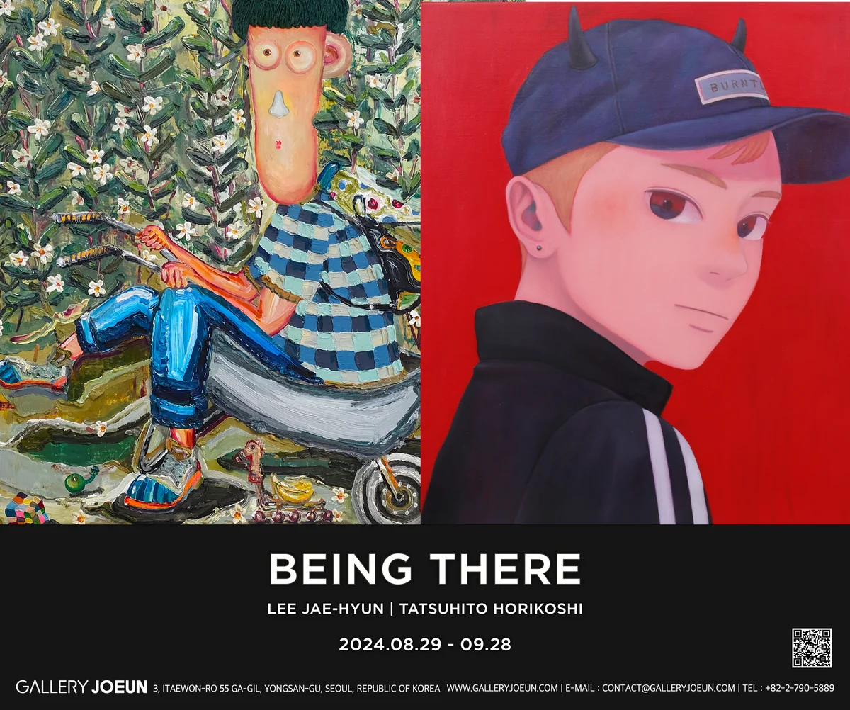 전시 개요 OVERVIEW 갤러리조은은 이재현(b.1979), 타츠히토 호리코시(b.1985)의 2인전 《Being There》을 8월 29일부터 9월 28일까지 개최한다. 현실과 가상을 오가며 인물을 표현하는 두 작가는 외로운 존재로서의 인간을 특유의 화법으로 표현한다. 삶의 기억을 예술로 치환하는 이재현(b.1972)은 과거 어린 시절부터 현재까지 작가의 삶에 자리 잡고 있는 사람과 사물에 대한 기억들을 캔버스 위에 재구성한다. 물감을 두텁게 바르는 임파스토(Impasto)기법으로 거친 듯 투박하게 표현된 사람과 사물은 세월의 흔적이 느껴지는 색채감과 함께 익살스러우면서 어딘지 모르게 외로워 보인다. 생업으로 바빴던 부모님의 부재로 고독한 유년기를 보낸 작가의 ‘정서적 허기’는 작품을 통해 재현되고 치유된다. 작품 속에서 작가는 가족들과 함께 따뜻한 거실에서 화목하고 평화로운 시간을 보내고(“People In the Room”), 간절하게 가지고 싶었던 장난감들로 풍족하게 둘러싸여 있다(“Obsession”). 현재 작가의 반려견 ‘딸기’가 작품 곳곳에 존재하는데, 작가는 기억을 단순히 가슴 한 켠에 묻어두는 과거의 시간이 아닌 현재 자신의 삶과 나란히 병치해 혼재시킨다. 이에 홍경한 미술비평가는 “이재현에게 예술은 기억의 호출이자 현존재Dasein에 대한 담담한 일기”라고 평하는데, 작품을 통해 비로소 어린 시절 그리운 아버지와 어머니, 누나 그리고 현재의 내가 함께 존재한다. 13점의 신작이 공개될 본 전시에서 “The painter’s still life”와 같은 대표 시리즈와 함께 서정적 풍경이 돋보이는 어린 시절의 자화상 “1983”을 최초로 공개할 예정이다. 건축과 조각 그리고 순수 회화를 전공한 작가는 2022년 개인전을 기점으로, 2023년 파리 개인전, 갤러리조은 개인전 그리고 화이트스톤 서울 개관전을 치르며 성공적 행보를 이어 나가고 있다. 2025년 화이트스톤 서울에서 개인전을 앞두고 있다. 도쿄를 베이스로 작업 활동을 펼치고 있는 타츠히토 호리코시Tatsuhito Horikoshi (b.1985)는 유년기의 순수성, 반항정신 그리고 열려 있는 성 정체성을 특유의 섬세한 조형 언어로 표현한다. 담담한 표정의 소년과 소년들이 클래식한 초상화 포즈로 관객 앞에 등장한다. 섬세한 보색 컬러 대비와 소묘를 연상시키는 세밀한 붓질, 투명함과 불투명을 오가는 채색법이 작품에 미묘한 뉘앙스를 선사한다. 서양화를 전공한 작가는 학교에서 배운 아카데믹하고 사실적인 기법보다는, 서브컬처로 여겨지는 애니메이션, 만화 스타일의 표현법에 예술적 근간을 둔다. 사실성이 배제된 인물들은 보는 이로 하여금 캔버스의 인물에게 더 쉽게 자신을 투영하게 만든다. 현실을 벗어나 이상적 존재가 되고 싶은 우리들의 변신 transformation 욕구와 동시에 잊어 버린 어린 시절의 호기심, 모험심, 꿈의 중요성이 환기된다. 오늘날 우리가 살고 있는 합리주의적, 성취 지향적 사회에서 인간이 가진 불확실함, 연약함이 점점 불필요한 것으로 치부된다고 생각한 작가는 의연한 소년과 소녀의 초상화를 통해 순수성에 대한 환기를 넘어 약자 그리고 외로운 소수자의 당당한 존엄성과 “온화한 인간애”를 표현한다. 본 전시를 통해 한국에서 최초로 공개되는 80호 대형 초상화부터 소품까지 다채로운 12점의 최신작을 선보일 예정이다. 일본 타마 미술대학교에서 서양화를 전공한 작가는, 2020년 홍콩 개인전, 2022년, 2023년 파리 개인전, 2024년 베이징 개인전을 치르며 전 세계에서 활발한 작품활동을 이어오고 있다. 한국에서는 2023년 KIAF Seoul에서 갤러리조은을 통해 전 작품 솔드아웃 되며 성공적인 데뷔를 치렀다. 일본 Mr. I 컬렉션, 스위스 장 피고치 컬렉션(Pigozzi Collection)에 작품이 소장되어 있으며, 올해 11월 뉴욕과(GR Gallery)과 12월 상하이(K11)에서 전시를 앞두고 있다. Gallery Joeun is pleased to present the duo exhibition “Be