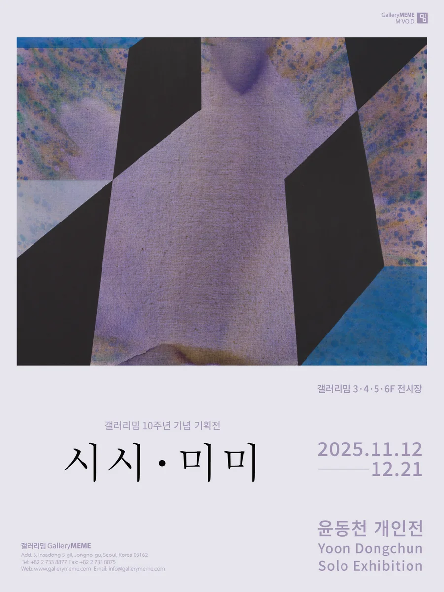 전시 개요 OVERVIEW 전시명: 윤동천 개인전 – 시시·미미 기간: 2025년 11월 12일(수) ~ 12월 21일(일) 장소: 갤러리밈 전관(3,4,5,6F 전시장) 운영시간: 오전 10시 30분 ~ 오후 6시 (전시 기간 중 휴무 없이 운영) 작가노트 시시•미미(微微) 전시에 부쳐 이 전시는 대단하고 멋진 것이 아니라, 시시하고 미미한 것에 대한 관심으로 비롯되었습니다. 이는 주제, 소재, 작업 방식(형식) 모두를 아우릅니다. 현실에서는 다소 영향력을 갖지만 미술로 표현하기에 적합지 않거나, 미술사적으로는 중요하지만 일반에게는 큰 의미를 갖지 못하는 내용이거나, 전반적으로 시각적으로나 의미로나 크게 볼품없다고 여겨지는 것들에 대한 환기와 주목입니다. 하지만 의외로, 그리고 당연히, 소중합니다. 과장되게 표현하면 늘 변혁의 시발점이었습니다. 평론 글 윤동천의 시시·미미 윤동천은 이번 전시에서 제목이 이야기하듯 ‘시시하고 미미한 것’들을 전시장으로 데려온다. 어떻게 시시하고 미미한 것들이 ‘미술’과 함께 있을 수 있을까. 그는 그만의 독자적인 어법을 이번 전시에서도 펼쳐놓는다. 이 펼쳐놓음의 기술(技術)은 미술하기의 원초적인 즐거움을 얼마만큼 현실 안팎에서 허용할 수 있는가의 문제를 데리고 논다. 미술이 다루기엔 너무 시시한 사물들을 대상으로 하는 하지만, 그가 촬영한 사진들의 구도와 형식, 표면의 질감을 보면 동서양 미술사의 오랜 작업들이 탐구해온 시각과 재현, 구상과 추상의 문제가 녹아있다는 생각이 든다. ‘시시 미미’를 발음할 때 느낄 수 있는 모국어의 리듬감은 신선하다. 이번 전시는 변주와 변형의 놀이에서 출발하는 듯보인다. 그 귀착점이 어디인지는 작가가 보여주는 색과 형태, 시각적이고 의미를 지닌 것들의 수집과 발견을 따라가보는 데서 각자 찾을 수 있을 것이다. 윤동천이 명명한 ‘시시한 것들’은 그가 목격한 것들이다. 또 이 ‘미미한 것들’은 그가 추상 회화 작업인 <단순연작>와 <덩이>들로 나아가게 하는 구체적 모티브가 된다. 어린아이의 놀이같기도 하고 철학적인 의제같기도 한 단어의 조합은 우리가 살아가는 현실의 다양한 측면과 유사하다. 그는 이렇게 서로 다른 것들의(미술=현실, 미술/현실) 조합을 통해 한국의 정신사적인 리얼리티를 눈앞에 마주하게 한다. 자, 전시장을 보자. 전시장의 각 층층은 윤동천의 미술관이며 동시에 한국의 현대사를 문맥화하는 시각적인 생활 박물관이다. 5층에 있는 ‘익숙한 문구들’ 연작을 보자. 합판에 레이저로 제시된 문구들에서 구체성과 보편성을 띠는 언어들의 합주를 볼 수 있다. 인생에 대한 처절한 경험 없이는 도달할 수 없는 구체성을 띠는 ‘생활’ 언어들이 인생의 쓴맛 단맛 짙은 맛을 알려준다. 전시장 통로의 벽면에 위치한 <기념일>(2005)은 어떤가. 종이 위에 잉크로 새겨진 이 작은 날짜들은 윤동천이 기억하는 한국 현대사의 ‘기념일’이다. 어린시절부터 성인이 될 때까지 그에게 파노라마처럼 펼쳐졌을 사건들이 작은 글자들로 낱장의 얇은 종이 위에 남겨져 있다. 이것은 일종의 ‘카운터 모뉴먼트(counter monument : 반기념비)’로서, 기념비의 육중함에 반대하는 또 다른 형식의 ‘기억 작업’이다. 작가는 이렇게 한국 현대사가 거대하게 기억해온 시간성을 윤동천 개인의 감각으로 뒤집는다. 이때 개인은, 작가가 오랜 시간 이야기해왔듯 공공적 실천과 집단의 무의식을 외면하지 않는 개인이다. 윤동천의 미술은 그러므로 풍자가 아니라 다른 방식의 기억이다. 또 이것은 미술과 현실의 질긴 관계를 그의 식으로 말하는 행위다. 6층에 자리한 <시시한 오브제> 연작에서 작가는 현실의 사물에 깃든 관습을 현실의 지리멸렬한 통념들과 맞부딪히게 한다. 빗자루, 펜, 요강, 톱에 이르기까지, 작가는 일상에서 언제나 주변부의 자리를 차지하거나 ‘이것이 거기 있다’는 식의 존재하는 것조차 알아차리기 힘든 미약한 사물들을 예의 주시하게 만든다. 윤동천이 붙인 작업의 제목은 작업의 일부가 되어, 관객과 작업이 만나는 시간과 공간을 확장시킨다. 그래서 우리