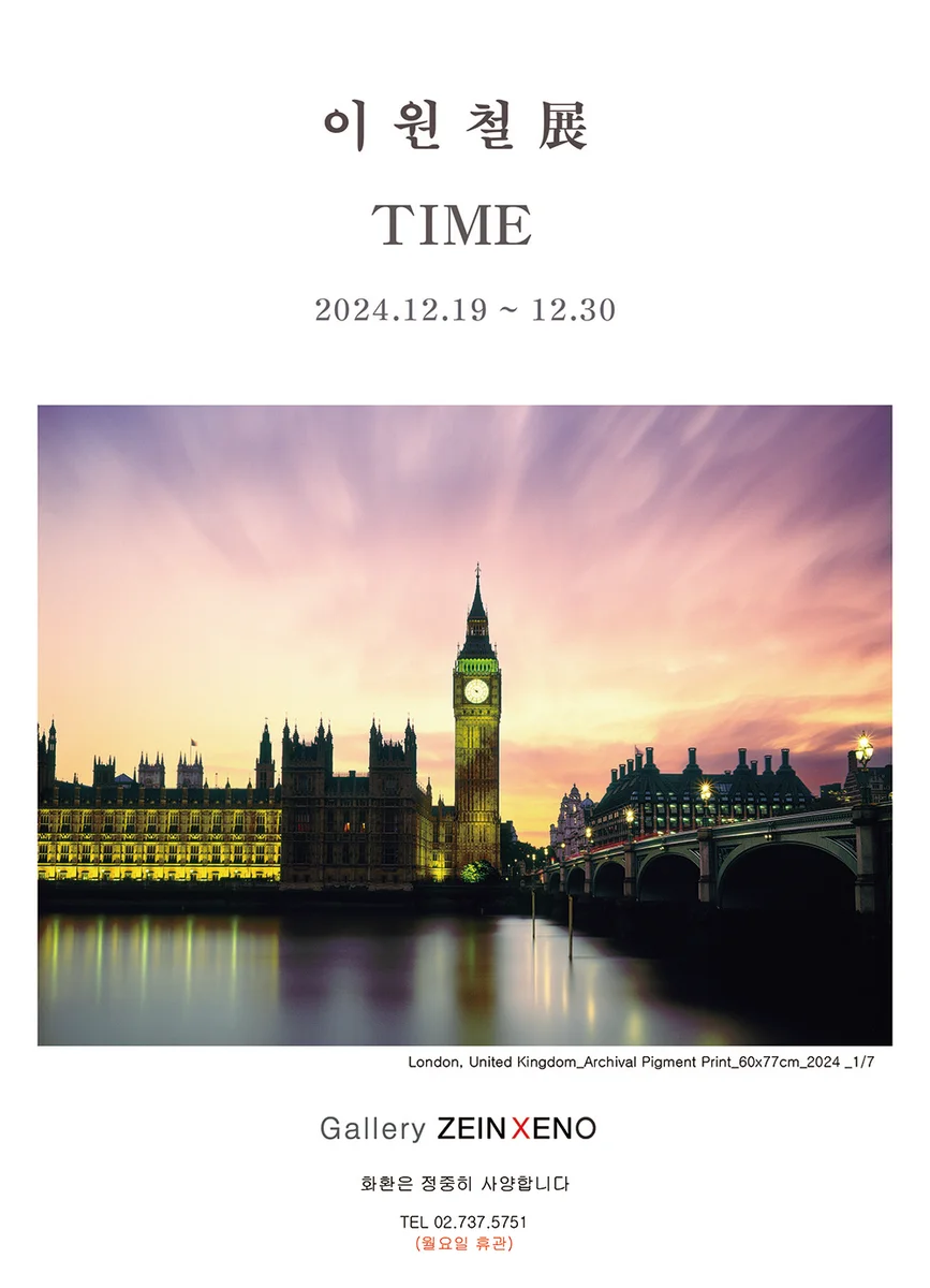 전시 개요 OVERVIEW 유럽의 오래된 건물에는 대개 시계가 있다. 시계가 있는 건물들은 종교적 정치적 사회적 상징성을 띠고 있는데 높은 건물을 짓고 그 위에 시계를 설치하는 데는 단지 시간을 알려주기 위한 기능 외에 다른 이유가 있을 것이라는 것에 작가는 천착한다. 이원철 작가는 <TIME-시계 밖의 시간>전을 통해 시계의 상징성과 시간의 의미를 탐구하게 된다. 현대사회 특히 대도시에서 시곗바늘의 지침에 따라 생활하고 있는 현대인들의 삶을 반추해 본다. 전제군주나 종교가 지배하던 시대에는 권력의 상징이 되었고 오늘날은 모든 일상의 기준이 되는 ‘시계‘라는 오브제를 통해 시간의 의미를 찾고자한다. 이원철 작가는 시계 속에 시간이 존재하느냐는 질문에 대해 “ 농촌 생활을 예로 들면, 농사를 짓는 사람들에게 시계 속의 시간은 무의미하다. 계절마다 해가 뜨고 지는 시간 다르기 때문에 그들에게 필요한 건 자연의 시간이다. 동지와 하지의 해가 떠 있는 시간을 비교해 보면 6시간가량 차이가 난다. 6시간의 차이는 도시에선 오차라고 할 수 없을 만큼 큰 시간의 폭이다.”라고 답한다. 그에게 있어 시간은 모든 곳에 존재하지만 장소나 상황에 따라 상대적인 개념이라는 것이다. 그는 시계를 통해 시간에 대한 담론을 풀어내고, 시계 속에서 시간의 존재를 유추하고 추출하는 작업을 이어간다. 이미지로 설명하자면 시계 속에서 시간을 지시하는 시계 바늘을 사라지게 하고, 주변의 변화 (사람들의 움직임, 나뭇가지의 흔들림, 구름의 흐름)를 통해 시간을 보여주는 형식을 취하고 있다. 이렇게 생성된 이미지 속에 시계는, 눈금만 존재하고 시간을 나타내는 시계바늘은 사라지게 되며, 그 이미지는 비현실적으로 보이게 되고 시간의 존재에 대해 다시 생각하는 기회가 된다는 것이 작가의 말이다. 아울러 사진이라는 매체의 특성상 시계에 대한 기록적 의미도 갖는 전시로 시간의 의미를 되새기는 연말에 잘 어울리는 전시다.