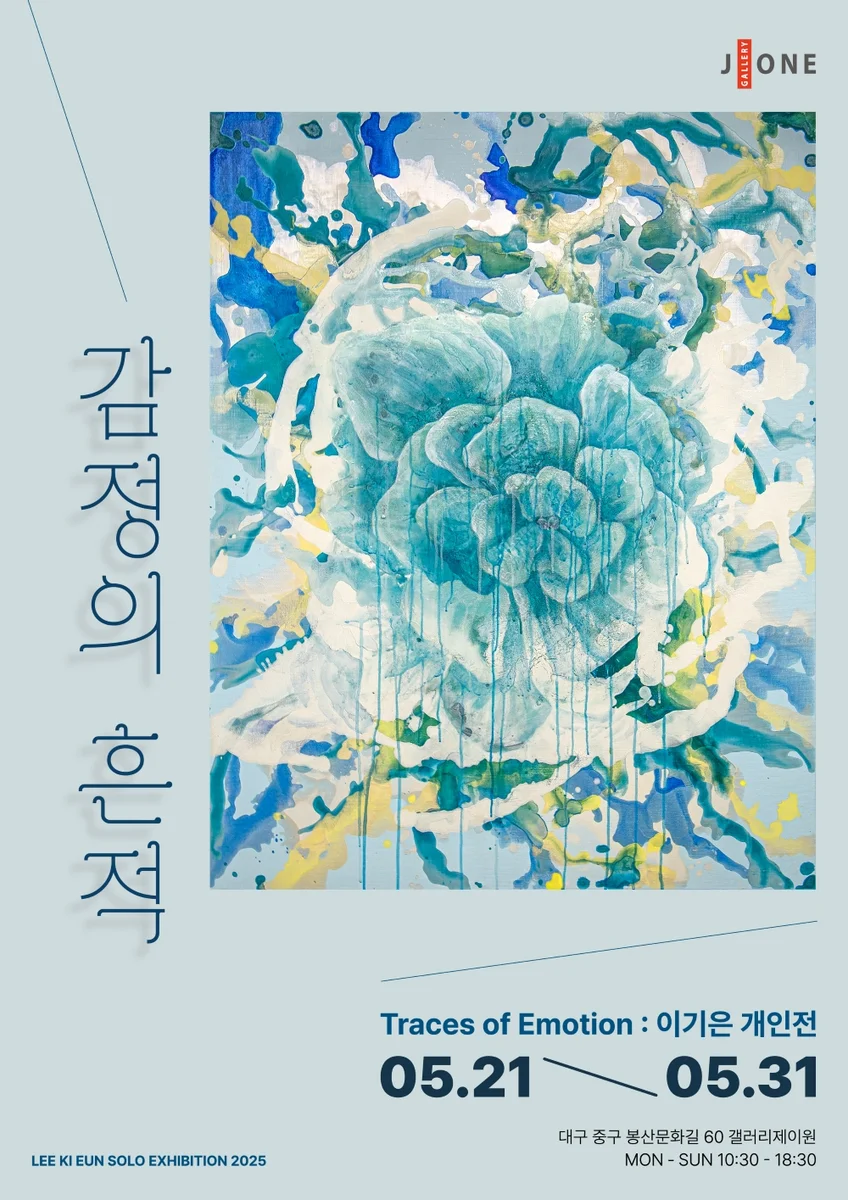 전시 개요 OVERVIEW 전시 개요 ▪️ 전시 제목 : 이기은 개인전 – 감정의 흔적 ▪️ 전시 장소 : 갤러리 제이원 (대구 중구 봉산문화길 60) ▪️ 전시 기간 : 2025. 05. 21 ~ 05. 31 ▪️ 관람 시간 : 10:30 ~ 18:30 ▪️ 전시 문의 : 053-252-0614 감정의 흔적 일상은 끝없이 연결된 화면과 알림으로 가득 차 있다. 우리가 모르는 사이, 정보의 홍수는 뇌가 숨 돌릴 틈을 빼앗아 불안과 초조를 일상으로 만들고, 성과 중심의 조직 문화는 작은 실패에도 과도한 죄책감을 심어준다. 여기에 타인의 ‘완벽해 보이는’ 삶과의 비교가 더해지면 스스로를 부적격하다고 느끼는 순간이 잦아지고, 결국 마음의 병이 찾아온다. 이기은의 회화는 바로 이러한 현대 사회의 감정 소진을 응시하며 시작된다. 10년이 넘는 직장 생활 속에서 억눌린 우울과 불안을 경험한 작가는, 다시 손에 붓과 물감을 쥐었다. 캔버스 위에 유채 물감을 과감히 쏟아 붓고, 물감이 흘러내리고 번지며 마르는 과정을 지켜보는 순간은 작가에게 일종의 명상이자, 억눌린 감정이 겹겹이 쌓인 내면의 물결을 드러내는 통로가 되었다. 작가는 “감정은 내면 깊은 곳에서 보내온 본능의 메시지”라 말한다. 씨앗에서 발아해 꽃을 피우듯, 감정 또한 환경과 받아들이는 방식에 따라 다양한 모습으로 드러난다. 꽃의 색과 형태에서 시각적 모티브를 얻어 캔버스에 피워낸 작업은, 억압된 감정의 발단과 성장, 결실을 압축적으로 보여 준다. 때로는 꽃 없이 액체만으로 작업하기도 하는데, 이는 감정의 유동성과 강도를 강조하기 위함이다. ‘속이 끓는다’, ‘사랑이 흘러넘친다’ 같은 언어적 비유들이 시사하듯, 물감의 흐름과 번짐은 찰나의 감정이 흘러간 자리에 남긴 잔상을 시각화한다. 전시 작품명은 모두 ‘5월의 감정기록’ 처럼 표기되어 있다. 이는 단순한 시간 표시가 아니다. 매달 변화하는 감정의 결을 ‘솔직하게’ 기록한 감정 일기이며, 잊혀진 감정들을 다시 찾기 위한 이정표다. 관객은 캔버스 앞에 서서 물감의 흐름과 꽃의 형상이 전하는 온도를 온몸으로 느끼고, 자신만의 감정 지도를 그려 볼 수 있다. 우리가 감정을 돌봐야 하는 이유는 분명하다. 억눌린 감정은 결국 스트레스와 불안으로 되돌아와 삶의 중심을 흔들고, 자기 이해와 회복력을 약화시킨다. 반면 감정을 인정하고 표현할 때 우리는 스스로의 욕구와 가치를 명확히 인식하며, 마모된 일상 속에서도 균형을 찾을 수 있다. 또한 솔직한 감정 표현은 타인과의 진정한 공감과 연대로 확장되어, 개인을 넘어 사회적 치유의 장을 만들어 준다. 이 전시는 바쁜 일상 속에서 스스로를 잃어버린 모든 이들에게 작은 치유의 초대장이다. 캔버스 위 꽃잎 하나하나와 번지는 물감의 자취는, 우리가 흘려보낸 감정의 파편을 다시 모으는 기록이자 제안이다. 잠시 걸음을 멈추고, 내면의 목소리에 귀 기울이며 감정을 온전히 마주해 보시길 바란다. 그 순간이야말로 진정한 치유의 시작이 될 것이다.