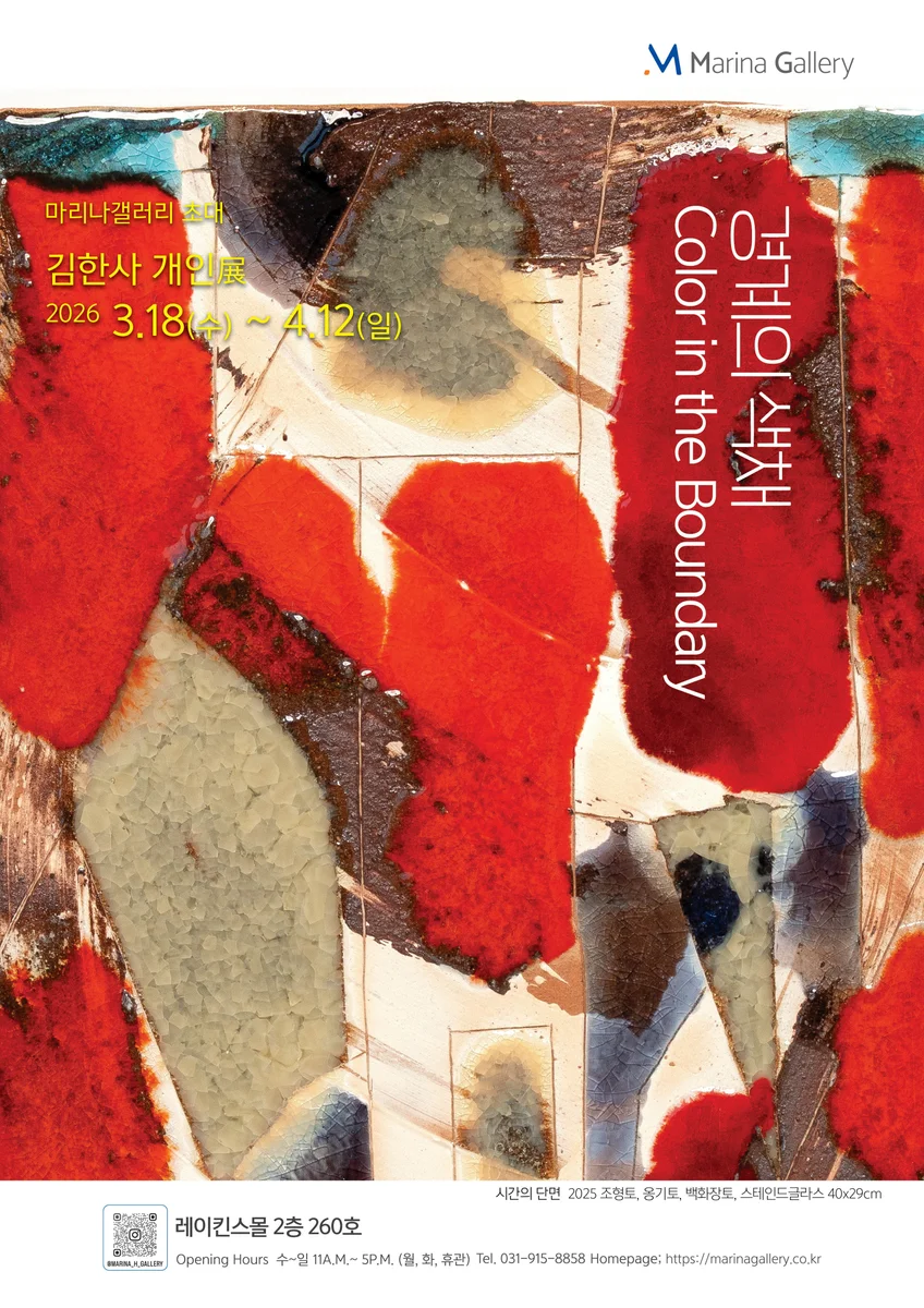 개요 전시 > 경기 전시 기간 2026.03.18.(수) ~ 2026.04.12.(일) 장소 마리나 갤러리