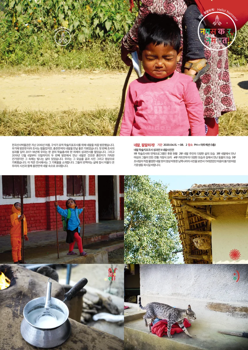 전시 소개글 전곡선사박물관은 지난 2016년 여름, 구석기 유적 학술지표조사를 위해 네팔을 처음 방문했습니다. 우기에 방문한 터라 조사는 힘들었지만, 총천연색의 네팔을 만날 좋은 기회였습니다. 첫 번째 조사의 성과를 담아 2018~2019년에 우리는 학술총서와 성과전을 열었습니다. 그리고 2019년 12월 6일부터 13일까지의 두 번째 방문에서 만난 네팔은 건조한 흙먼지가 가득한 건기였지만 그 속에는 빛나는 삶이 있었습니다. 우리는 그 모습을 긁과 사진 그리고 영상으로 기록했습니다. 이 작은 전시에서는 그 기록물을 소개합니다. 그들이 반짝이는 삶에 잠시 머물다 온 우리의 시선과 함께 총천연색 네팔 속으로 초대합니다. #네팔 # 학술지표조사성과전 # 학술총서 이전 목록 다음 콘텐츠 정보에 만족하십니까? 만족 보통 불만족 확인