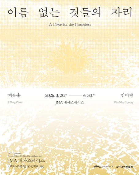 공지사항 세상은 대부분 이름을 모르는 것들로 이루어져 있다. 들판의 잡초와 농작물, 계절에 따라 변하는 나무와 하늘, 그리고 일상의 주변을 이루는 수많은 생명들은 특별히 주목되지 않은 채 삶의 배경으로 머문다. 우리가 살아가는 세계는 종종 힘과 권력을 중심으로 조직되며, 그 속에서 많은 존재들이 쉽게 주변으로 밀려난다. 인간 역시 이러한 구조 속에서 자연을 지배하거나 이용하는 대상으로 바라보기도 한다. 그러나 예술은 때때로 그 배경에 머물던 존재들을 화면의 중심으로 불러내며, 우리가 미처 인식하지 못했던 세계의 감각을 드러낸다. 《이름 없는 것들의 자리》는 1990년대 초부터 전북 지역에 정착하여 각자의 방식으로 작업을 이어 온 지용출과 김미경의 작품을 살펴본다. 이를 통해 자연과 삶을 바라보는 서로 다른 시선이 어떻게 하나의 감각적 지평 안에서 만나는지를 조망하고자 한다. 두 작가는 한국민족미술인협회 활동을 통해 만나 지역을 삶의 기반으로 삼고 주변의 풍경과 존재를 꾸준히 관찰해 왔다. 그러나 그 관심이 화면에 드러나는 방식은 서로 다른 방향으로 전개된다. 지용출의 작업은 나무와 농작물, 들판의 작물처럼 우리가 일상에서 마주하는 자연의 존재들을 화면에 담아낸다. 그러나 단순한 재현에 그치지 않고, 무분별한 도시 개발과 농업 환경의 변화와 같은 사회 구조 속에서 주변으로 밀려나는 것들에 주목하며, 이를 통해 권력에 대응하는 시선을 드러낸다. 특히 우루과이라운드 이후 농산물 시장 개방으로 농업 기반이 흔들리던 시기, 농작물은 사회 구조 속에서 밀려나고 착취당하는 삶의 현실을 드러내는 상징으로 나타난다. 지용출이 풀을 통해 사회 속 사람들의 삶을 대변한다면, 김미경에게 풀은 작가 자신이 동일시하는 존재로 나타난다. 김미경의 작업은 하늘과 땅, 들풀과 잡초와 같은 자연의 요소들을 차분한 색과 여러 겹의 층으로 쌓아 올린 화면에 펼쳐 놓는다. 화면 속 풀은 연약하지만 끊임없이 되살아나는 생명이며, 서로 모여 거대한 힘을 이루는 민중을 떠올리게 한다. 이러한 풀은 다른 존재들에 비해 열등하거나 주변적인 것이 아니라 스스로의 생명력과 잠재적 힘을 지닌 대등한 존재로 드러난다. 두 작가의 작업은 자연을 인간이 지배하고 이용하는 대상으로 바라보는 익숙한 인식에서 벗어나게 한다. 이들의 화면에서 자연은 단순한 대상이나 배경이 아니라 인간과 위계 없이 관계를 맺는 하나의 존재로 나타난다. 이러한 시선은 인간과 비인간의 관계를 다시 생각하게 하며, 늘 곁에 있었지만 쉽게 호명되지 않았던 것들을 인식하게 한다. 숲과 풀의 공간으로 이어지는 전시를 통해 우리는 우리가 살아가는 세계와 그 안의 존재들을 새롭게 바라보게 된다. 공연장 정보 대아수목원 주 소 전북특별자치도 완주군 동상면 대아수목로 94-34
