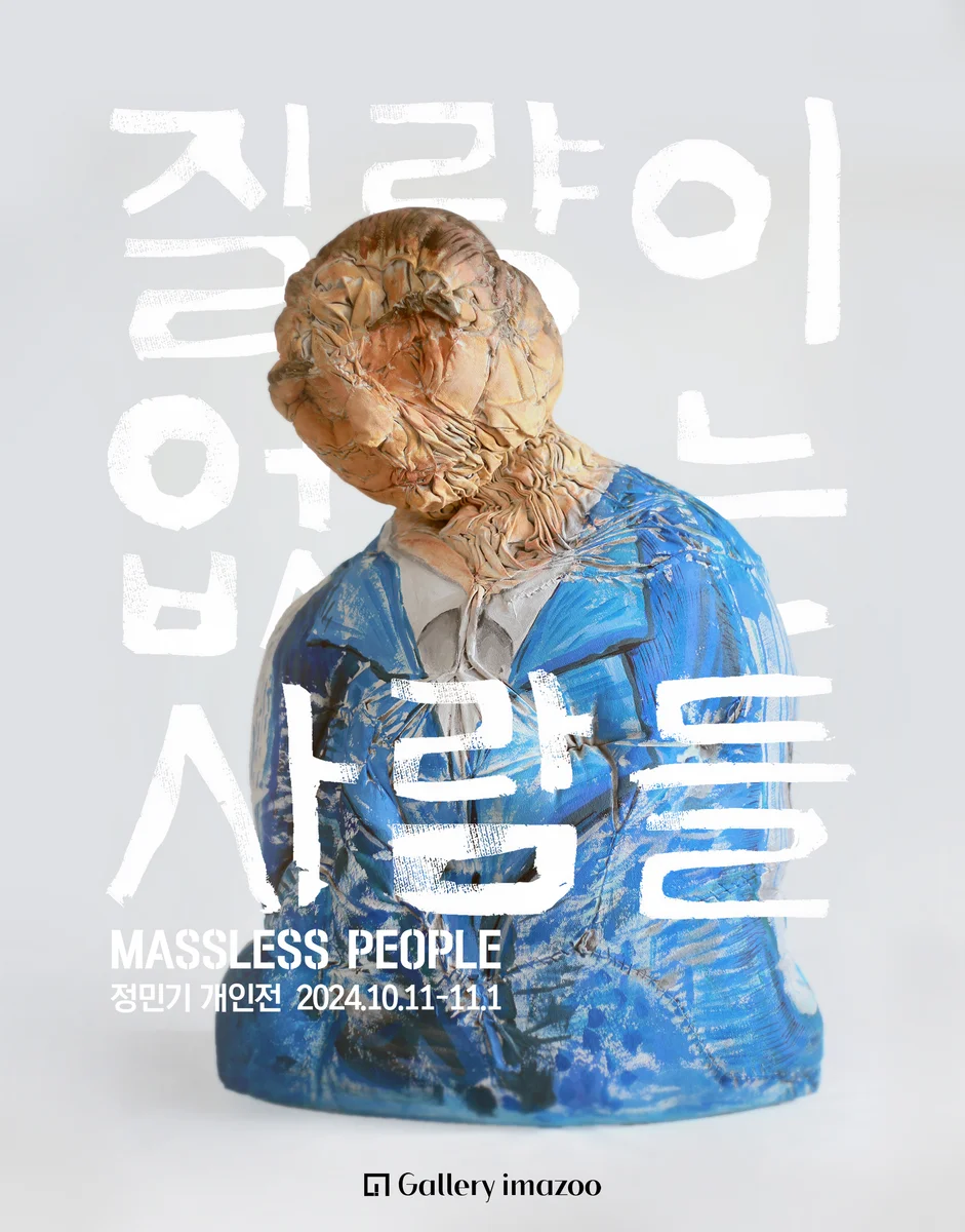 전시 개요 OVERVIEW 오는 10월 11일부터 11월 1일까지 약 3주간 정민기 작가의 <질량이 없는 사람들> 전시가 개최된다. 작가는 실체가 없거나 질량이 수시로 변화하는 사람들을 ‘질량이 없는 사람들’이라고 비유했다. 수십억 명과 함께 살아가지만, 작가가 그리는 사람들은 그 중에서도 실체가 희미한 이들이다. 그들은 ‘신화 속 주인공’이거나 ‘인격화 된 추상적 개념’, 혹은 금방 나타났다가 사라지는 ‘미디어 속 인물들’이며, 서서히 사라져가는 ‘동시대 사람들’이다. 빠르게 변화하는 인간관계나 정보들 사라지는 정체성들도 ‘질량이 없는’ 상태로 볼 수 있다. 우리는 수많은 사람들과 연결되고 스쳐 지나가지만, 그중 대부분은 우리의 기억에서 점차 사라져 간다. 빠르게 변화하고 사라져가는 현대사회, 인간 관계 등의 내용을 주제로 작가는 천, 실, 바늘, 재봉틀 등 다양한 방법과 기법을 사용하여 이야기를 풀어낸다. 천 위에 실과 바늘 또는 공업용 재봉틀을 이용하여 그림을 그리는가 하면 천으로 형태를 만들어 형상을 만들고 해체하기도 하며 작가만의 언어로 표현한다. 재봉틀로 드로잉을 한 작업을 보면 재봉틀의 빠른 봉제 속도를 컨트롤하며 의도되어 있지만 즉흥적인 박음질 선으로 그림을 그린다. 평면부터 입체, 다양한 물성 등 폭넓은 스펙트럼 안에 다채로운 이야기를 펼칠 예정이다. 질량이 사라지고 껍질만 남았다. 그 껍질에는 인간의 무늬가 남아 있다. 인간의 무늬는 철학, 문학, 사학 등 인간 고유의 정신 활동을 나타내는 ‘인문’이다. 삶은 고유한 무늬를 만들어 가며, 타인의 삶과 구별된다. 죽음 이후에는 그 삶의 무늬만 남는다. 내가기록한 무늬는 보이지 않는 사람들, 지나간 사람들, 사라진 사람들이다. 그들은 역사 속에 남아 있지만, 실체가 없거나 기억 속에서 희미해진 사람들이다. 보이지 않는 사람은 고대 신화 속 주인공이거나 의인화된 추상적 개념이다. 지나간 사람은 역사에 이름을 남겼으나 실체가 흐려진 이들이며, 사라진 사람은 한때 실재했으나 이제는 기록과 기억 속에서조차 사라진 이들이다. 나는 삶과 죽음, 영속성과 소멸에 대한 고민을 다룬다. 작품이 오래 보존되어야 한다는 집착에서 벗어나, 구기고 봉합하며 찾은 형상과 해체 후 발견한 우연의 무늬가 서로 연결되어 있음을 표현했다. 삶의 무늬는 개개인의 유한한 생명 활동에서 비롯된다. 나는 사라지고 소멸하는 사람들의 모습을 형상화하고자 했다. 바늘과 실은 내가 발굴한 보이지 않는 것들의 형체가 되었다. 수많은 사람들과 삶의 모습을 기록하며 나 자신도 반추할 수 있었다. 또한 인간을 넘어 다양한 생명체와의 공존을 위해 노력하는 동시대의 종들에 대한 존중도 담아내고자 했다. 사라진 질량을 찾아주는 것이 마치 나의 소명처럼 느껴진다. -정민기 작가노트중