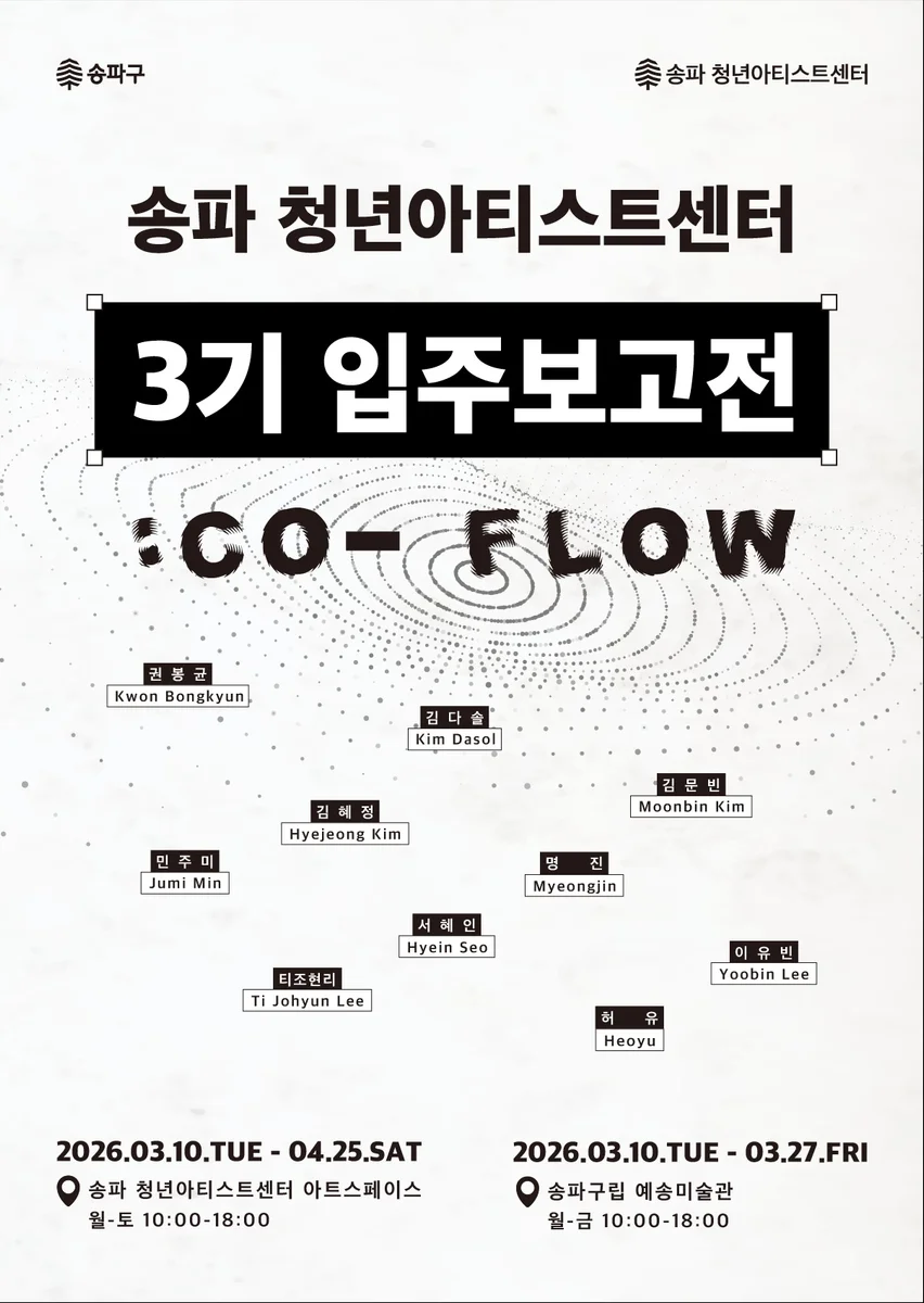 2026.03.10.(화) ~ 2026.04.25.(토) 장소 송파청년아티스트센터, 예송미술관