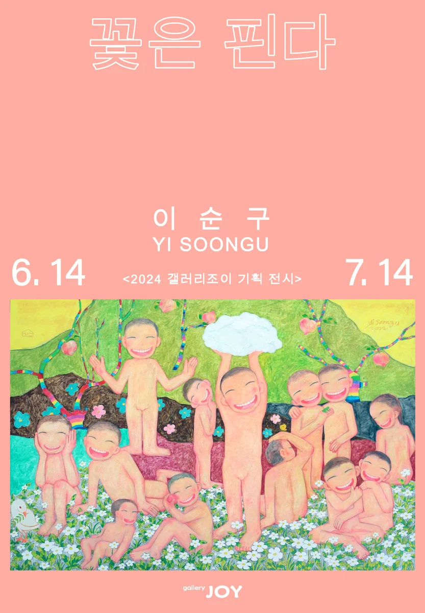 전시 개요 OVERVIEW 싱그러운 신록의 계절 6월에 ‘웃는 얼굴’ 이순구작가의 -꽃은 핀다-로 기획전을 마련하였다. 각자가 처한 힘겨움 속에서도 밝은 날을 기다리는 희망과 꿈으로 모든 감정을 내려놓고 군더더기 없는 <웃는얼굴>을 보며 그냥 덩달아 웃어보기를 바란다. 아기의 웃음, 허탈해도 맑은 웃음, 걸걸해도 투명한 웃음, 천진난만하게 장난스런 웃음, 까르르 터트리는 어린이들의 웃음은 생각만하여도 유쾌함을 가져온다. 사람과 사람사이의 더 많은 웃음이 온 세상을 평화롭게 하길 바란다. 내가 그리는<웃음>은 모든 감정을 내려놓은<무명 無名한 맑은 웃음>이었으면 한다. 그림을 대할 때 덩달아 그냥 좋은 그런 웃음 말이다. 오래전부터 관심을 둔 것은 기교 없어도, 예스럽고 소박한 맛이 드러나는 친근감과 천진 한 멋이었다. 웃음은 이것과 통한다고 생각한다. 세련되어 뚜렷하게 드러나는 것보다 조금은 미숙하고 투박한 맛을 내는 오래된 질그릇 같은 웃음을 찾을 수 있을까 고민 했다. 시간의 흐름에 의해 다듬어지고 숙성되면 품세가 깊어지고, 그 속에서 배어 나오는 아름다움이 깃들게 된다. 아름다움이란 한 아름 가득히 품는 너그러운 품성과 이것이 오직 이것일 때, 그것이 오직 그것일 때, 내가 오직 나 다울때를 이르는 것이라 한다. 나는 이처럼 본연의 근원에 근거한 자연스럽고 아름다운 웃는 사람의 모습을 그리고 싶었다. 이따금 말하지만, 웃음은 자연 상태에 가까우며 ‘스스로 그러한 것’이다. 내가 그리는 그림은 웃음의 기호이다. 사람과 사람 사이에 피어나는 기호, 수 없이 많은 웃음과 사라진 웃음, 그러나 언제든 만들 수 있는 사람들의 웃음, 나는 그것을 그리고 있다. -이순구 작가노트 중-