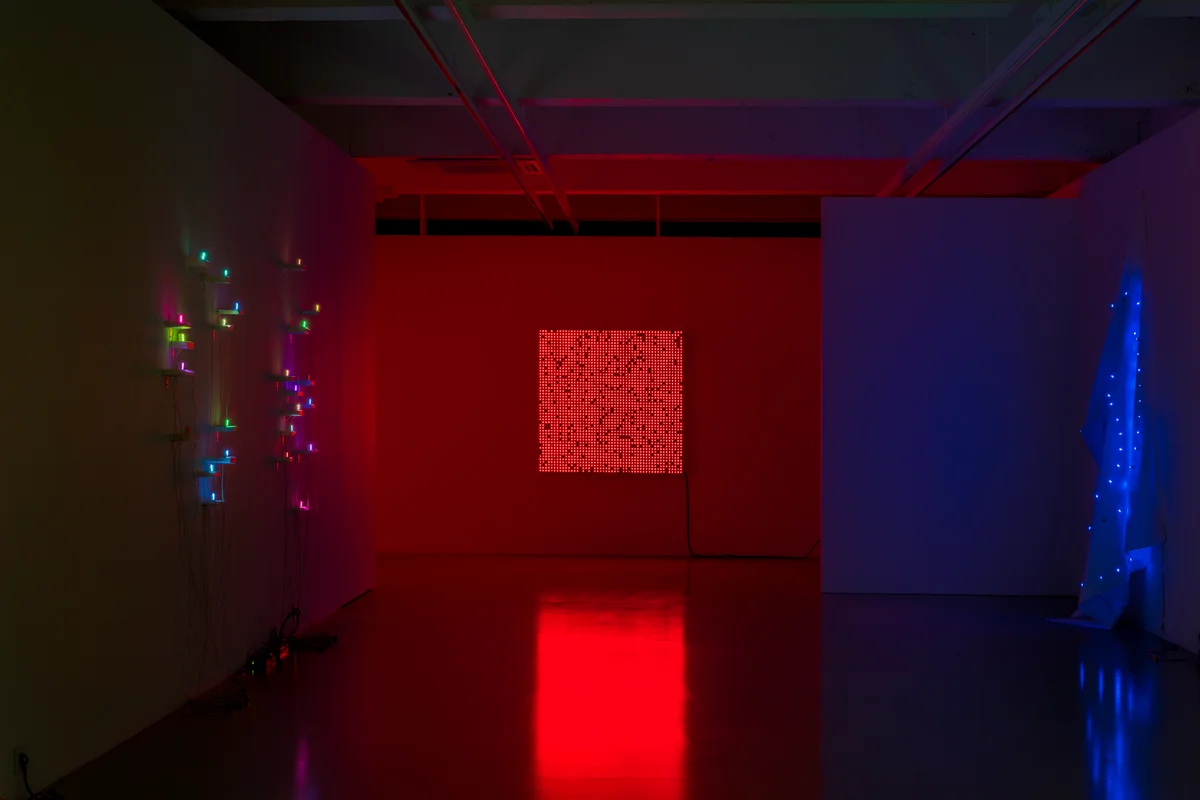 전시 개요 OVERVIEW 갤러리바톤은 11월 26일부터 2021년 1월 8일까지 세계적인 현대미술가 미야지마 타츠오(Tatsuo Miyajima, b. 1957)의 개인전, 《Connect with Everything(모든 것은 연결된다)》을 개최한다. LED, IC 등 전자 소재가 가진 시각적 기능성을 자신의 조형언어로 승화시킨 미디어 기반 작업으로 국제적 명성을 이어온 미야지마는 이번 전시에서 대표작인 LED 시리즈 및 최근작인 페인팅까지 자신의 작가 커리어를 아울러 조망할 수 있는 기회를 선사한다. 특히, 미국 내 첫 대형 미술관 개인전이었던 2019년 산타바바라 미술관(Santa Barbara Museum of Art, US) 전시를 시작으로 작가를 포함한 여섯 명의 일본 현대미술 거장들의 특별전인 모리미술관(Mori Art Museum, Japan)의 《STARS》전과, 치바 시립미술관(Chiba City Museum of Art, Japan) 개인전 《Chronicle 1995–2020》가 현재 열리고 있는 등 작가에 대한 국제 미술계의 관심이 고조된 상황에서 열리는 국내 개인전이라는 점에서 큰 의의가 있다. 미야지마 타츠오와 함께 즉각적으로 연상되는 점멸하는 숫자 LED(발광 다이오드)는 1986년 도쿄 예술 대학(Tokyo University of the Arts)에서 석사 학위를 마치고 《제43회 베니스 비엔날레》(1988)의 연계 행사로 열린 《Aperto ’88》전에서 선보인 〈Sea of Time〉(1988)이 시초이다. 300개의 점멸하는 LED는 각기 다른 속도로 0을 제외한 1부터 9까지의 숫자를 차례대로 반복하는데, 여기서 단위 LED는 ‘시간’이라는 추상적이고 비물질적인 개념이 하나의 존재에 결부되어 있다는 가정하, 카운트다운의 속도 차를 매개로 그 대상들의 개별성을 드러내는 장치로 사용되었다: 1998년 일본 나오시마 섬의 Kadoya house에 영구 설치된 〈Sea of Time ’98〉(1998)은 총 125명의 섬 거주민이 time-setting을 통해 개별 LED의 속도를 설정하였다. 이러한 소재적 특성을 가진 LED는 미야지마의 작가 철학을 관통하는 키워드인 “계속 변화한다. 모든 것은 연결된다. 영원히 계속된다.(Keep changing, it connects with everything, it continues forever.)”를 유용하게 전달하는 매개체이다. 일상생활 및 산업 전반에 걸친 흔한 소재를 매체로 선택하고 수십 년에 걸쳐 작업해 옴은 작가로서의 비범성을 드러내게도 하는데, LED라는 단순한 메커니즘의 이점인 세대를 초월하는 보편성을 담보로 ‘시간의 개념과 그 이해의 시각화’라는 거대 담론을 다루어 왔기 때문이다. 군집의 형태로 설치된 동일한 크기의 LED는 의미론적으로 모든 사물의 기초 단위이자 한 사회, 세대, 국가 등에 대한 은유로 치환될 수 있기에, 역사적 사실이나 사회 현상에 대한 작가의 표현의 자유를 지지하고 확장하는 기능 또한 가지고 있다. 예를 들어, 《제48회 베니스 비엔날레》(1999) 일본관에서 선보인 〈Mega Death〉(1999)는 총 2,400개의 청색 LED가 끊임없이 숫자를 카운트다운하는 대형 설치작으로 각 LED는 20세기 각종 전쟁과 재해로 인해 목숨을 잃은 사람들을 뜻하였다. 이번 전시에서는 작가의 오랜 준비와 탐구의 결실인 〈Unstable Time〉과 〈Hiten〉 시리즈가 첫선을 보인다. 미야지마의 기존 작업이 철제 구조물 또는 벽체, 단단한 바닥에 고정되는 형태로 시현되었다면, 이번 새로운 시리즈들은 천에 기하학적 패턴으로 박음질 되어 있거나, 불규칙한 형태로 배열된 나무판 위에 하나씩 위치한다. 기존 작품들이 숫자의 형태와 기계적 시간성의 엄격함과 긴장, 그리고 산업용 소재인 LED가 가진 차가운 물성을 강조하는 외양을 띠었다면, 신작들은 천과 작은 크기의 나무판이 허용하는 형태의 자율성에 힘입어 보다 유동적이나 동시에 불규칙한 형태를 보인다. 지그문트 바우만(Zygmunt Bauman, 1925-20