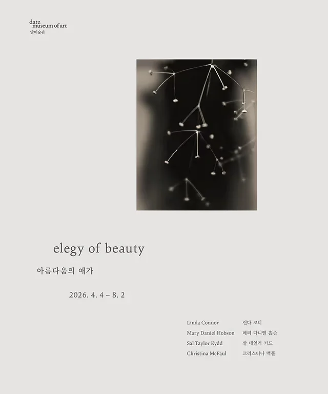 태양과 달이 만나는 일식은 우리가 살아가는 ‘지금, 이곳’과 거대한 우주가 하나로 정렬되는 순간을 보여준다. 이 드문 현상을 목격하거나 이미지를 통해 마주하는 경험은, 우리의 삶이 무한한 세계와 하나의 시점으로 연결되어 있음을 깨닫게 한다. 빛과 그림자가 만들어내는 원형의 에너지는 우주의 질서와 신비를 상징하며, 존재와 시간에 대한 사유로 우리를 이끈다. 전시 《아름다움의 애가》는 ‘아름다움이란 무엇인가’라는 질문에서 출발한다. 우리는 어떤 순간과 사물 앞에서 설명할 수 없는 감동을 느낄 때가 있다. 아름다움은 머리가 아닌 몸의 감각이 먼저 알아차리는 것이다. 그것은 내면 깊은 곳에서 동하는 합일의 경험이며, 명확한 기준이나 공식으로 설명할 수 없다. 작고 여린 생명의 순수함, 긴 시간을 견뎌낸 순도 높은 결정체, 단단한 구조와 조화로움, 비움과 채움이 이루는 균형, 그리고 정신적 숭고함과 어떤 초월성. 우리는 이 모든 빛과 그림자가 교차되는 시간 속에서 스스로 드러나는 자연의 질서를 ‘아름다움’으로 인식하는 것이 아닐까? 유한한 시간성 아래 존재하는 아름다움은 그리움이라는 감정을 불러온다. 사진은 사랑하는 이의 모습과 이 세상에서 마주한 풍경들을 우리 곁에 남겨준다. 린다 코너는 태양과 달, 그리고 지구가 그려내는 빛의 메시지를 인화지에 담아 우리에게 전달한다. 메리 다니엘 홉슨의 유리병 속에는 그녀가 소중히 여겨온 삶의 장소와 기도가 담겨 있다. 살 테일러 키드의 사진 작품은 존재의 아름다움을 보관하는 애도의 그릇이다. 크리스티나 맥폴의 사진 속 어린 두 아들은 대자연의 일부로 살아가는 법을 몸으로 배워가고 있다. 이 모든 것이 담긴 책은 그들이 못 다한 이야기들을 간직한 영혼의 집이 되어 독자를 초대하고 있다. 해 아래 새로운 것은 없다. 삶과 죽음이 교차되는 생의 시간은 끝이 예정되어 있다. 예술은 무한함을 이해하려는 유한한 인간의 노력에서 비롯된다. 순간을 담는 사진은 사라지는 아름다움을 애도하는 우리만의 방식이 되어준다. 이미 사라진 빛의 흔적에는 깊은 아름다움의 그림자가 남아 있다. 의미 없어 보이는 작은 순간이 어떤 시선으로 특별해지는 것은 사진이 가진 예술적 재능이다. 이러한 예술은 우리에게 고요한 위로의 빛을 나누어준다. 기획의 글_주상연 *출처: 닻미술관