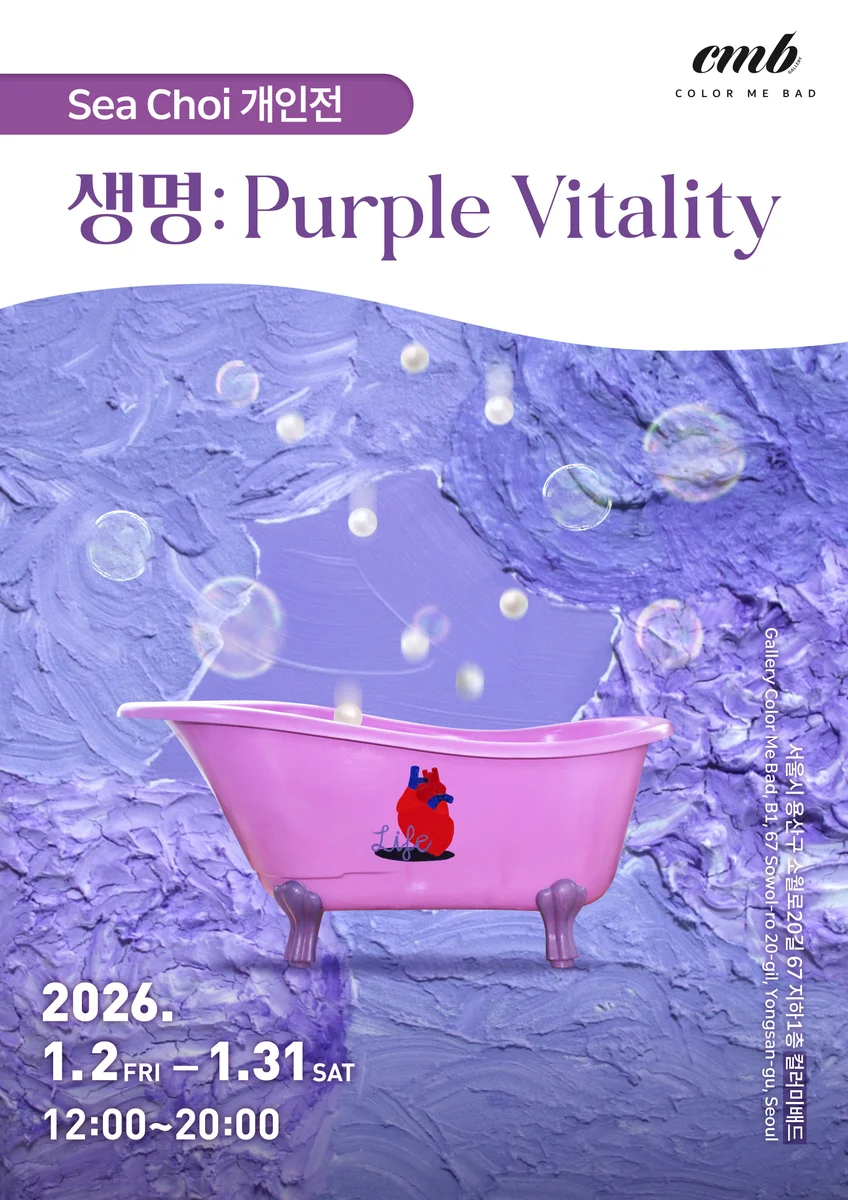 이번 전시에서는 설치 미술가 Sea Choi의 연작 ‘Project Bathtub’의 아홉번째 작품들을 선보인다. 이 연작은 다양한 폐품을 회화·조각·설치의 요소를 결합해 업싸이클링(upcycling) 과정을 거쳐 새롭게 재창조하고 쓰레기의 막대한 배출량과 그에 따른 환경 문제를 알리는 지속 가능성에 집중한 작업이다. 작가는 주로 일상 생활에서 가장 빈번하게 발생되는 플라스틱/알루미늄/합성 섬유/폐지/유리 등의 생활 쓰레기에 관심을 두고, 그 물성을 여러가지 방식으로 실험한 뒤, 자연 물질과 결합해 조각을 제작한다. 지구의 상당 부분이 쓰레기로 덮이고 있는 현실을 생생히 나타내고자 혼합성을 띈 독특한 업싸이클링 작업을 지속해오고 있다. 4개의 구역으로 구성된 이 전시는 생명에 관한 고찰을 담는다. 설치된 작품들은 생명을 유지하는 필수적인 요소들을 형상화한다. 살아있는 생명을 위한 기본적인 조건으로 뼈·장기·신체·물이 등장한다. ‘Life’라는 단어는 다의어(多義語)다. 삶 뿐만 아니라 일상, 생기 등 다양한 의미를 가진다. 작가는 이번 전시를 통해 생명과 불가분한 요소들을 직접적이면서 추상적인 형태로 제시한다. 오감 체험이 가능한 매체와 특정한 색을 활용해 ‘생명’이라는 보이지 않는 개념에 대해 다채롭게 사유할 수 있는 시공간을 제공한다. 이번 작업은 신체적인 활기 뿐만 아니라 영적인 생명력(spiritual vitality)에 주목한다. 이 생명력은 정신적인 건강을 포함한 영혼의 생기라고 할 수 있다. 작가는 성경을 통해 그 보이지 않는 힘에 대해 연구하고, 그것을 복합 매체의 작품으로 물질화한다. 버려진 쓰레기를 모아 예술 작품으로 재탄생되도록 하는 업싸이클링 작업 방식은 죽은 것에 생명을 부여하고자 하는 시도이다. 특히 이번 전시에서는 <Bathtub 9> 옆에 구비된 플라스틱 폐품 속에서 전시의 주제인 ‘생명’과 밀접한 관계를 이루는 ‘물’을 발견할 수 있다. 예수 그리스도는 여러번 성경에서 ‘물’로 묘사된다. 물은 자연과 모든 생물이 생존을 위해 필요로 하는 것으로, 예수의 유일하고 절대적인 능력을 생생히 나타내는 장치다. ‘Project Bathtub’의 각 작품들은 매번 다른 색으로 구성된다. 이번 전시에서 작가는 ‘생명’이라는 주제를 다루며 밝은 보라색을 떠올렸다. 다양한 톤의 보라색으로 가득 채워진 이 곳은 관객의 오감 체험을 허용한다. 전시장 곳곳에서 시각 기관을 통한 관람 뿐 아니라 향기, 질감, 소리 등 후각·촉각·청각을 이용해 오감으로 감상할 수 있는 소재가 종종 발견된다. 관람객들은 신발을 벗고 전시장 중앙에 이불과 함께 설치된 <Bathtub 9> 내부에 들어가서 원하는만큼 머무를 수 있고, 러그 위에서 휴식을 취할 수도 있다. *출처 및 제공: Sea Choi 작가