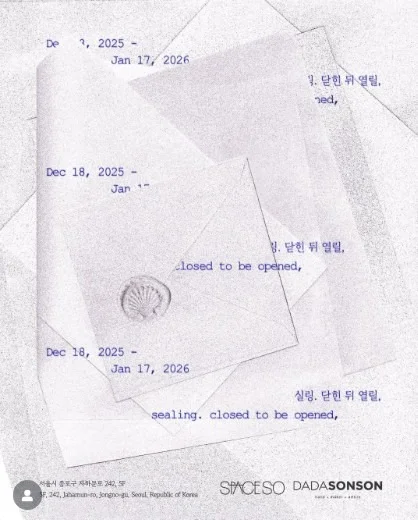 스페이스 소는 2025년의 마지막 전시를 준비 중입니다. . . 이번 전시 «실링. 닫힌 뒤 열릴,»은 컨템퍼러리 아트 갤러리 ‘스페이스 소’와 핸드워크 기반 큐레이팅 그룹 ‘다다손손’의 공동 기획으로 개최됩니다. 스페이스소와 다다손손은 그들의 시선으로 엄선한 작품들을 모아 감각적인 구성으로 전개함으로써 ‘선물’의 의미를 새롭게 조명합니다. 선물의 봉인(Sealing)이 곧 개봉(Opening)을 뜻하는 것처럼, 이번 전시는 한 해를 매듭짓고 새해를 맞이하는 이들을 위한 특별한 ‘선물가게’로 자리합니다. 관객은 작고 소중한 것들이 매개하는 온기 속에서, 지나온 시간 동안 받았던 것을 되돌려 줄 대상, 또는 앞으로 다가올 시간을 위해 마음을 전할 대상을 떠올려보게 됩니다. *출처 및 제공: 스페이스 소