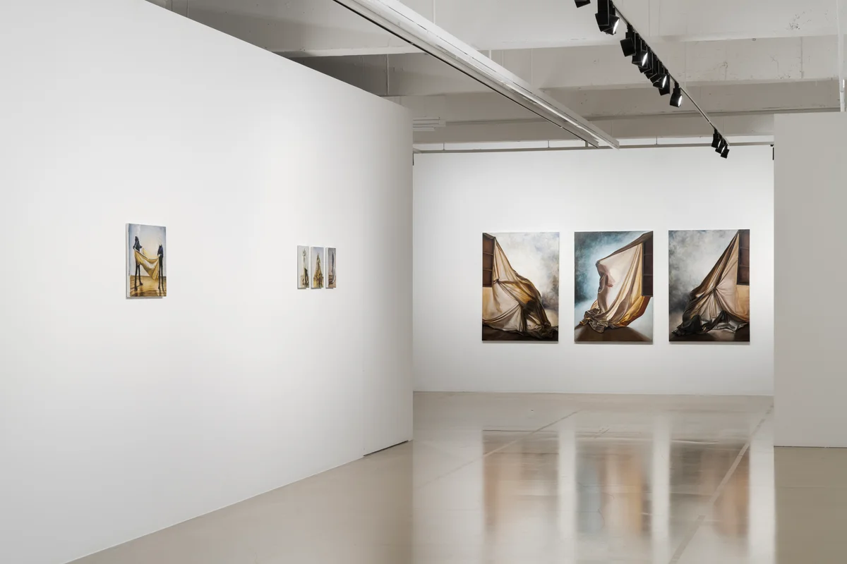 전시 개요 OVERVIEW 갤러리바톤은 데이비드 오케인(David O’Kane, b. 1985)의 개인전 《Symphony of Selves(자아의 교향곡)》을 1월 17일부터 2월 15일까지 한남동 전시 공간에서 개최한다. 바톤과의 세 번째 개인전에서 작가는 일련의 회화 신작을 통해 과거의 기억과 뒤섞인 환영의 영향 아래에 놓였던 내면의 삶을 암시함으로써, 자아의 독자성에 대한 환상을 해체한다. 기괴하고, 장난스럽고 심지어 유머러스하고 터무니 없어 보이는 이미지들을 통해 작가는 보는 이를 황혼과 여명 사이 간신히 보이는 빛 속에서만 존재하는 상상의 내면 세계로 초대한다. 오케인은 벨라스케스부터 렘브란트, 프란시스 베이컨에 이르는 미술사적 참고 자료를 바탕으로 자신의 자화상을 모티브로 한 미지의 인물을 만들어낸다. 자기 과시, 미스터리, 의심 사이를 오가는 대담한 회화는 진지함과 노골적인 비합리성을 동시에 지니고 있으며, 이는 작가가 창조한 인물의 심오함을 지지하는 동시에 해체하는 역할을 한다. 전시 작품 중 일부는 창작자로서 예술가를 묘사하는 반면, 다른 작품들은 이를 적극적으로 부정한다. Gloaming (2024)과 Zwielicht (2024)에서 등장하는 인물은 이젤에서 캔버스를 비틀고 있다. 오케인에 따르면, 캔버스 천은 표면에 환영을 담아내는 재료이자 회화 작업이라는 마법 같은 행위의 매개체이며 우리 세계에 대한 주관적인 은유이다. 따라서, 작품을 공개하는 행위를 통해 인물 자체는 부정되며 이내 추상화 된다. 작품들은 미지의 형상으로 통일되어 있지만, 각각 개별 작품이자 모든 작업을 관통하는 단일한 해석을 거부한다. 마치 유령 같은 존재처럼 그들의 이야기는 구체적이면서도 일시적인 것처럼 보이며, 드러나지 않는 각각의 내러티브를 암시한다. 예를 들어, Catching Light (2024)에서는 두 인물이 장난스럽게 포즈를 취하고 있고 캔버스가 우아하게 춤추는 가운데, 위에서 흘러내리는 빛은 아주 작은 물보라의 흔적만을 암시한다. 이미 일어난 일과 앞으로 일어날 일 사이의 이 밀고 당기는 춤은 오케인 작업의 상징과도 같다. 실제로 작가는 예리한 필치로 기승전결에 대한 암시를 통해 보는 이를 작품 속으로 끌어들인 후, 환상이 드러나기 직전 이를 능숙하게 무너뜨리는 방식으로 관람자의 참여를 유도한다. 이러한 이중성은 오케인의 작품 속 캐릭터 전반에 걸쳐 나타난다. 빛을 다루는 데 능숙한 그가 묘사하는 인물들은 공상적이며 신비로운 느낌을 주지만 물리적 세계에 확고하게 뿌리를 두고 있다. 작품에서 넌지시 형상만이 드러난 신체 부위는 캔버스를 가로지르는 수수께끼 이미지의 공허함을 약화시킨다. 특히, 한 쌍의 어린아이 같은 미지의 인물에 초점을 맞춘 일련의 작은 회화에는 상상의 시공간 속 따뜻한 조명이 켜진 거실에서 막 연극을 하려는 두 형제의 장난기 어린 모습이 담겨 있다. 작가는 이러한 신비주의를 “플라톤의 동굴의 비유에 대한 암시”라고 언급하며 “그림자를 사용하여 그 너머의 무언가, 느껴지지만 아직 완전히 알려지지 않은, 어쩌면 알 수 없는 무언가를 가리키려 한다”고 말한다.