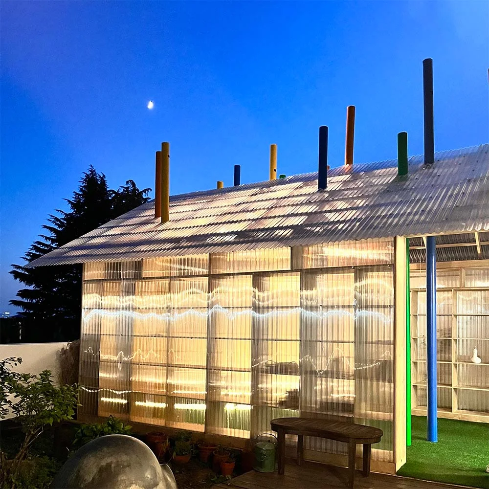 전시 개요 OVERVIEW Project with 한원석 𝘕𝘌𝘟𝘛 𝘌𝘟𝘏𝘐𝘉𝘐𝘛𝘐𝘖𝘕 RE:forest (Sound Pavilion) Project with 한원석 건축가이자 설치미술가인 한원석의 ‘파파게노 리드림(ReDream)’은 재생 지관 파이프를 수직으로 세워 마치 나무가 숲을 이루는 것 같은 모양이다. 한원석 작가는 ‘ReDream’이라는 제목에 대해 “숲에 있었을 수많은 나무들이 인간의 목적에 의해 잘려 나가고 그런 나무들은 언젠가 쓰임을 다하고 버려지는 모양에 반발하여 지관에 새로운 생명을 불어넣어 다시 사람들 조화롭게 어울리게 하고자 한다”고 설명했다. 이는 인간의 욕심으로 버려진 쓰레기를 재활용하여 예술작품으로 되살리고자 함이다. 파빌리온(Pavilion)은 대지에 건축적 언어를 사용하여 설치하는 한시적 구조물을 뜻한다. 백해영 갤러리는 한원석 작가와 함께 갤러리 마당에 파빌리온 프로젝트를 진행한다. 파빌리온 안에 ‘파파게노 리드림’을 설치하여 공간 안에 알록달록한 숲 속 쉼터를 조성하였다. ▪️ 일정 : 2024. 11월 22일 – 2025. 1월 31일 ▪️ 전시 방문은 예약제로 운영됩니다. ▪️ 장소 : 백해영 갤러리 (서울 용산구 이태원로 27길 77)